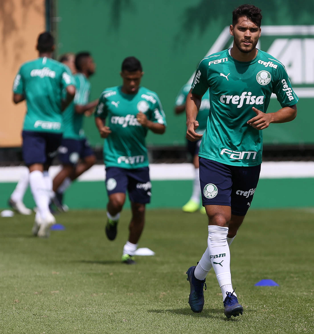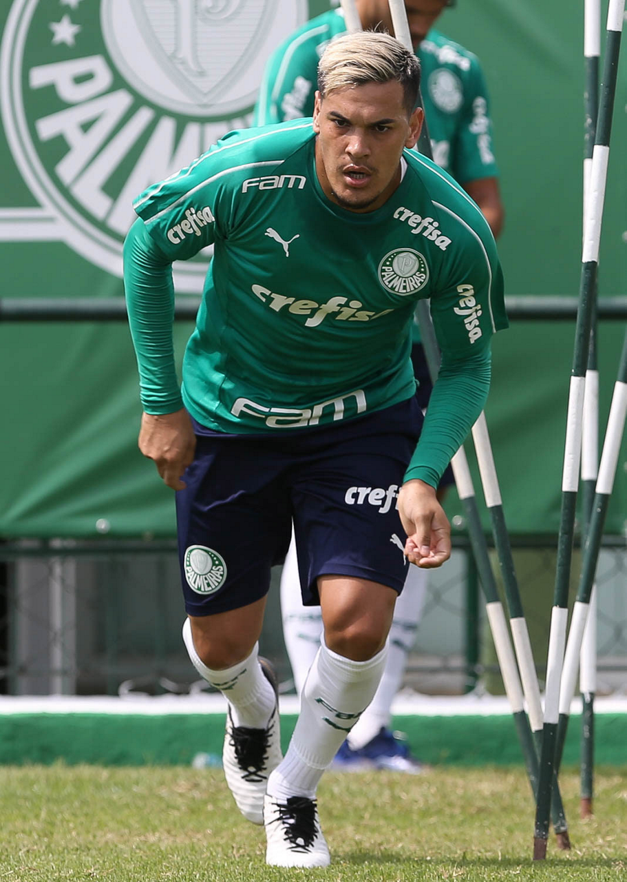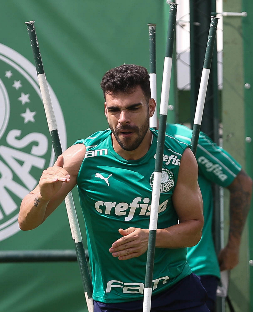 O jogador Gustavo Gómez, da SE Palmeiras, durante treinamento, na Academia de Futebol.