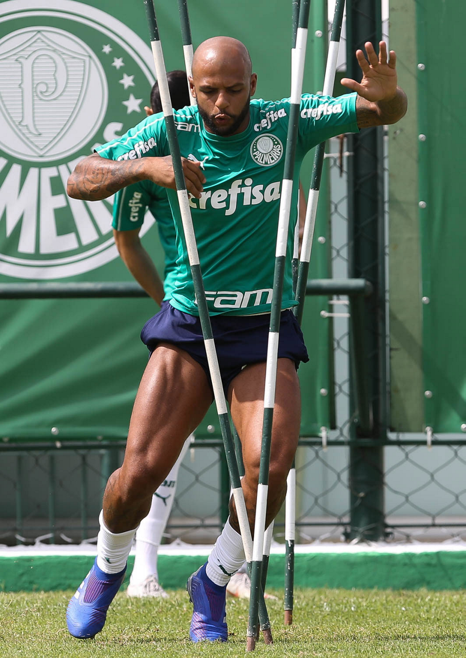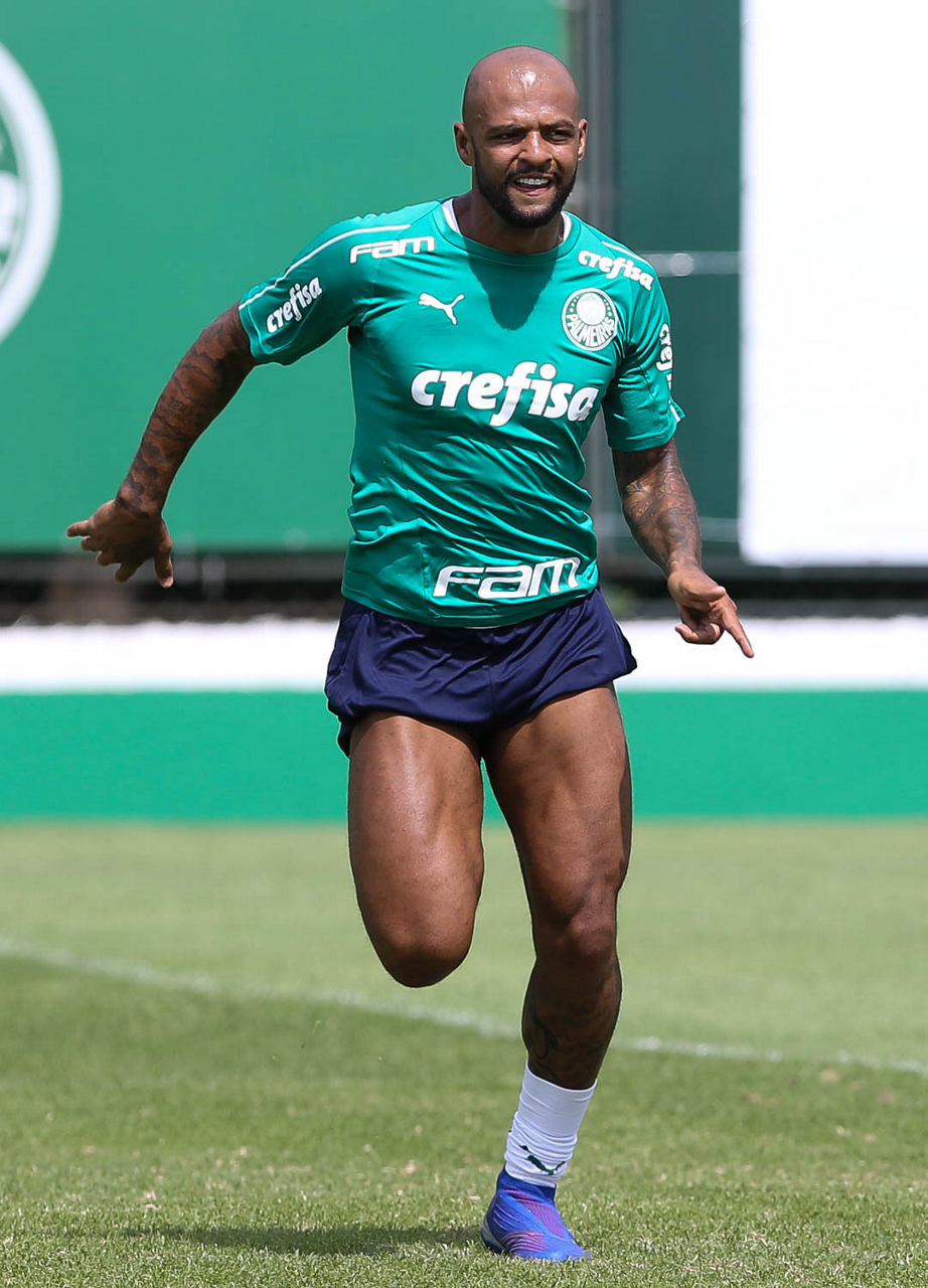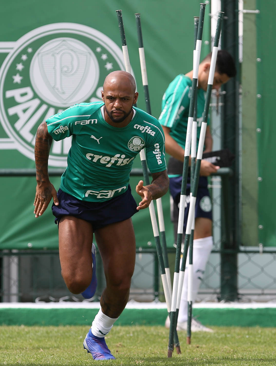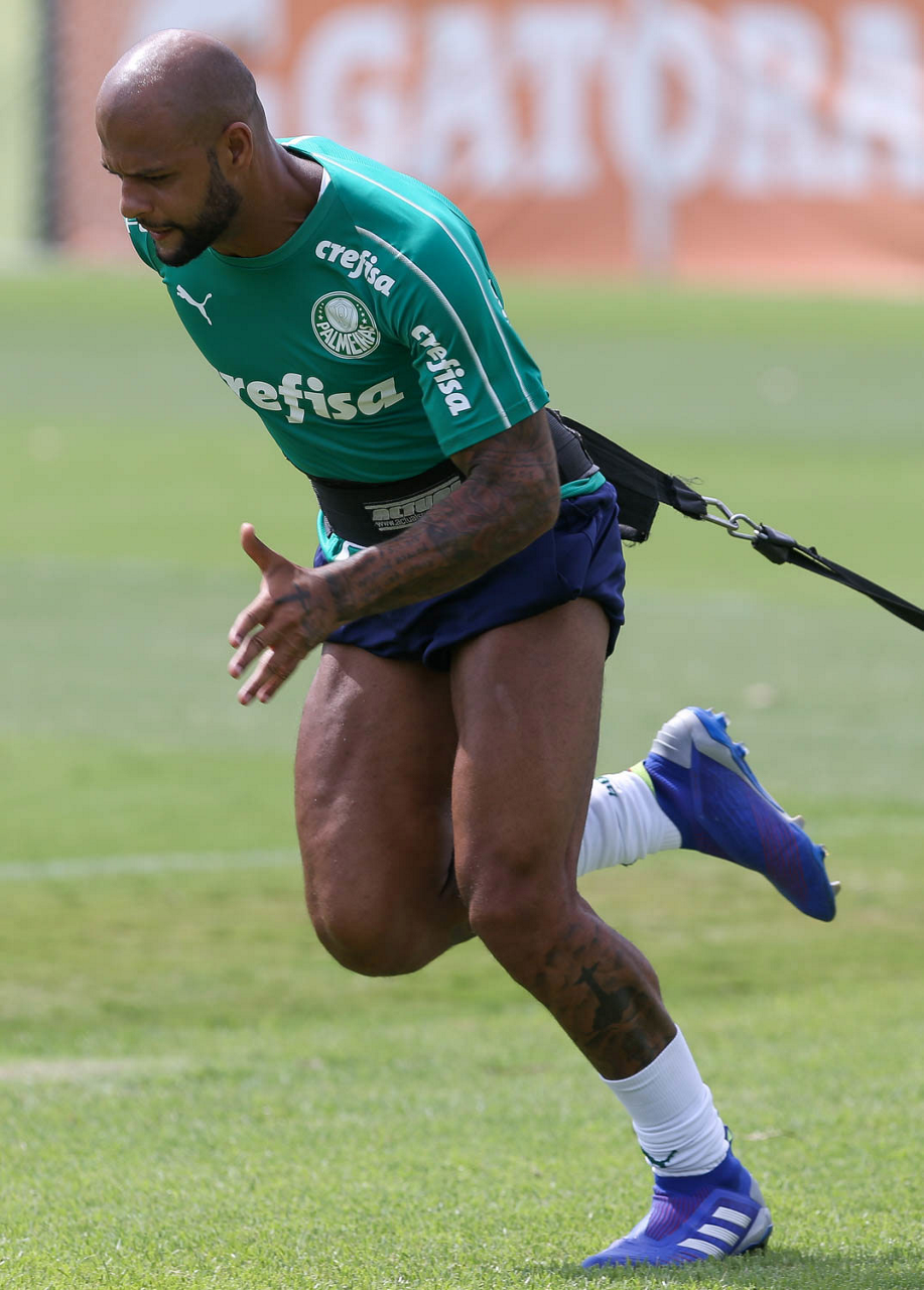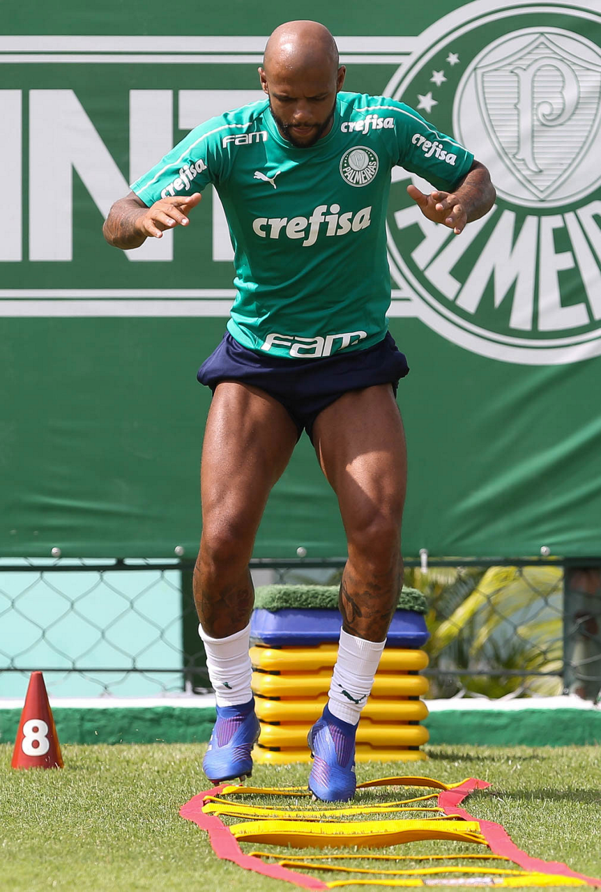 O jogador Felipe Melo, da SE Palmeiras, durante treinamento, na Academia de Futebol.