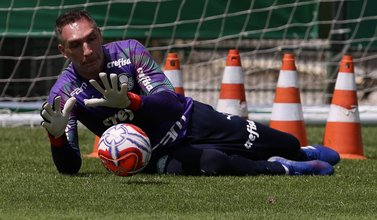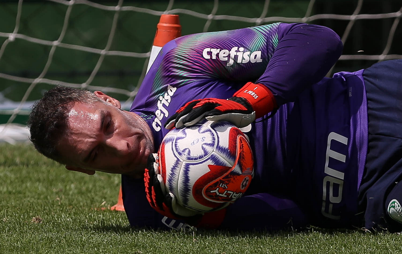 O goleiro Fernando Prass, da SE Palmeiras, durante treinamento, na Academia de Futebol.