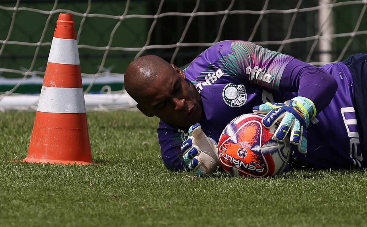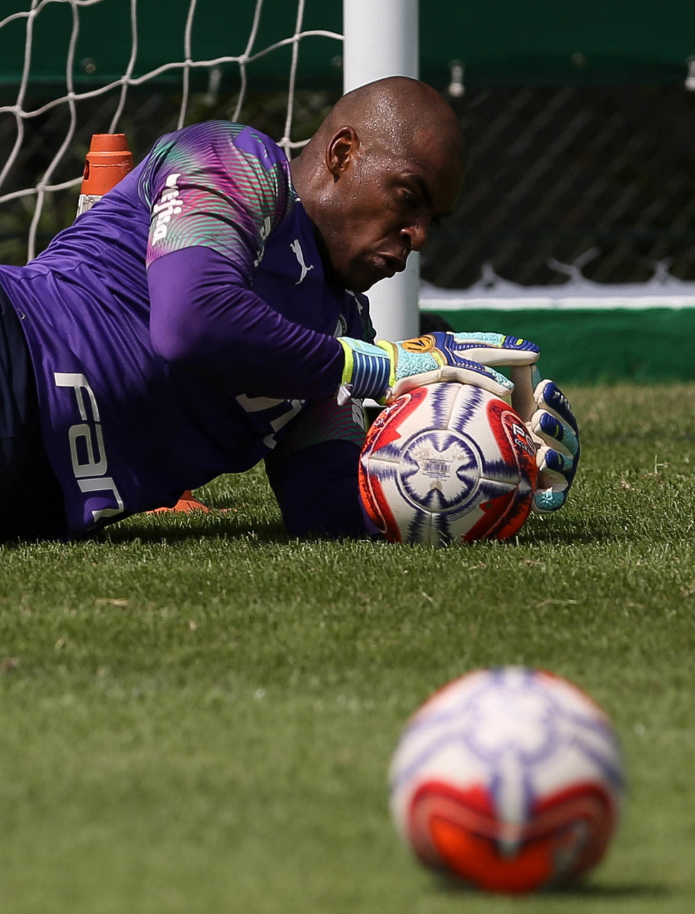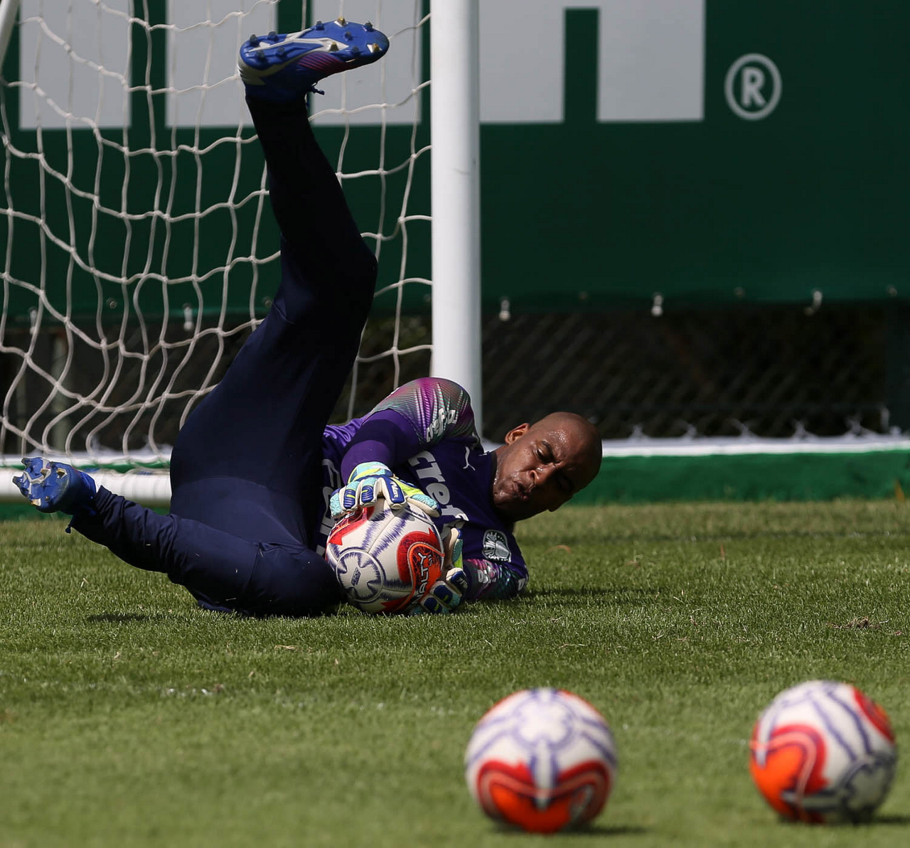 O goleiro Magrão, da SE Palmeiras, durante treinamento, na Academia de Futebol.