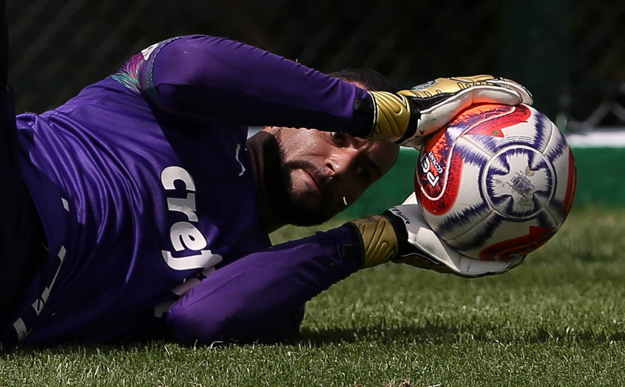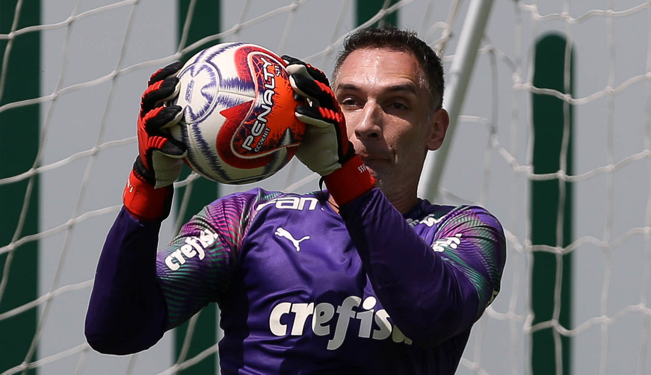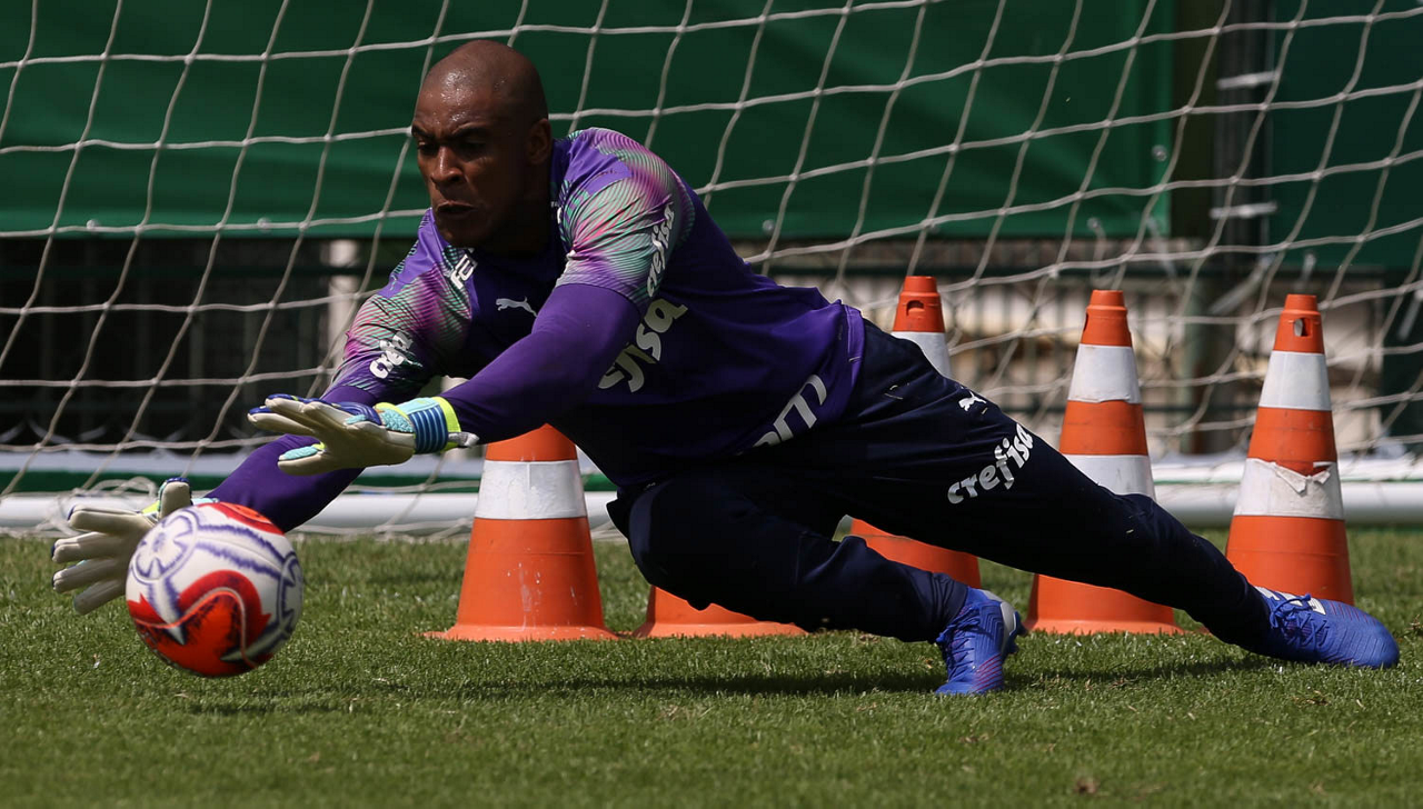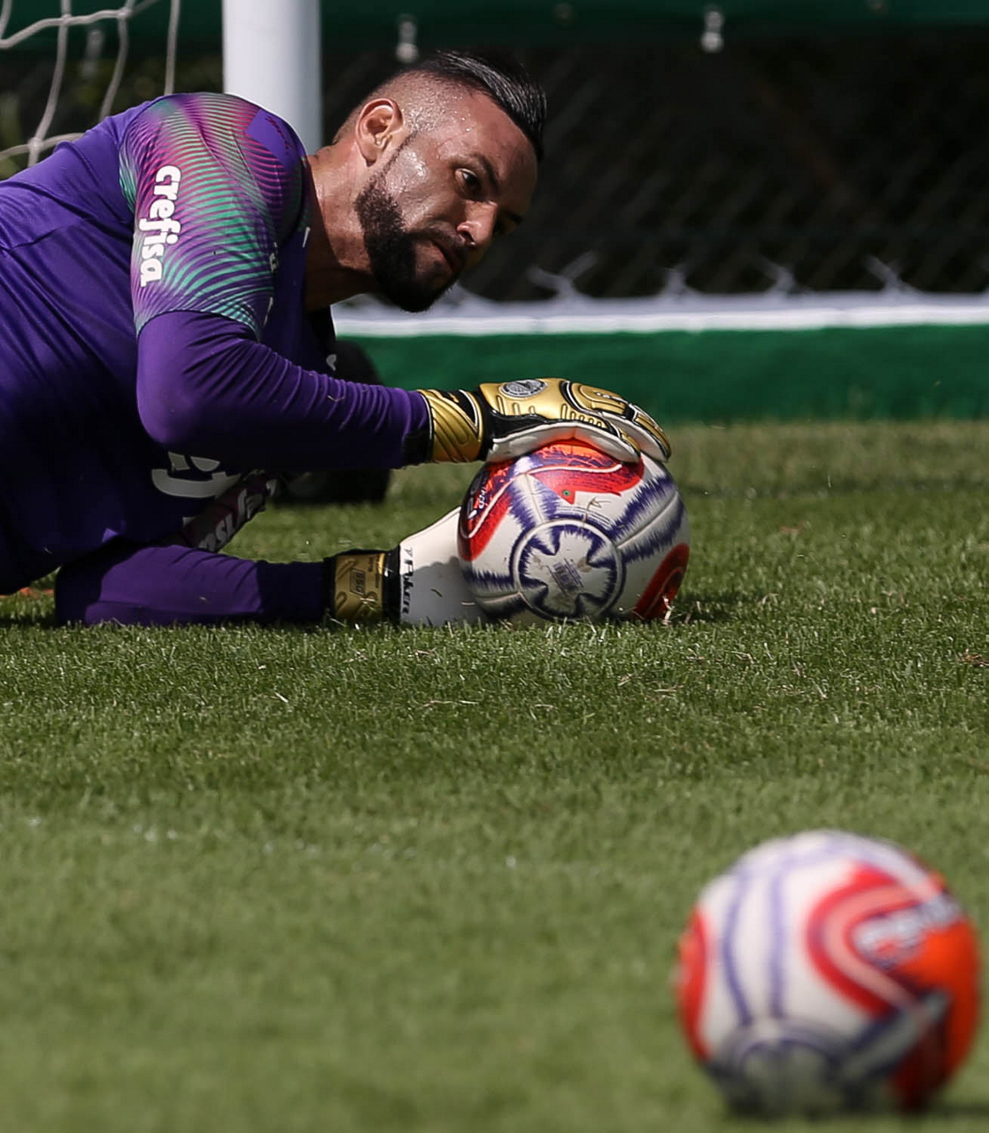 O goleiro Magrão, da SE Palmeiras, durante treinamento, na Academia de Futebol.