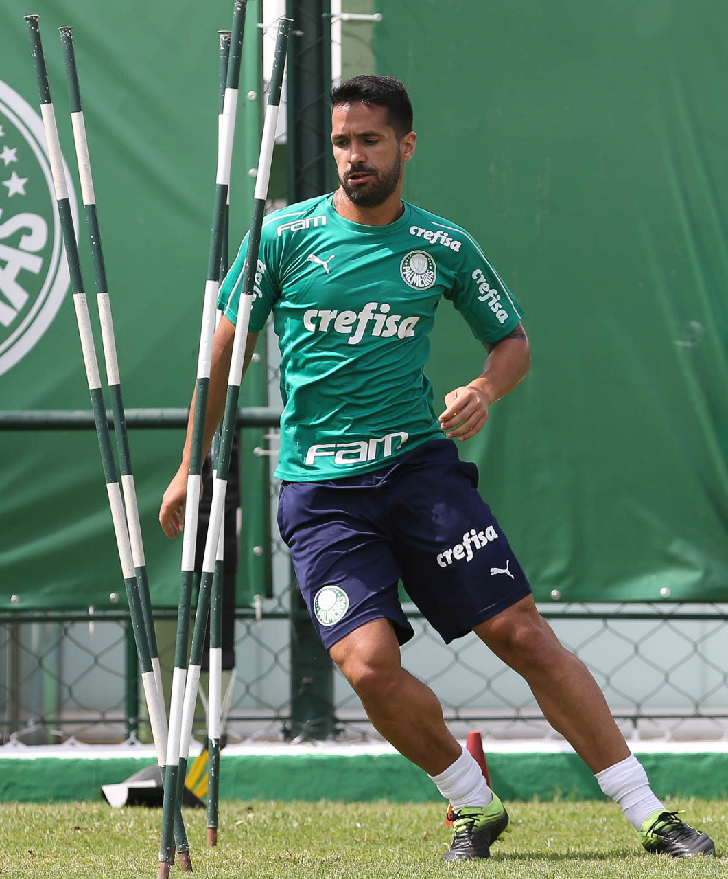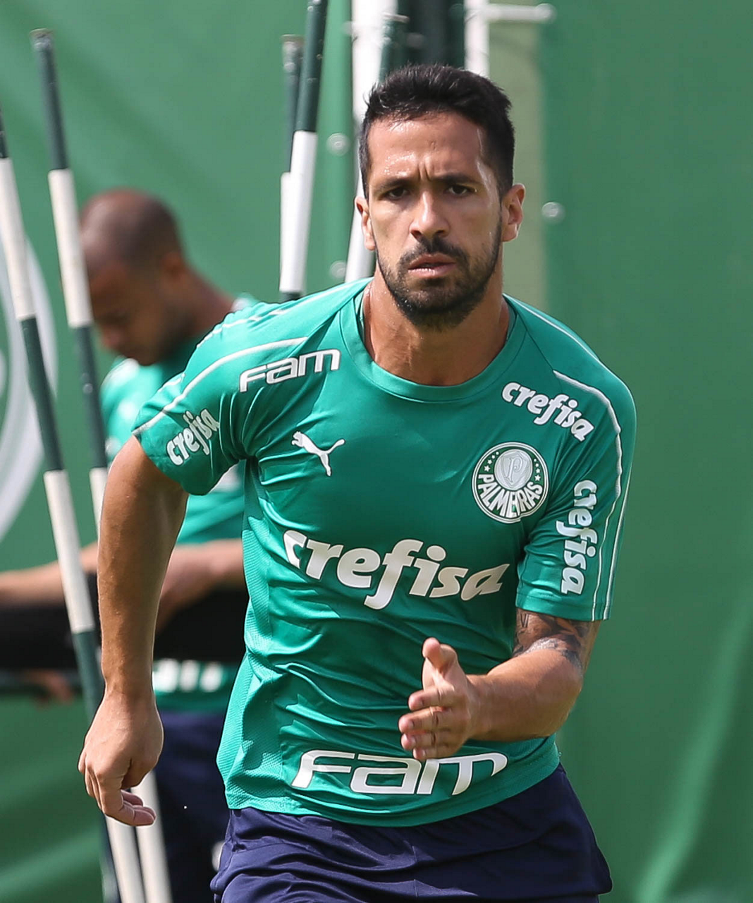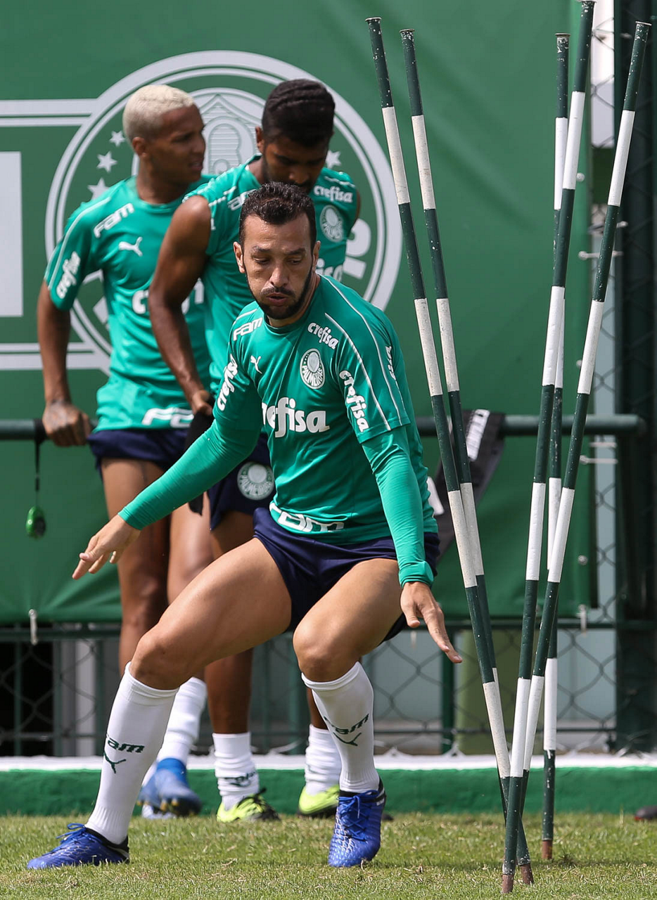 O jogador Fabiano, da SE Palmeiras, durante treinamento, na Academia de Futebol.