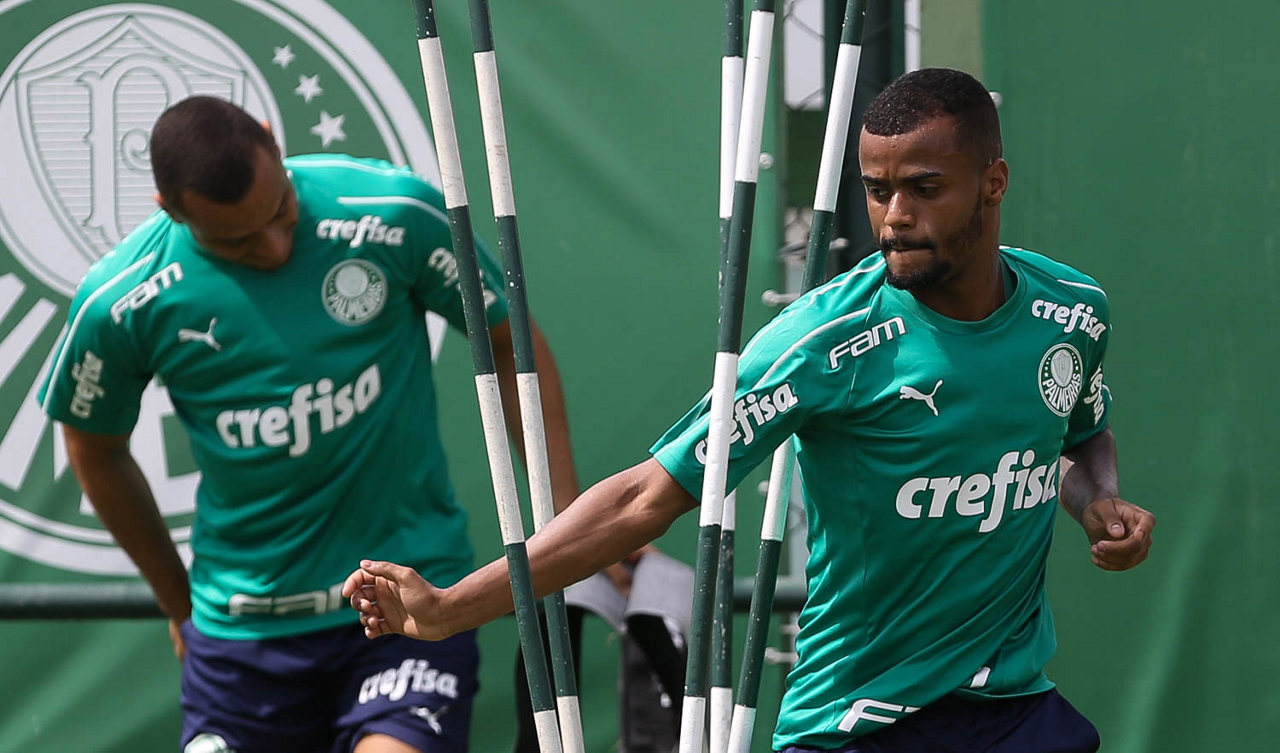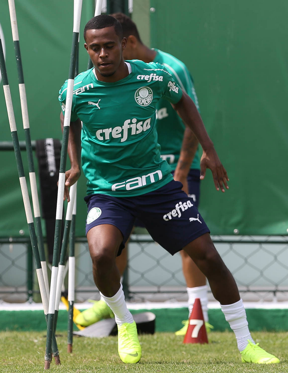 O jogador Victor Luis, da SE Palmeiras, durante treinamento, na Academia de Futebol.