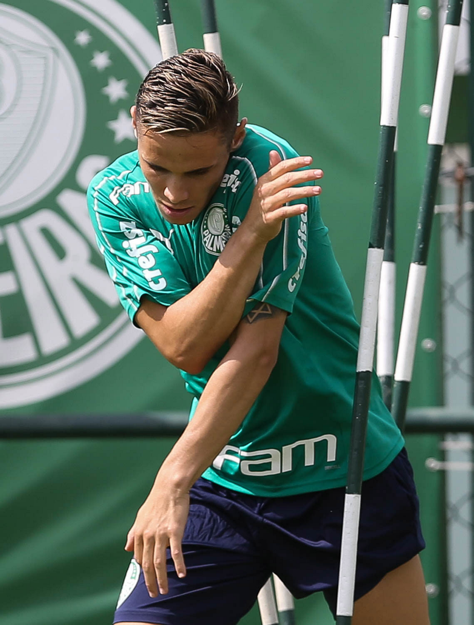 O jogador Diogo Barbosa, da SE Palmeiras, durante treinamento, na Academia de Futebol.