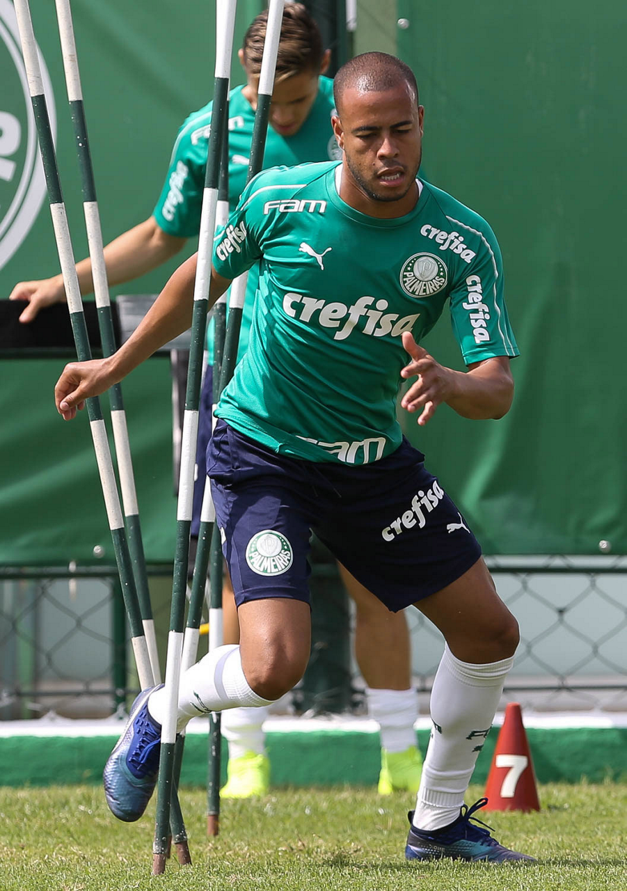 O jogador Mayke, da SE Palmeiras, durante treinamento, na Academia de Futebol.