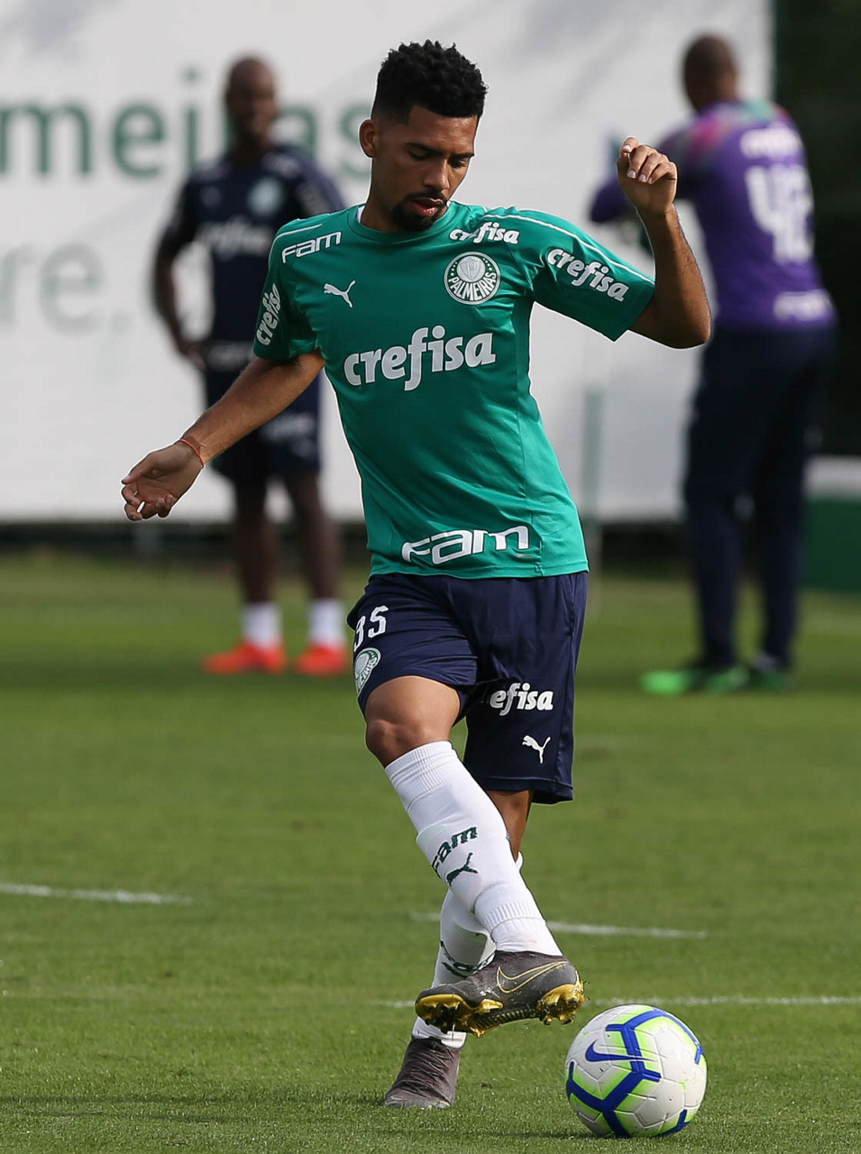 O jogador Felipe Pires, da SE Palmeiras, durante treinamento, na Academia de Futebol.