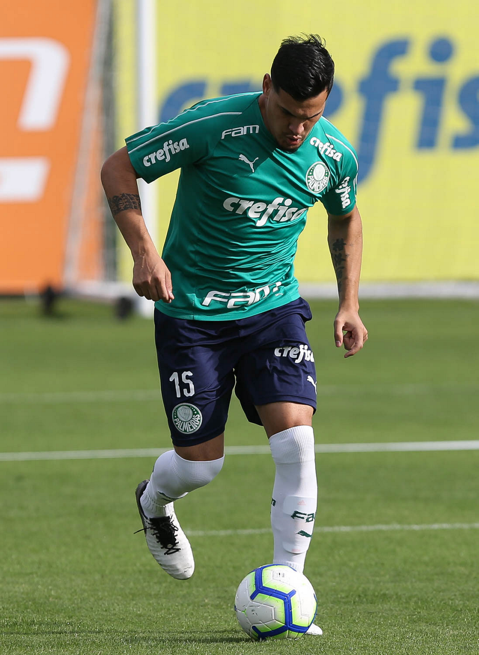 O jogador Gustavo Gómez, da SE Palmeiras, durante treinamento, na Academia de Futebol.