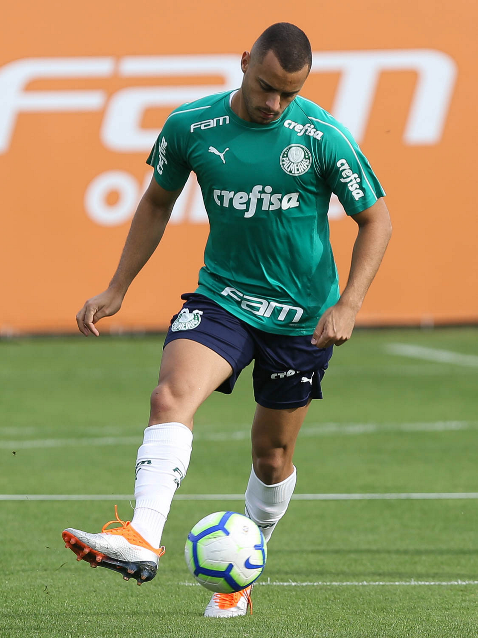 O jogador Bruno Henrique, da SE Palmeiras, durante treinamento, na Academia de Futebol.
