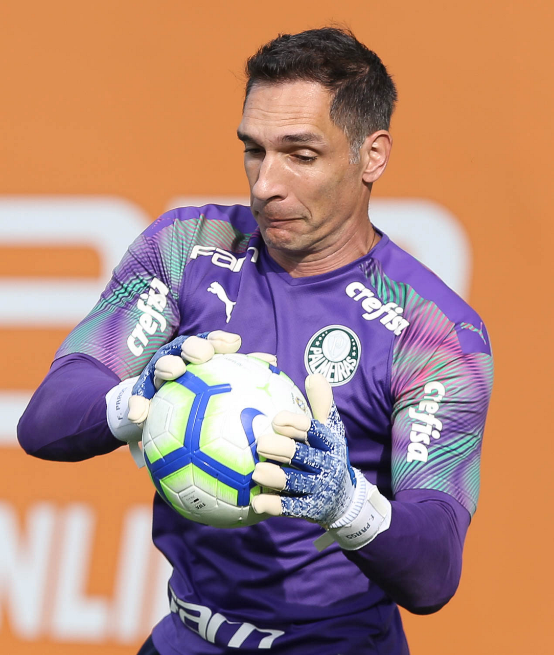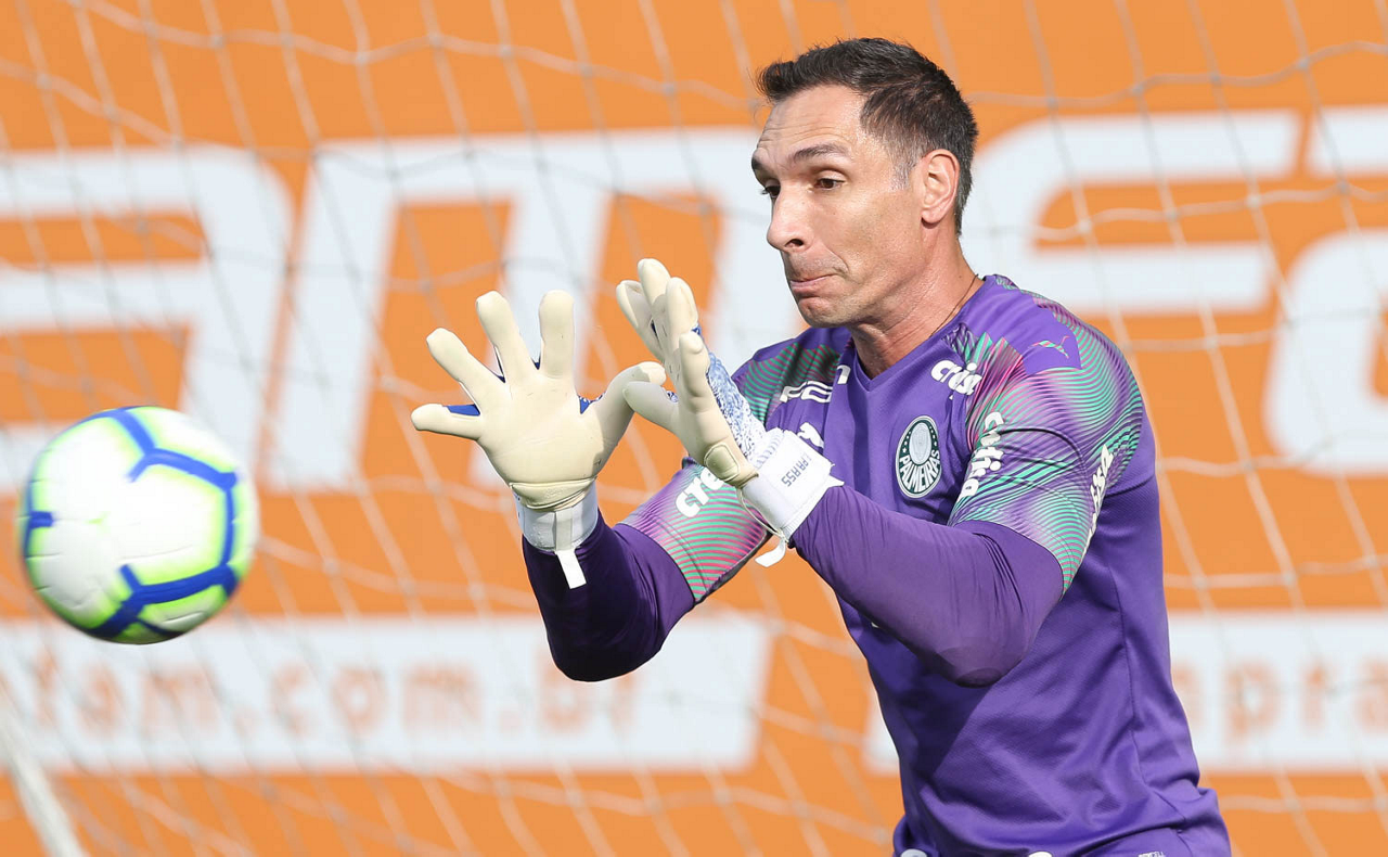 O goleiro Fernando Prass, da SE Palmeiras, durante treinamento, na Academia de Futebol.