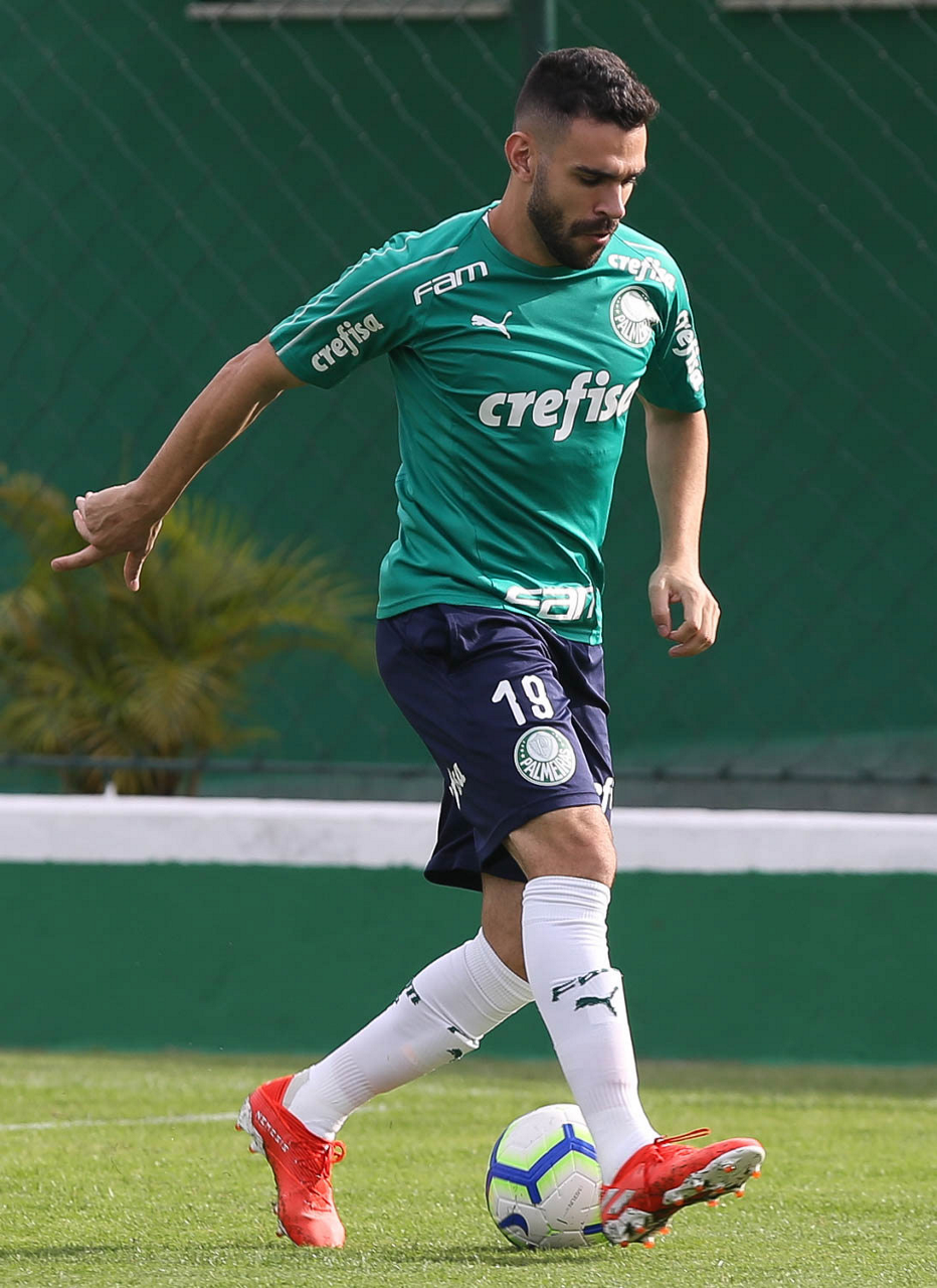 O jogador Gustavo Scarpa, da SE Palmeiras, durante treinamento, na Academia de Futebol.