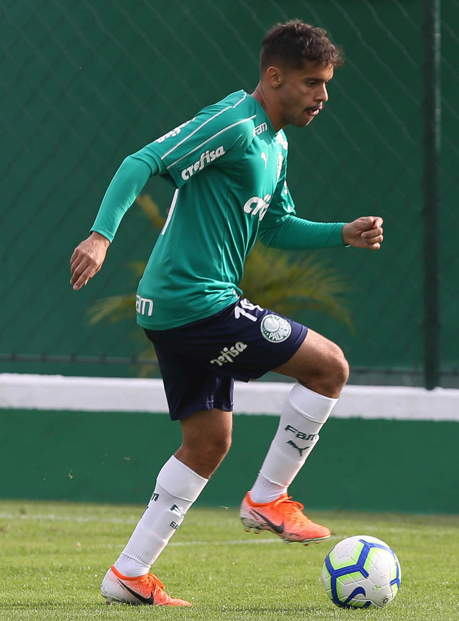 O jogador Matheus Fernandes, da SE Palmeiras, durante treinamento, na Academia de Futebol.
