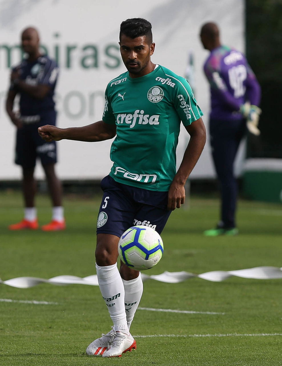 O jogador Thiago Santos, da SE Palmeiras, durante treinamento, na Academia de Futebol.