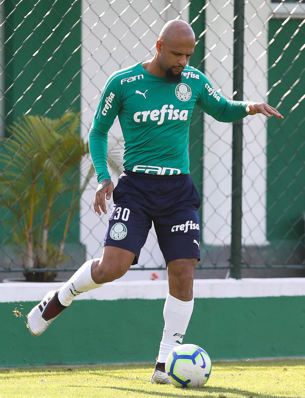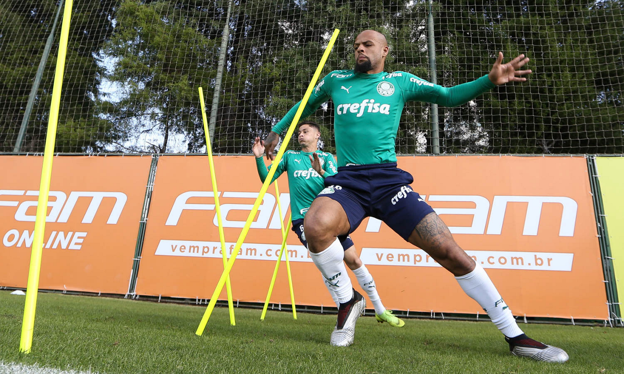O jogador Felipe Melo, da SE Palmeiras, durante treinamento, na Academia de Futebol.