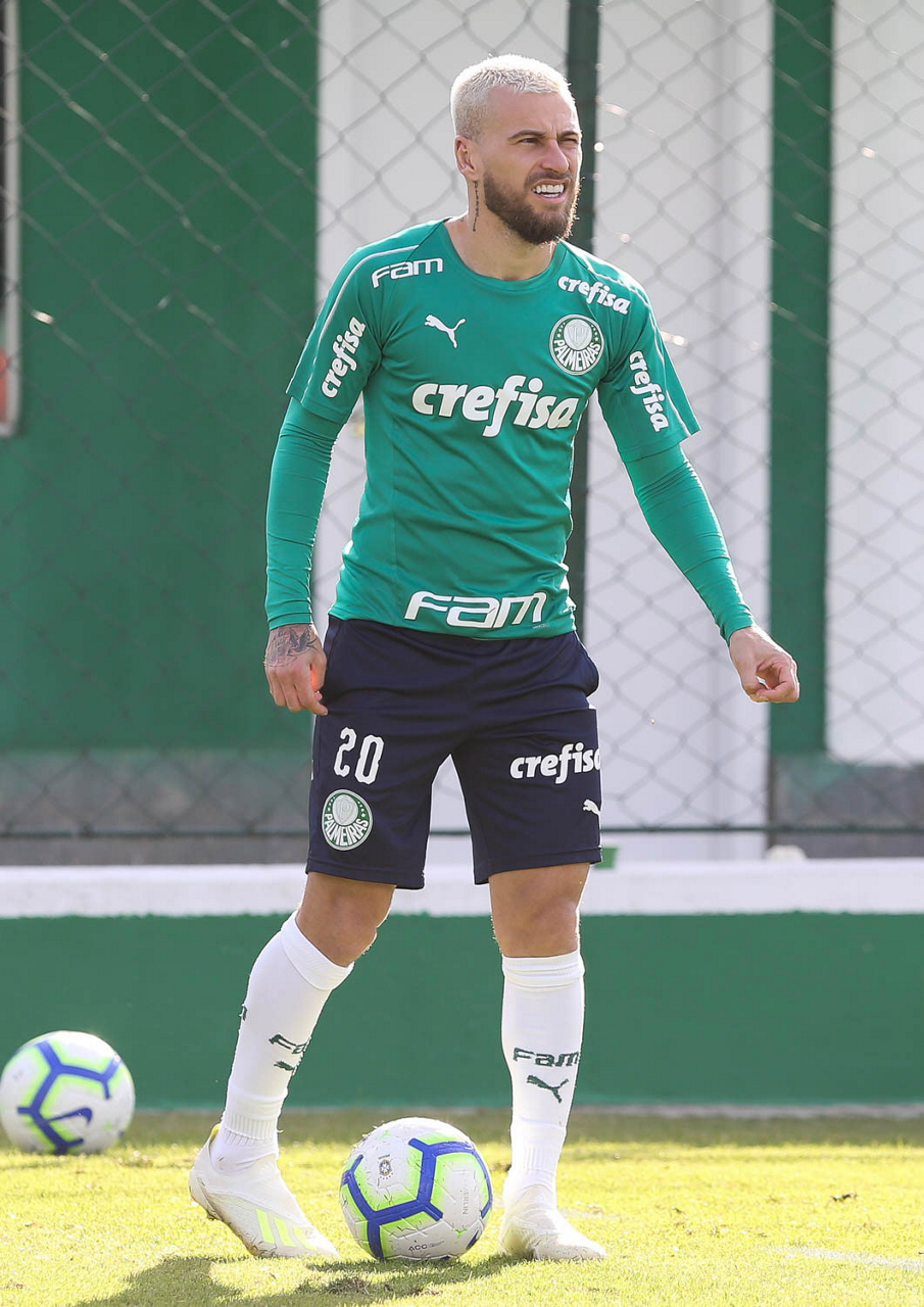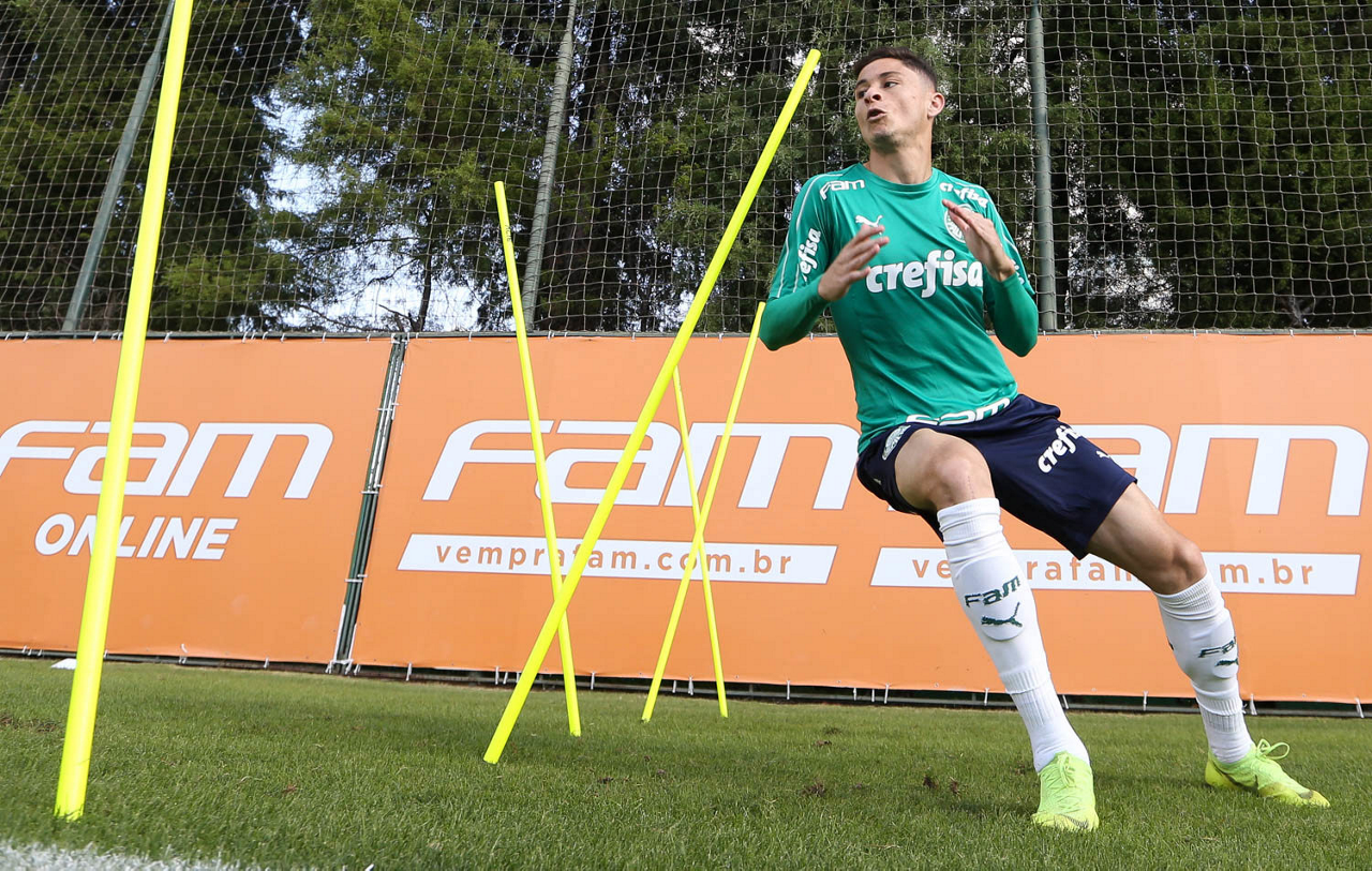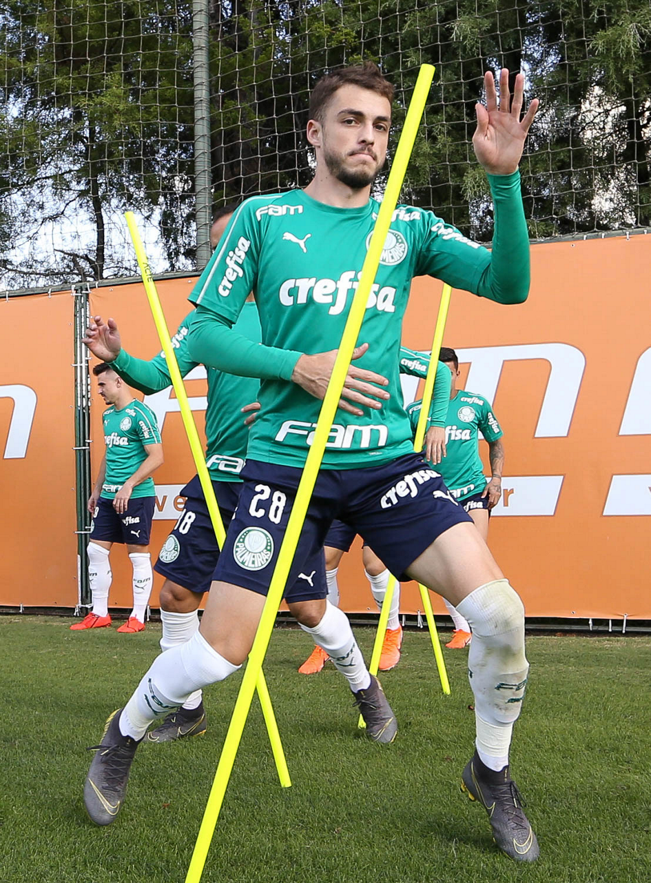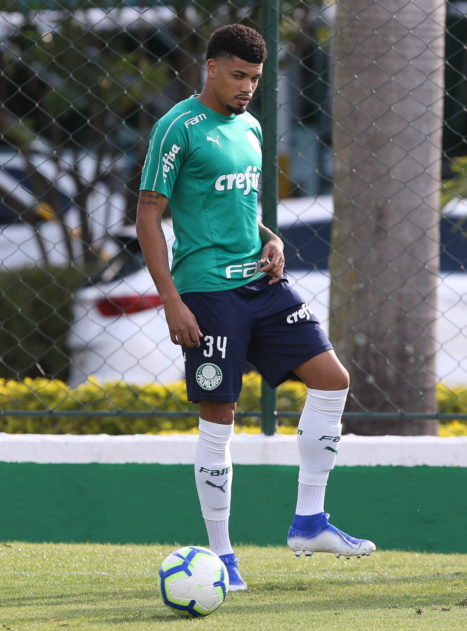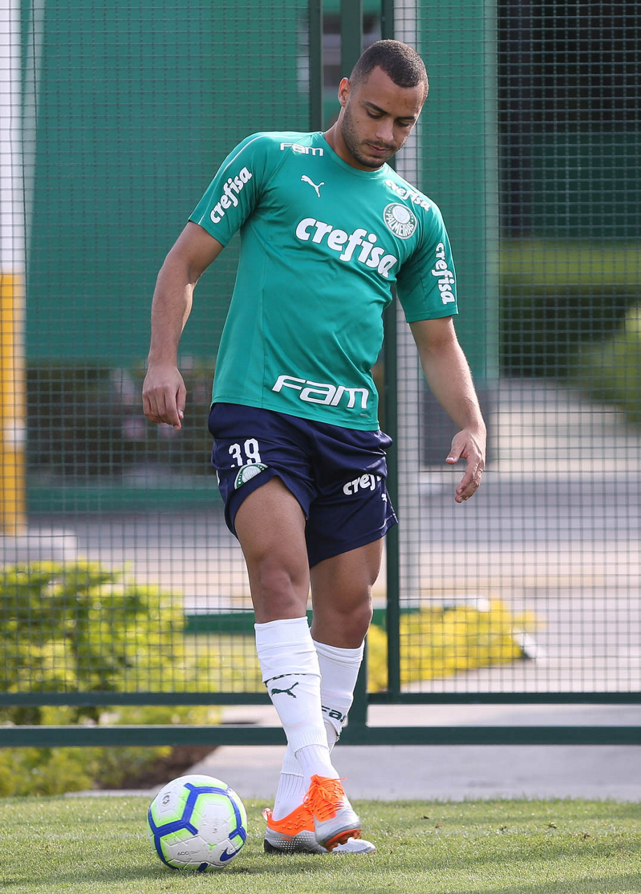 O jogador Victor Luis, da SE Palmeiras, durante treinamento, na Academia de Futebol.