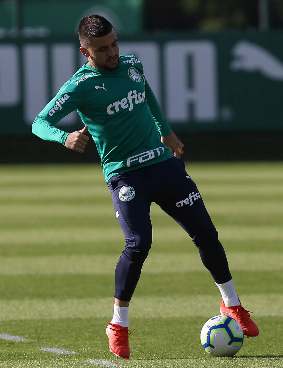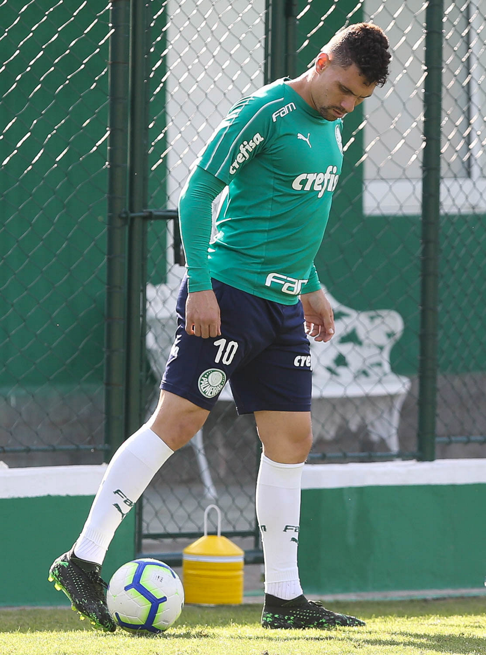 O jogador Gustavo Scarpa, da SE Palmeiras, durante treinamento, na Academia de Futebol.