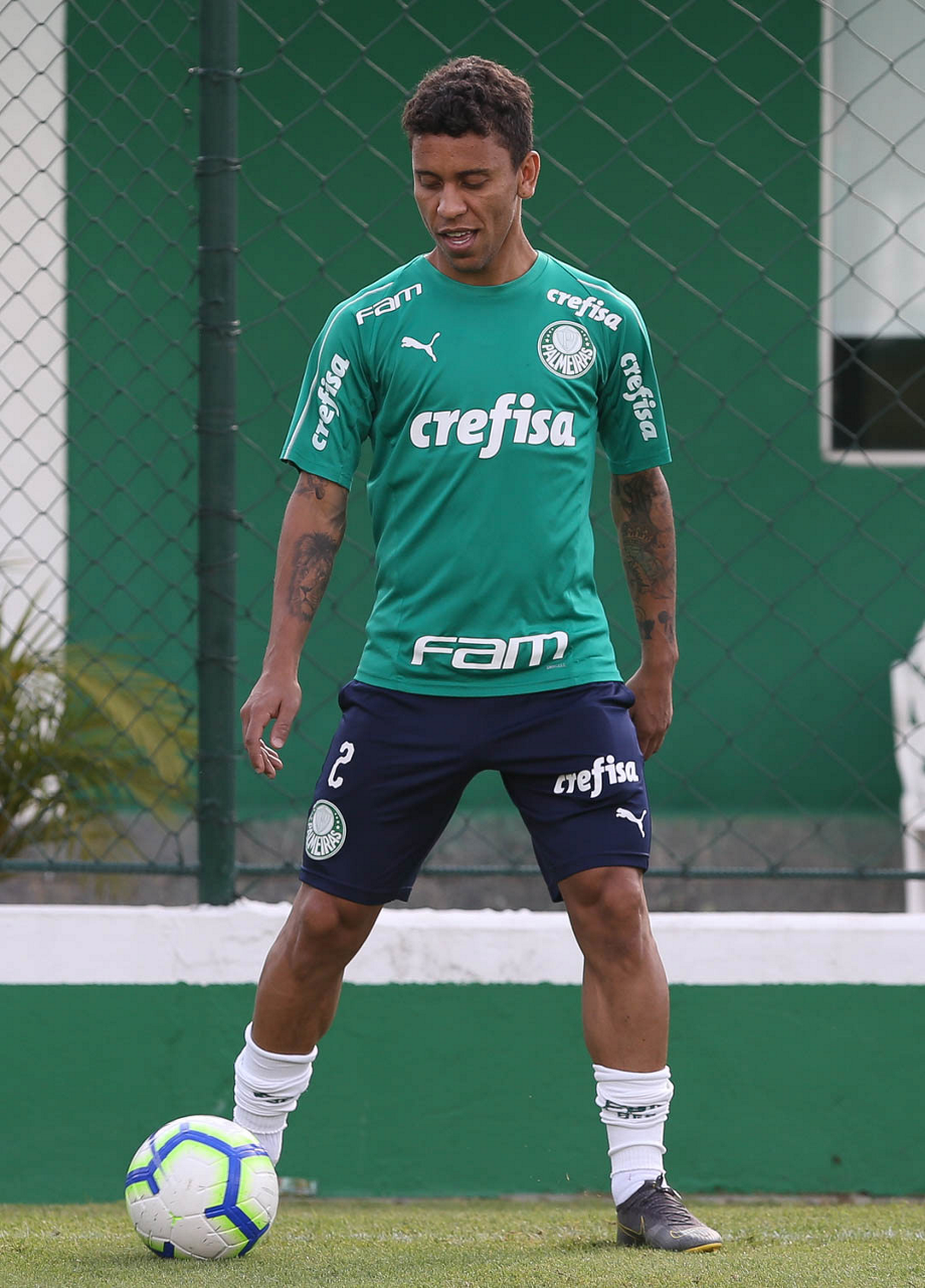 O jogador Marcos Rocha, da SE Palmeiras, durante treinamento, na Academia de Futebol.