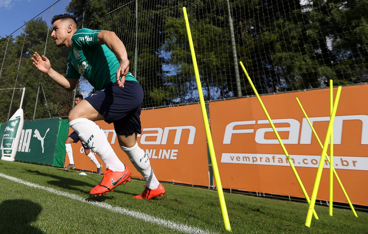 O jogador Jean, da SE Palmeiras, durante treinamento, na Academia de Futebol.
