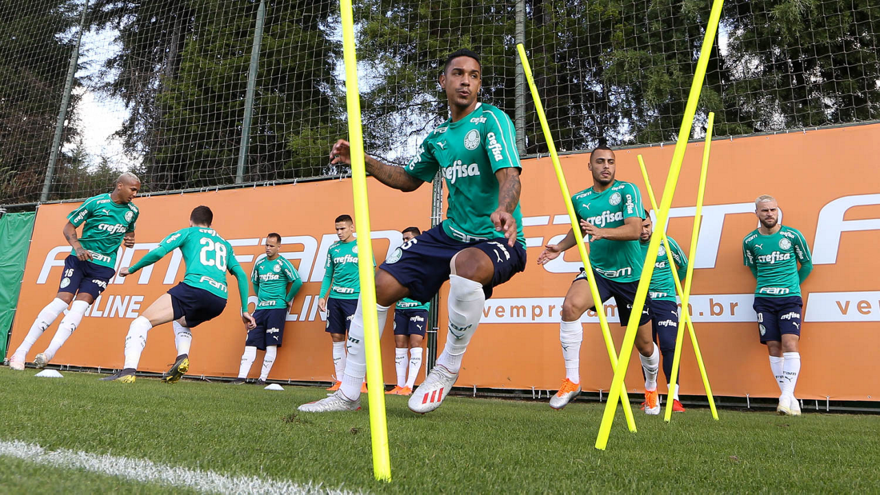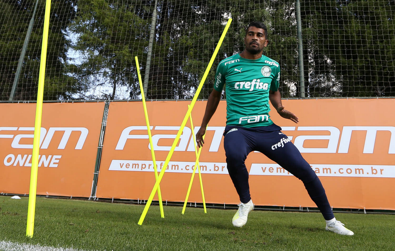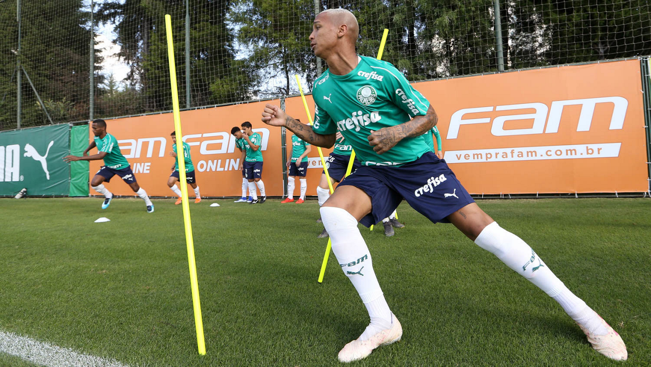 O jogador Deyverson, da SE Palmeiras, durante treinamento, na Academia de Futebol.