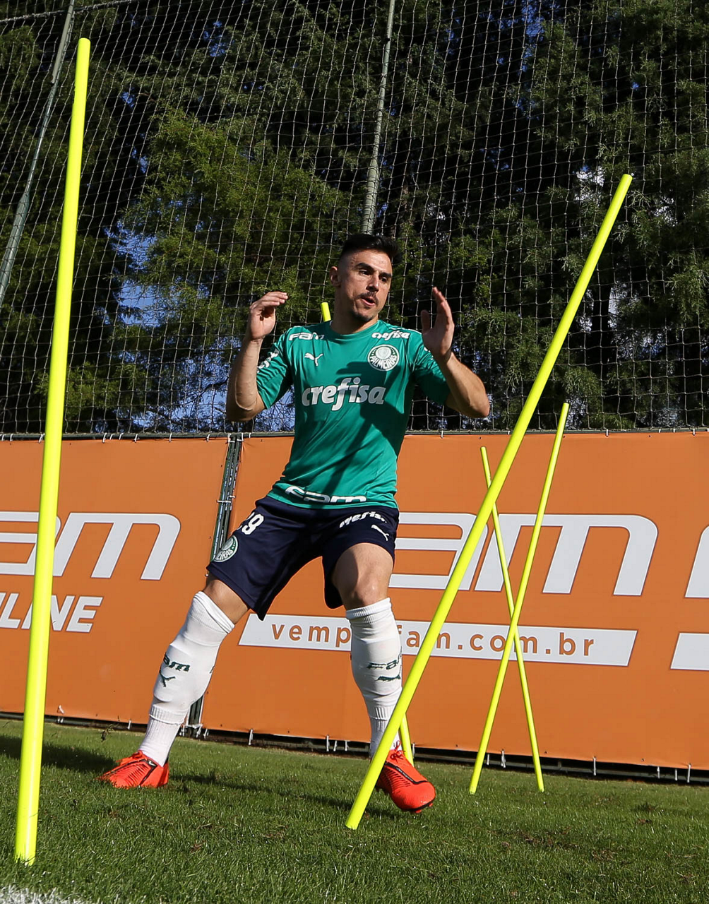 O jogador Fabiano, da SE Palmeiras, durante treinamento, na Academia de Futebol.