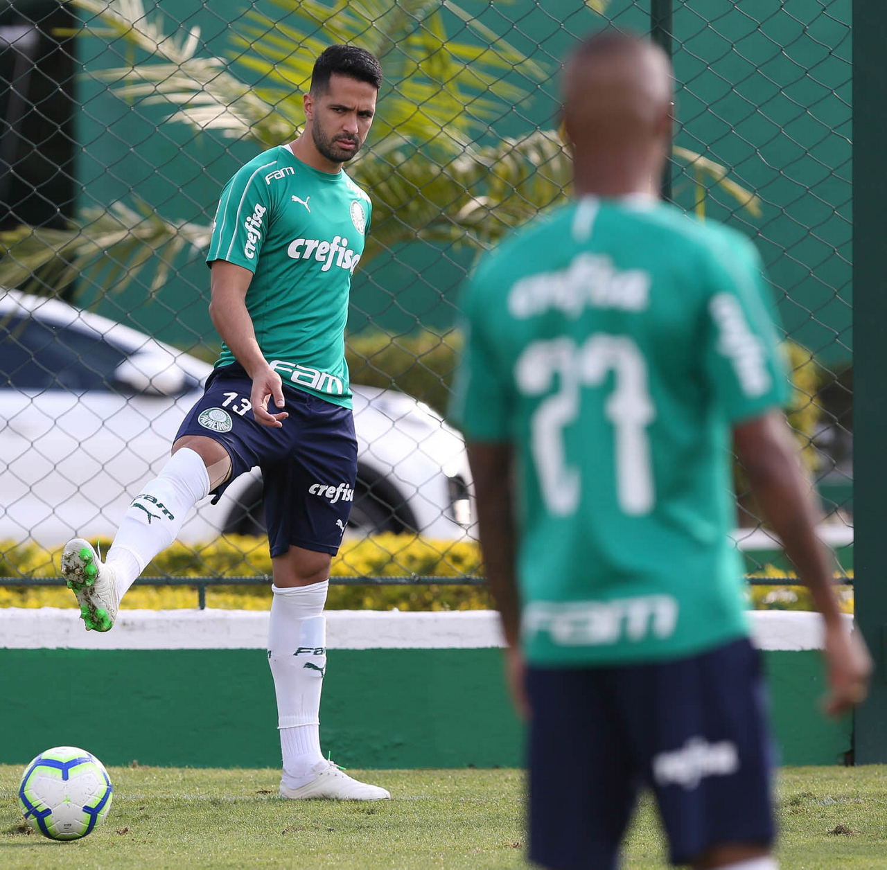O jogador Borja, da SE Palmeiras, durante treinamento, na Academia de Futebol.