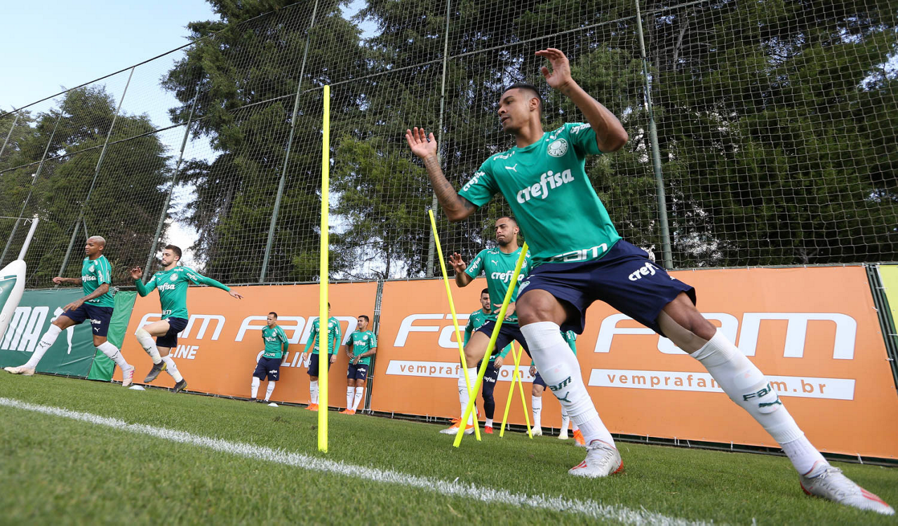 O jogador Arthur Cabral, da SE Palmeiras, durante treinamento, na Academia de Futebol.