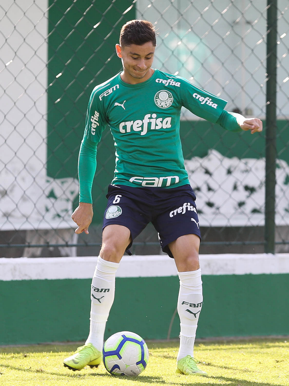 O jogador Matheus Fernandes, da SE Palmeiras, durante treinamento, na Academia de Futebol.