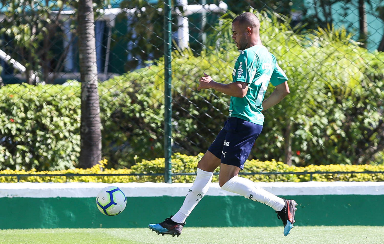 O jogador Deyverson, da SE Palmeiras, durante jogo-treino contra a equipe do Oeste, na Academia de Futebol.