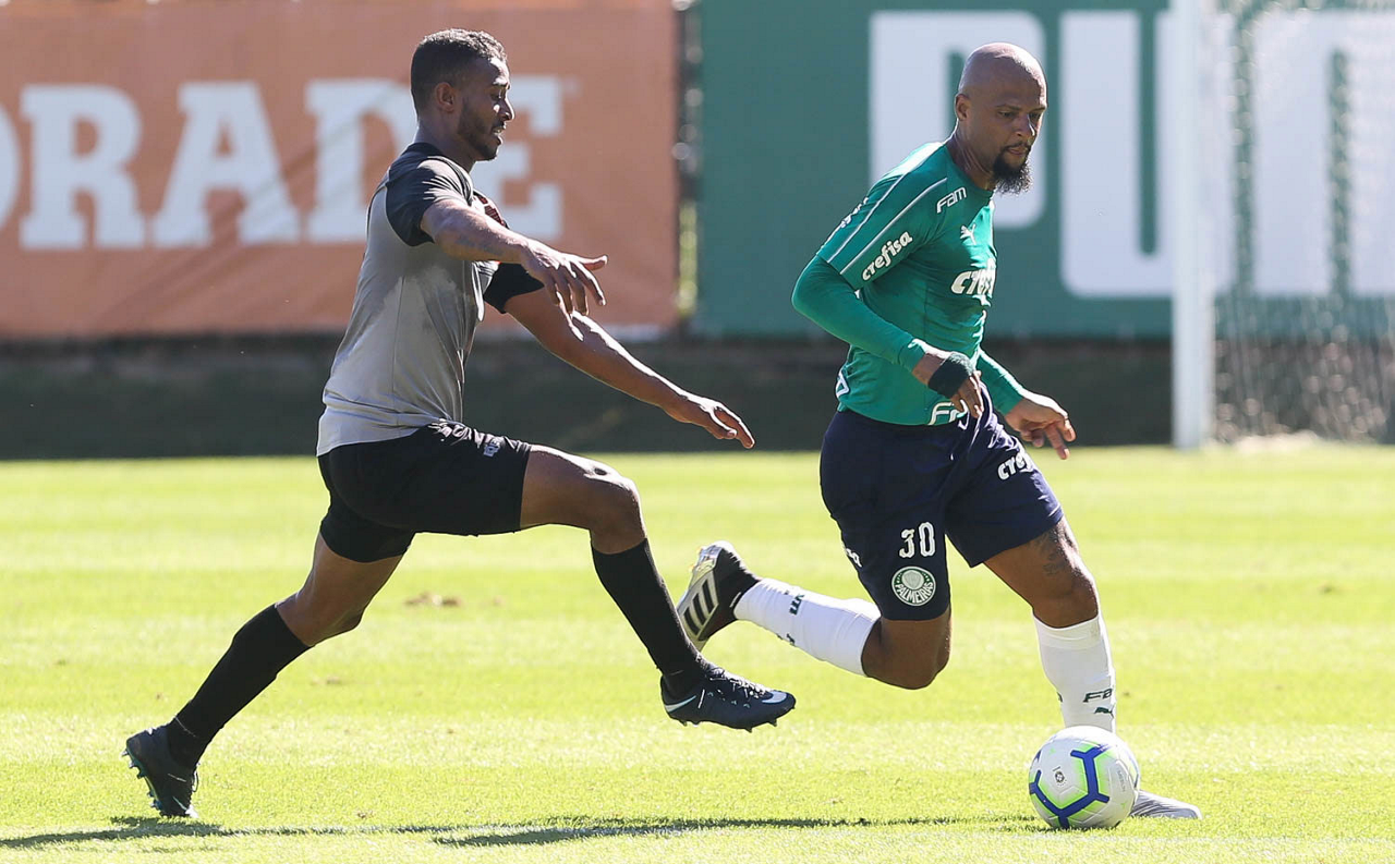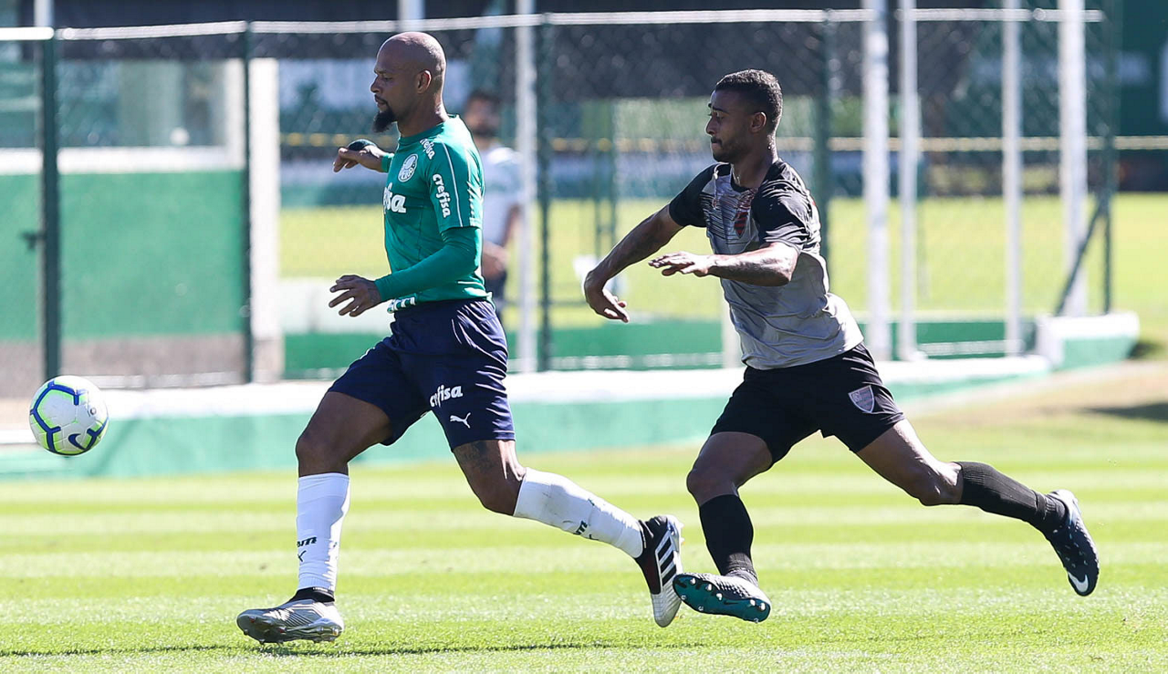 O jogador Felipe Melo, da SE Palmeiras, durante jogo-treino contra a equipe do Oeste, na Academia de Futebol.