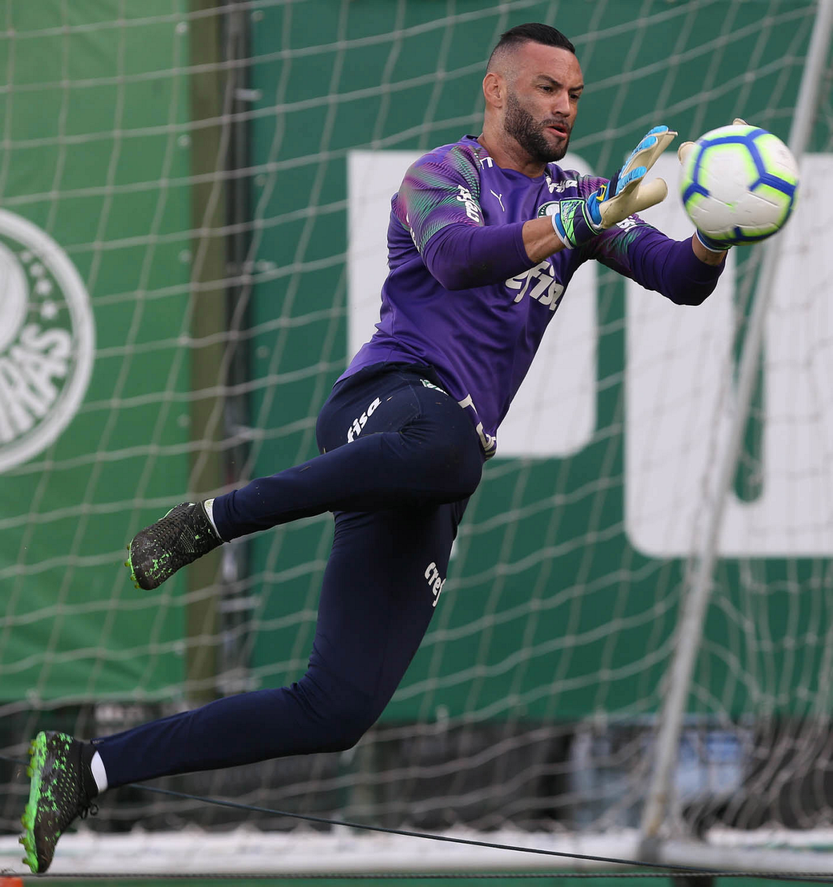 O goleiro Weverton, da SE Palmeiras, durante treinamento, na Academia de Futebol.