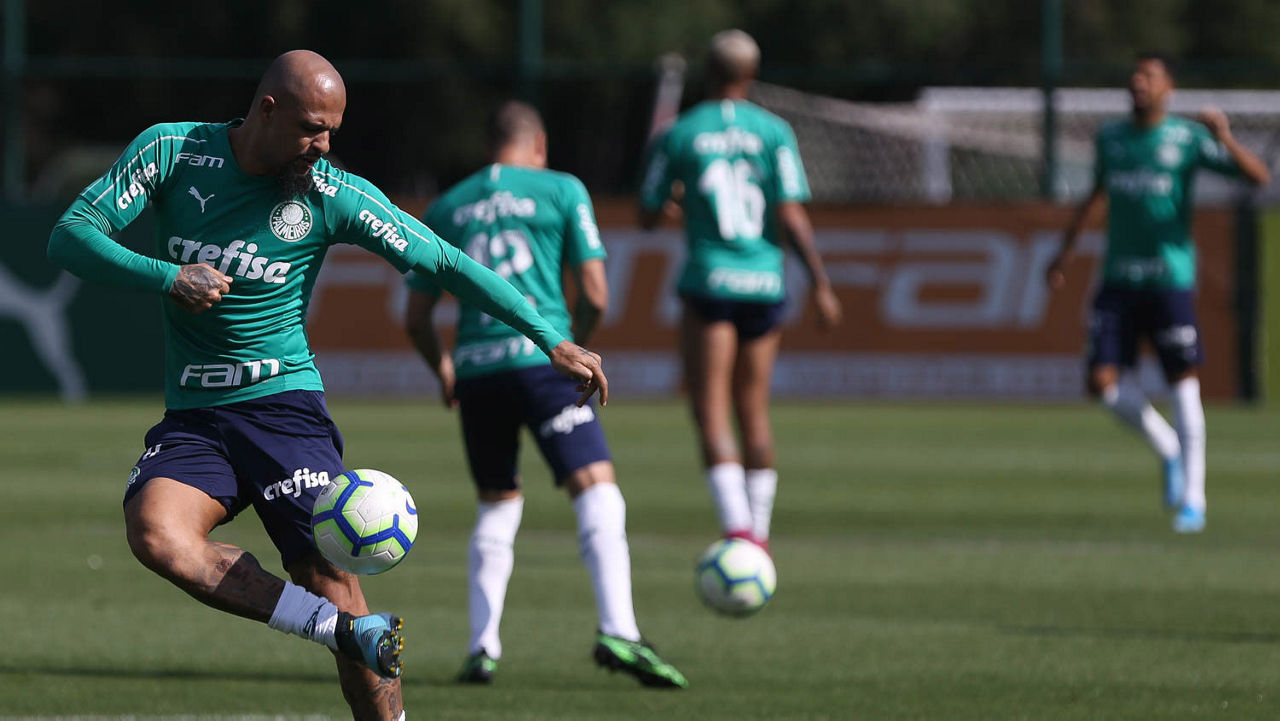 O jogador Felipe Melo, da SE Palmeiras, durante treinamento, na Academia de Futebol.