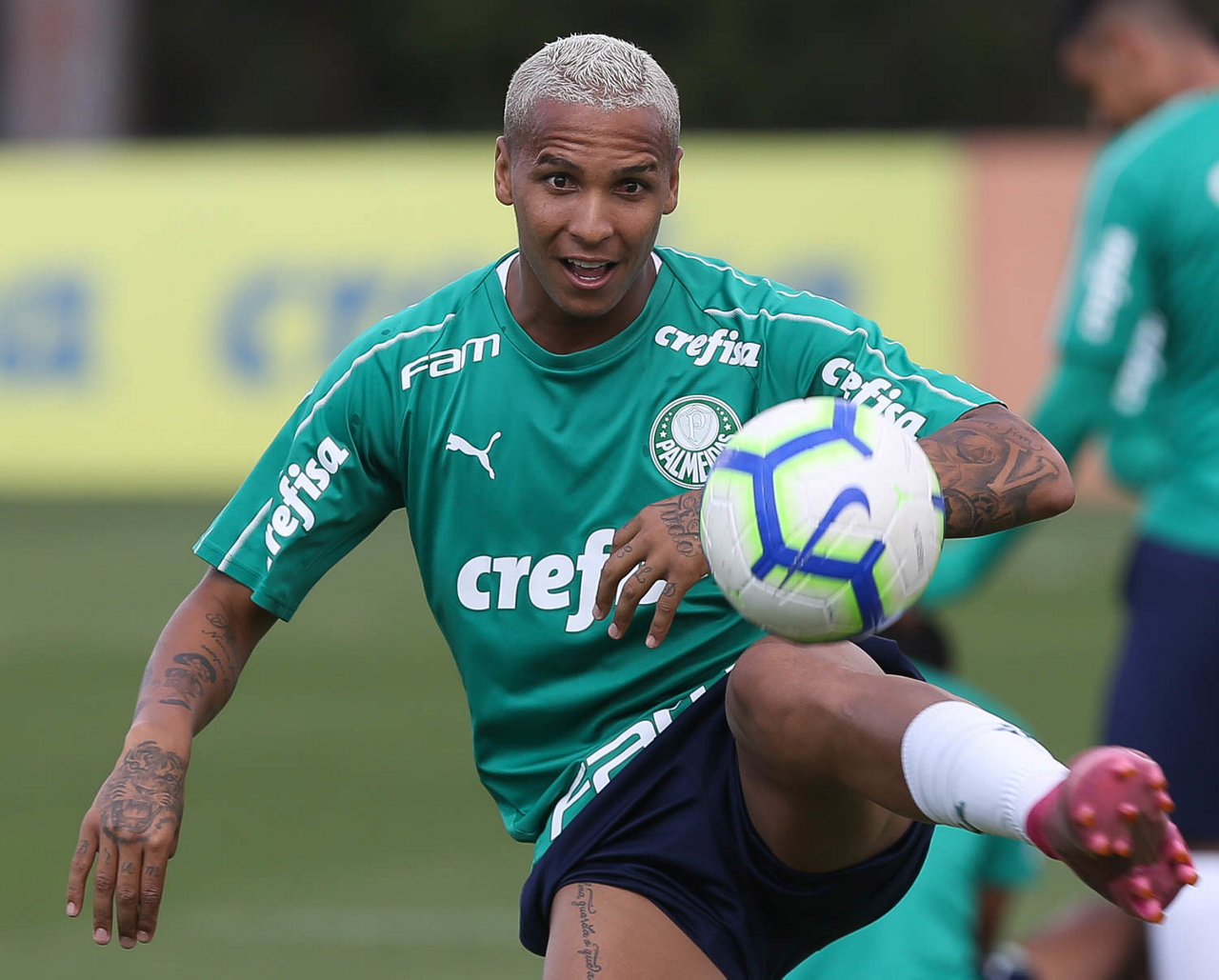 O jogador Deyverson, da SE Palmeiras, durante treinamento, na Academia de Futebol.