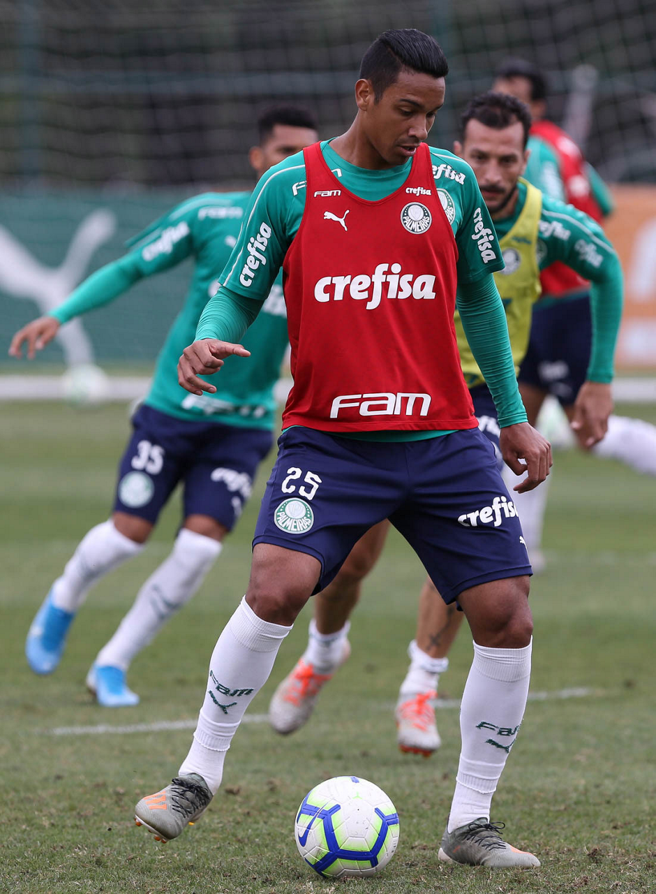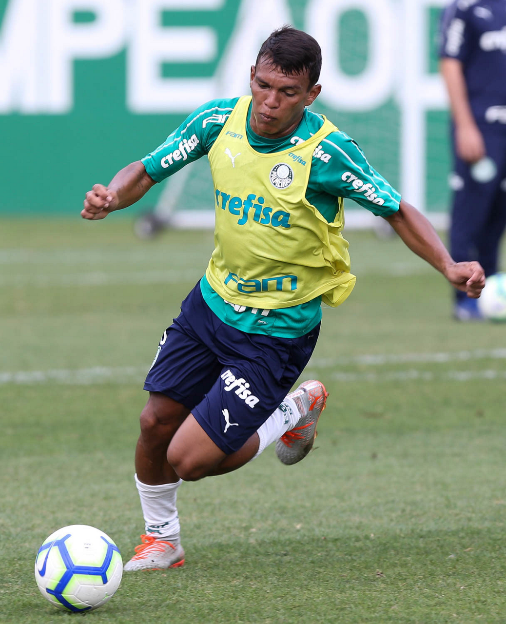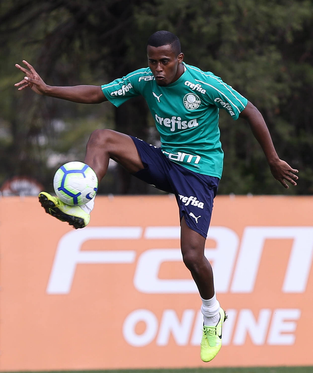 O jogador Victor Luis, da SE Palmeiras, durante treinamento, na Academia de Futebol.