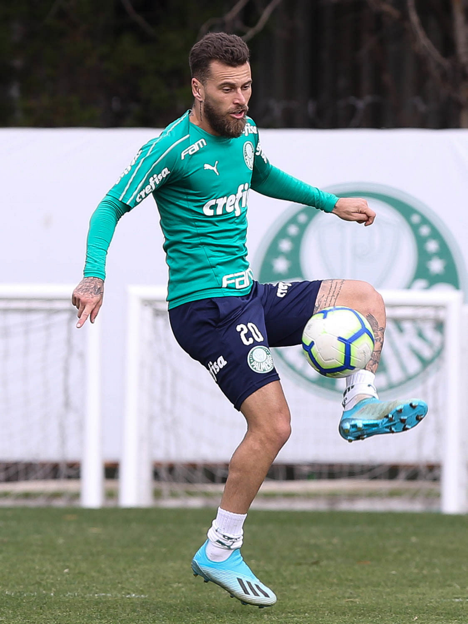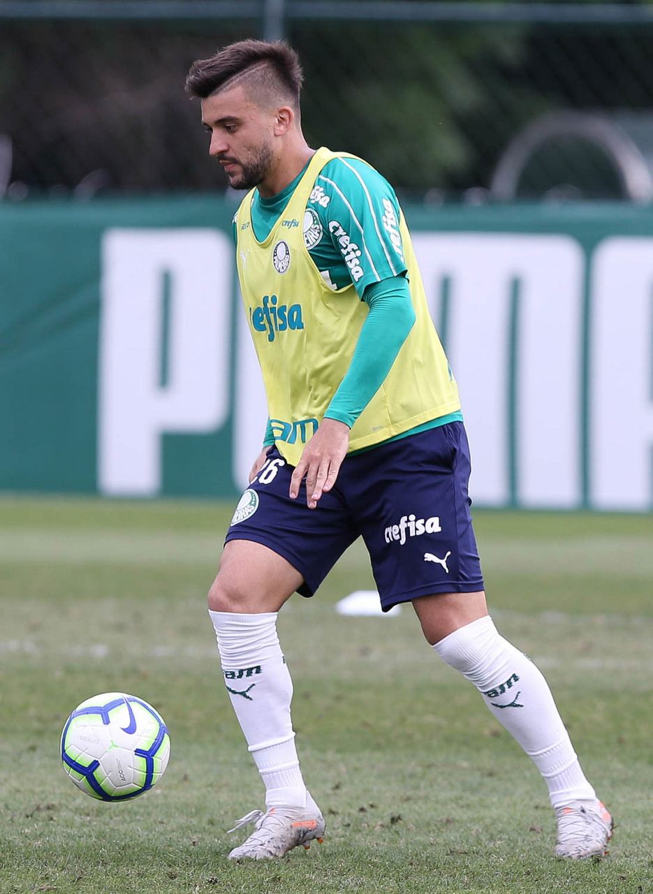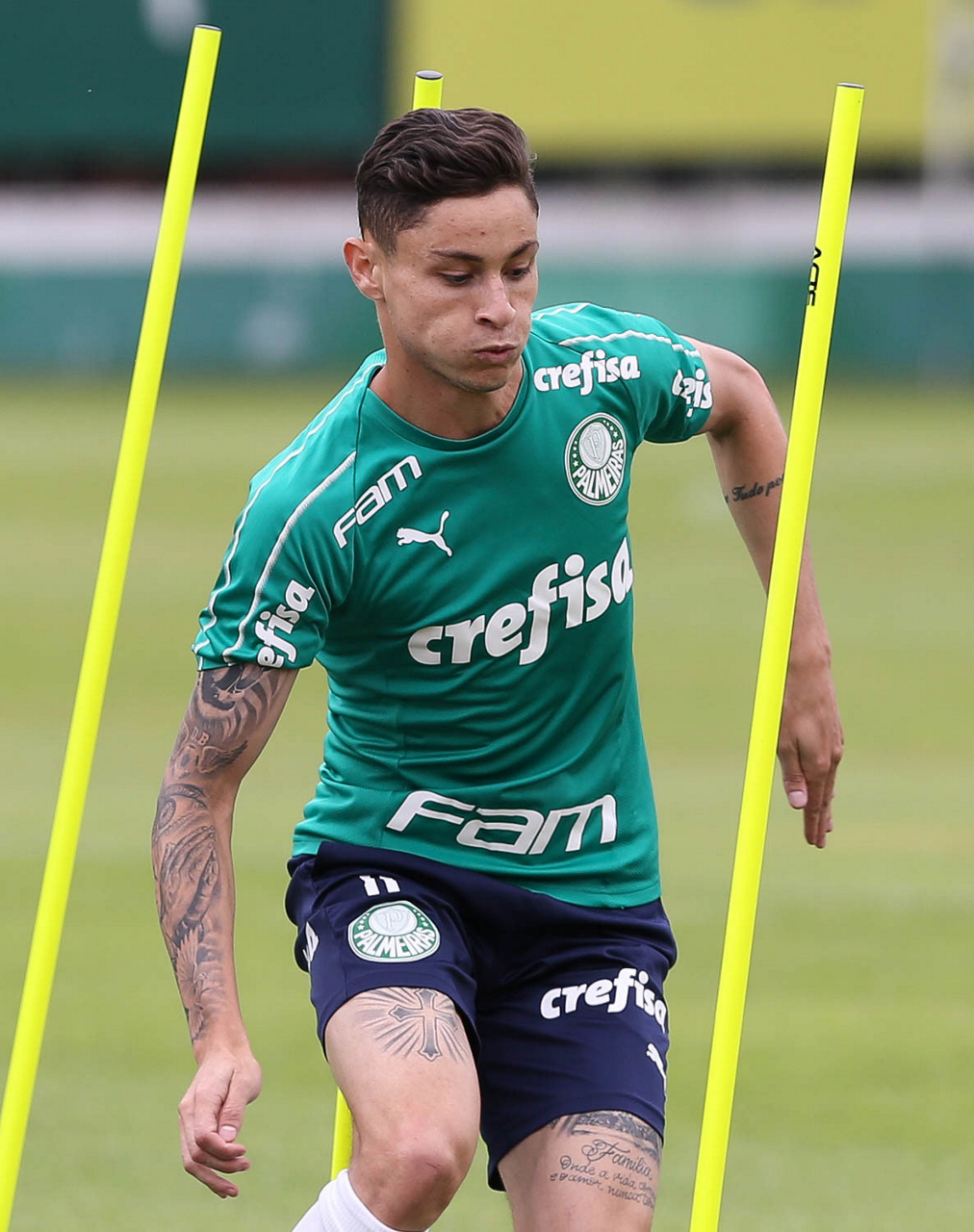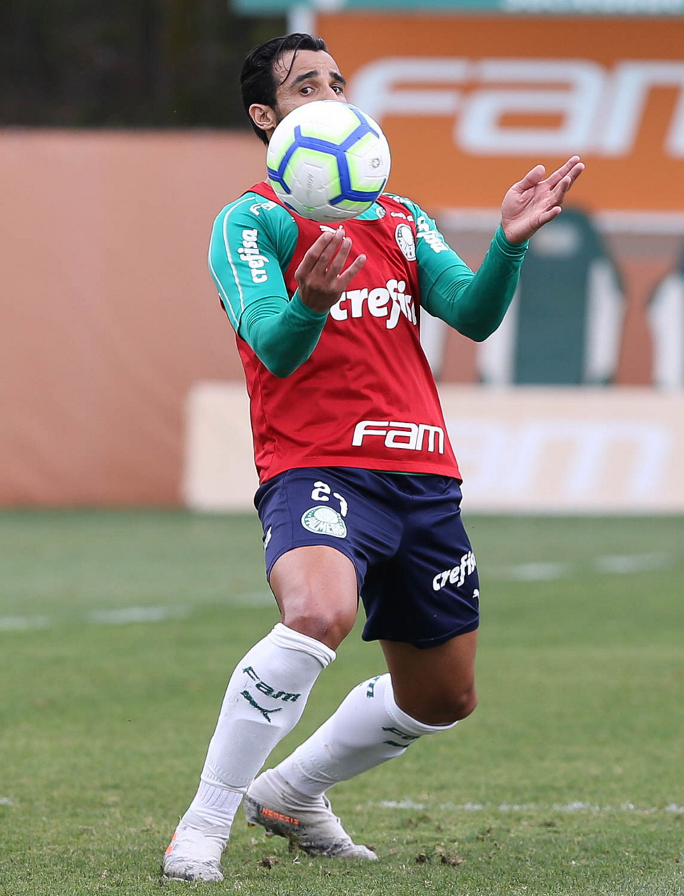O jogador Victor Luis, da SE Palmeiras, durante treinamento, na Academia de Futebol.