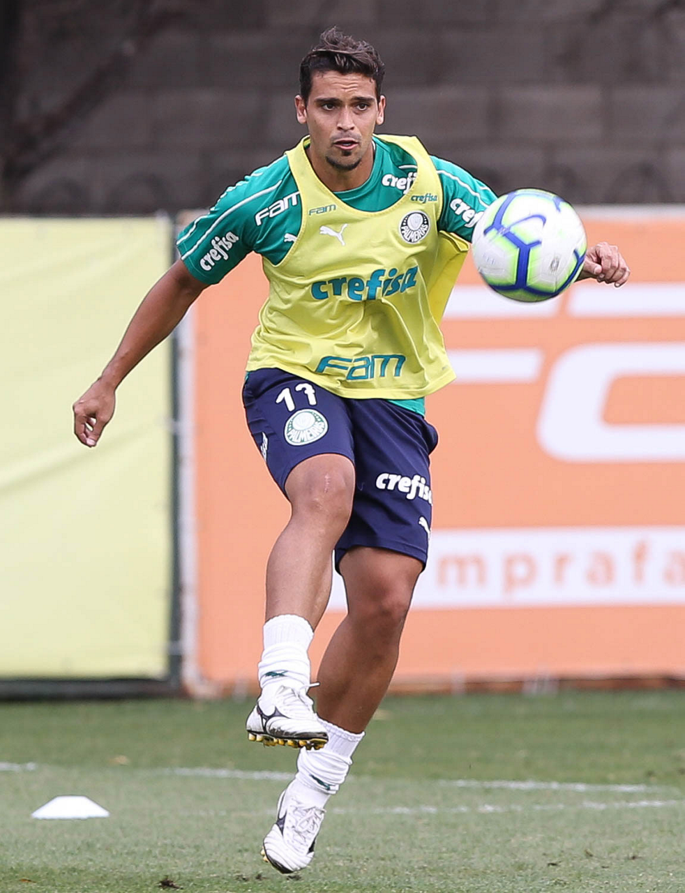 O jogador Dudu, da SE Palmeiras, durante treinamento, na Academia de Futebol.