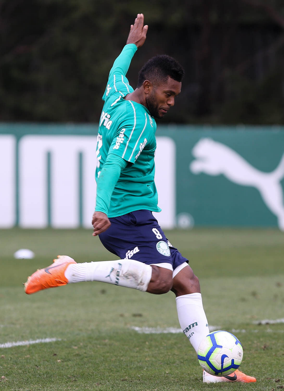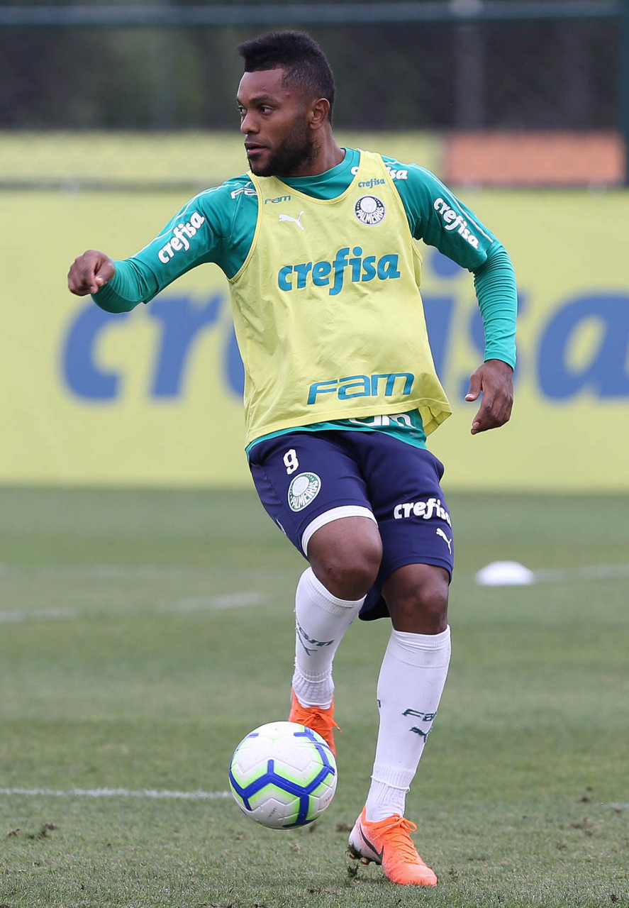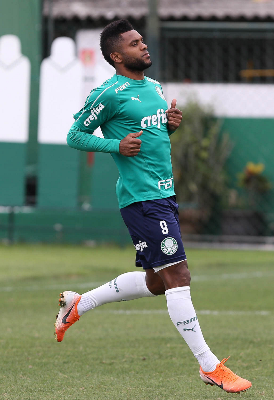 O jogador Deyverson, da SE Palmeiras, durante treinamento, na Academia de Futebol.