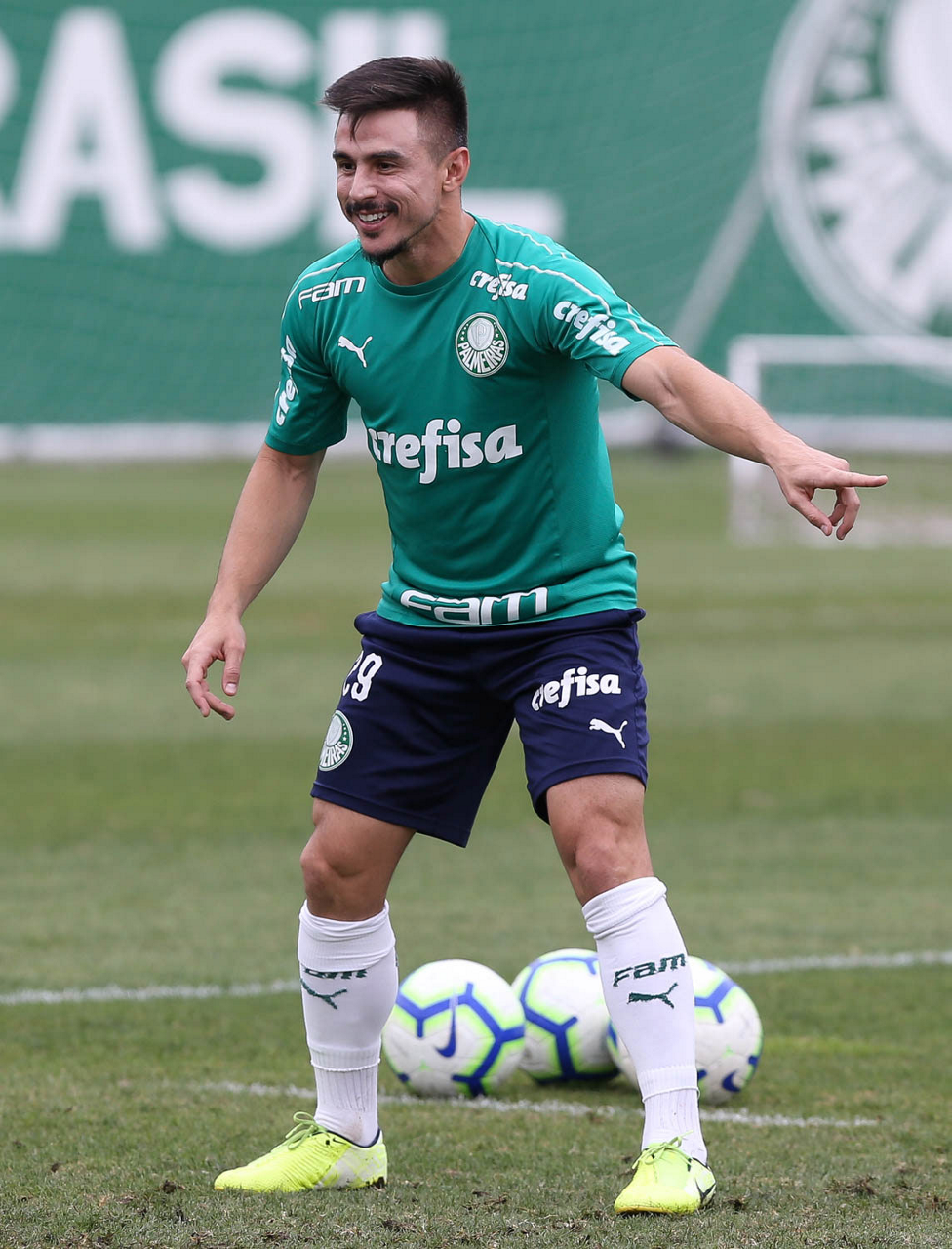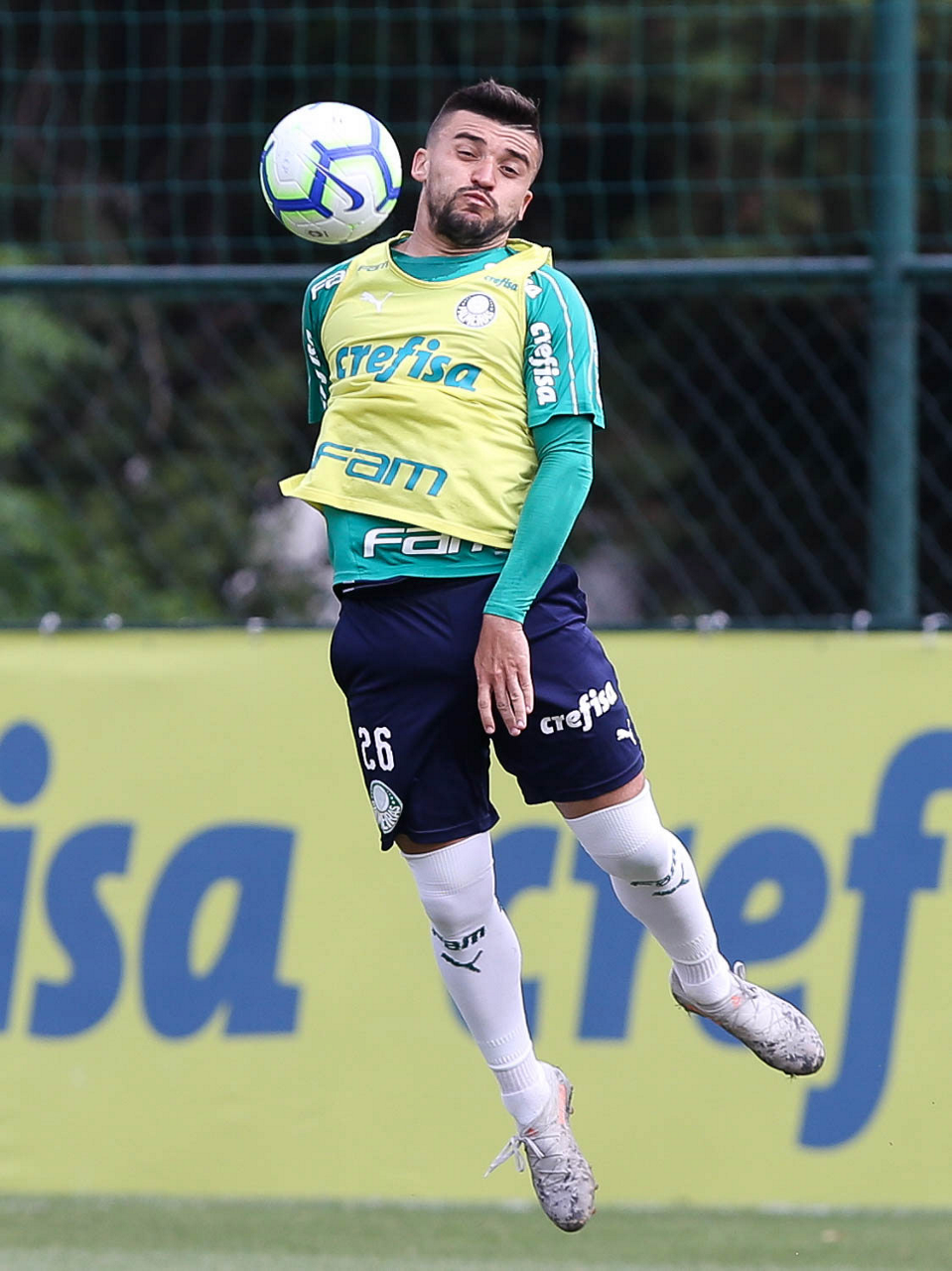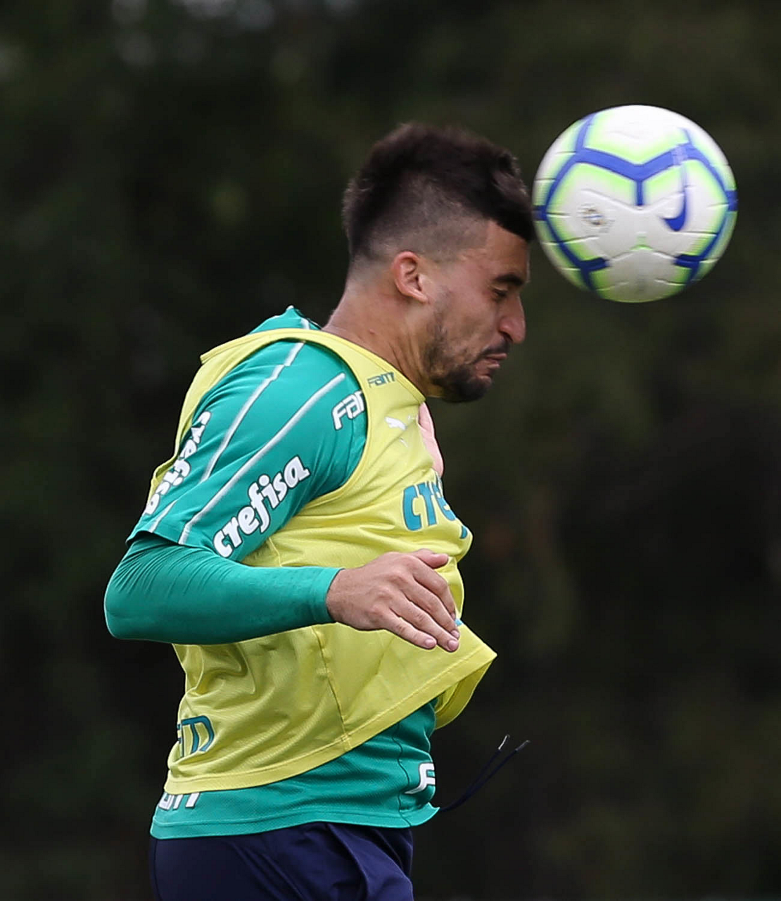 O jogador Borja, da SE Palmeiras, durante treinamento, na Academia de Futebol.