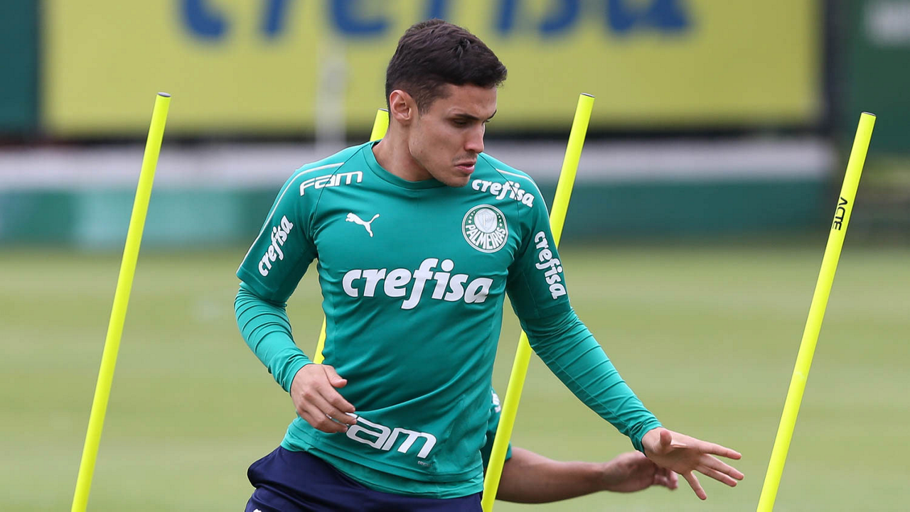 O jogador Raphael Veiga, da SE Palmeiras, durante treinamento, na Academia de Futebol.