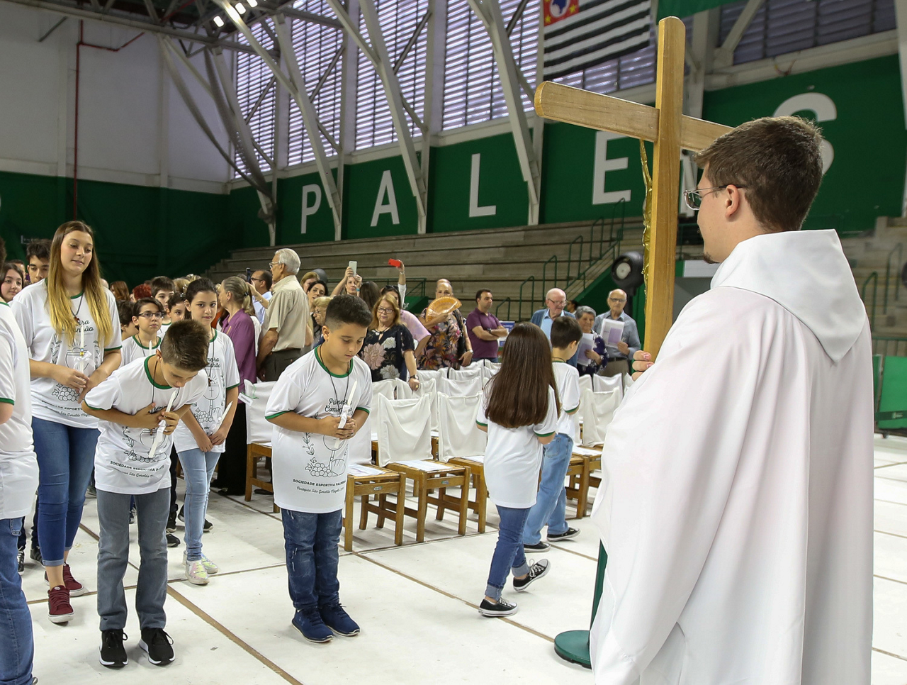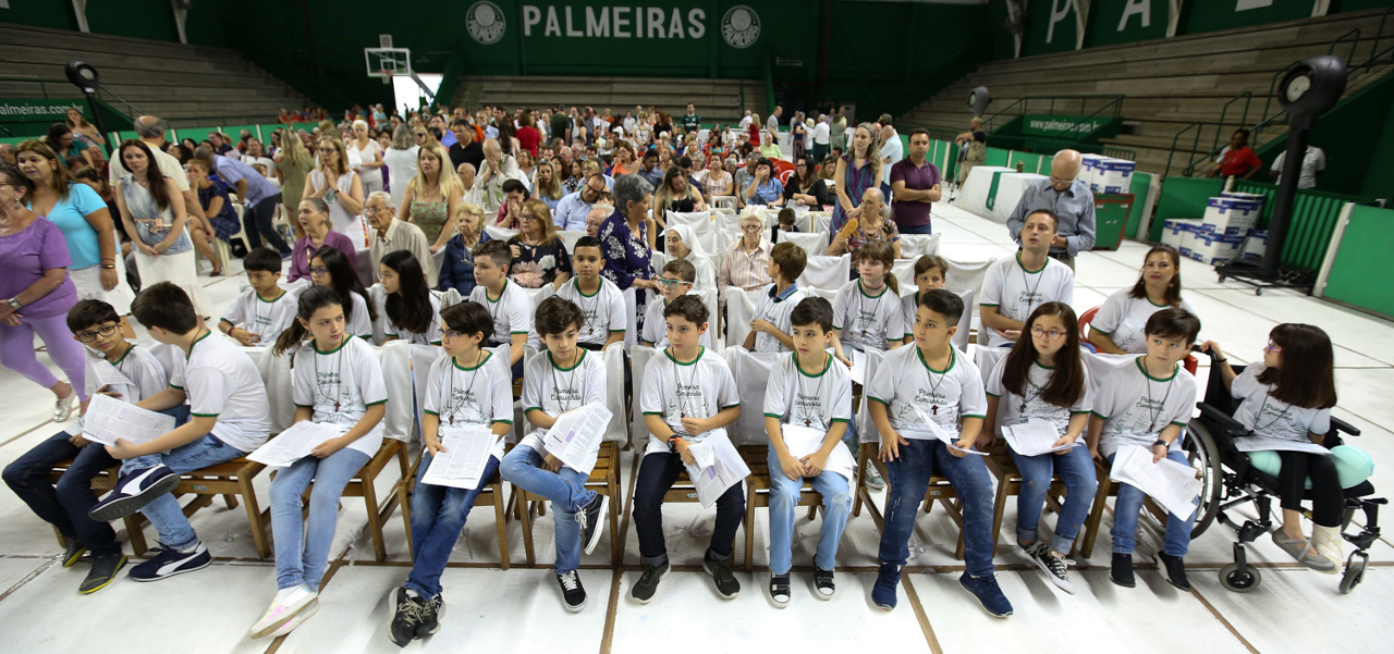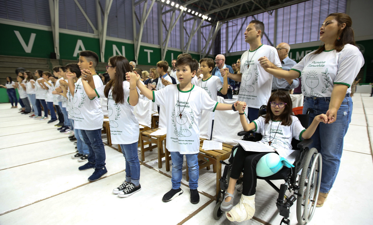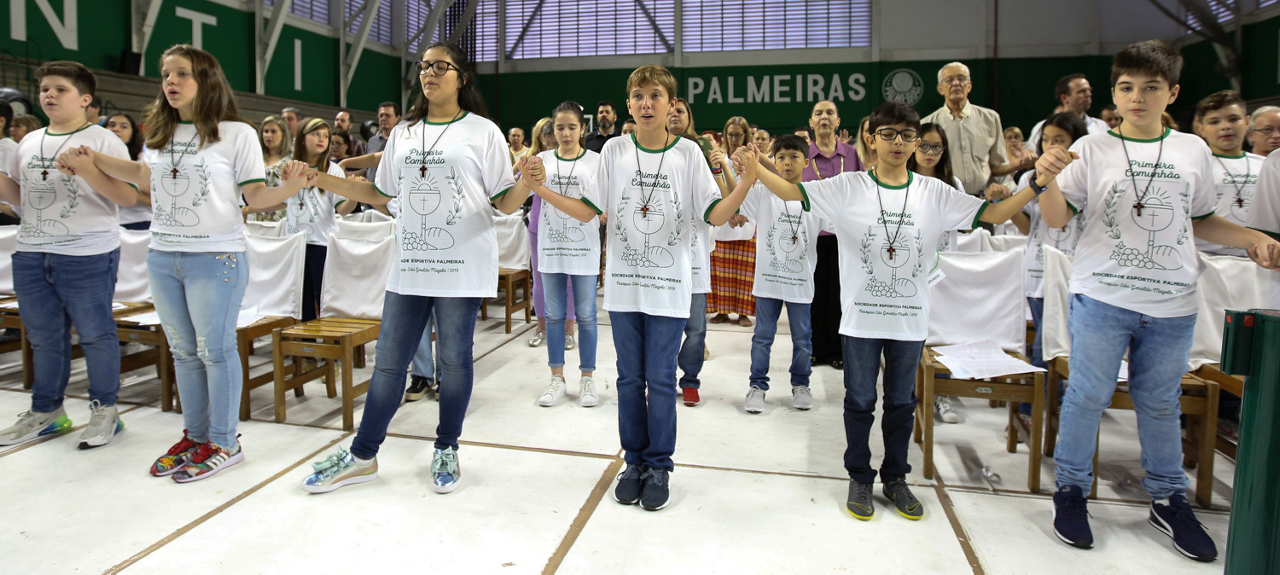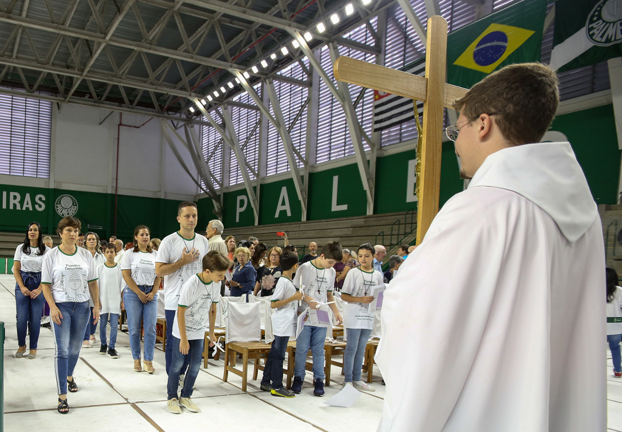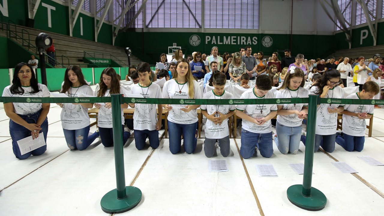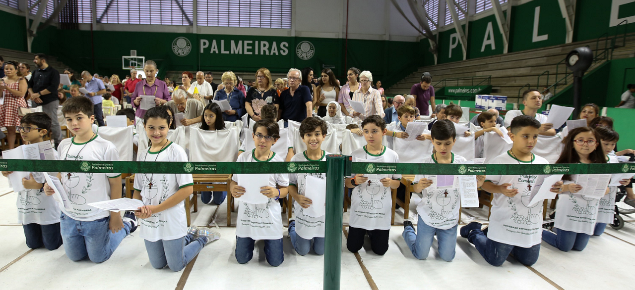 Missa de primeira comunhão, realizado no ginásio poliesportivo, no Clube Social da SE Palmeiras, em São Paulo-SP. (Foto: Fabio Menotti)