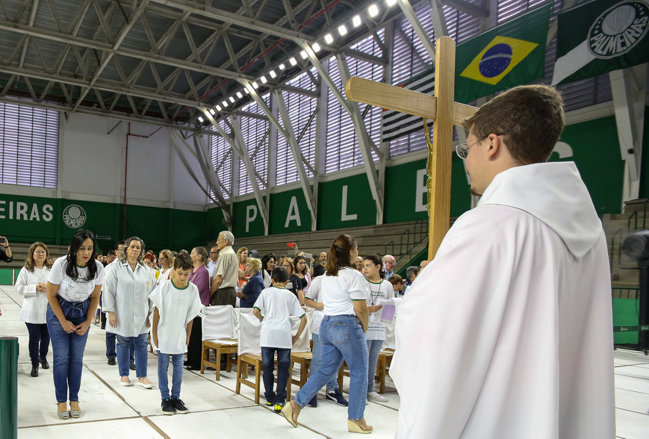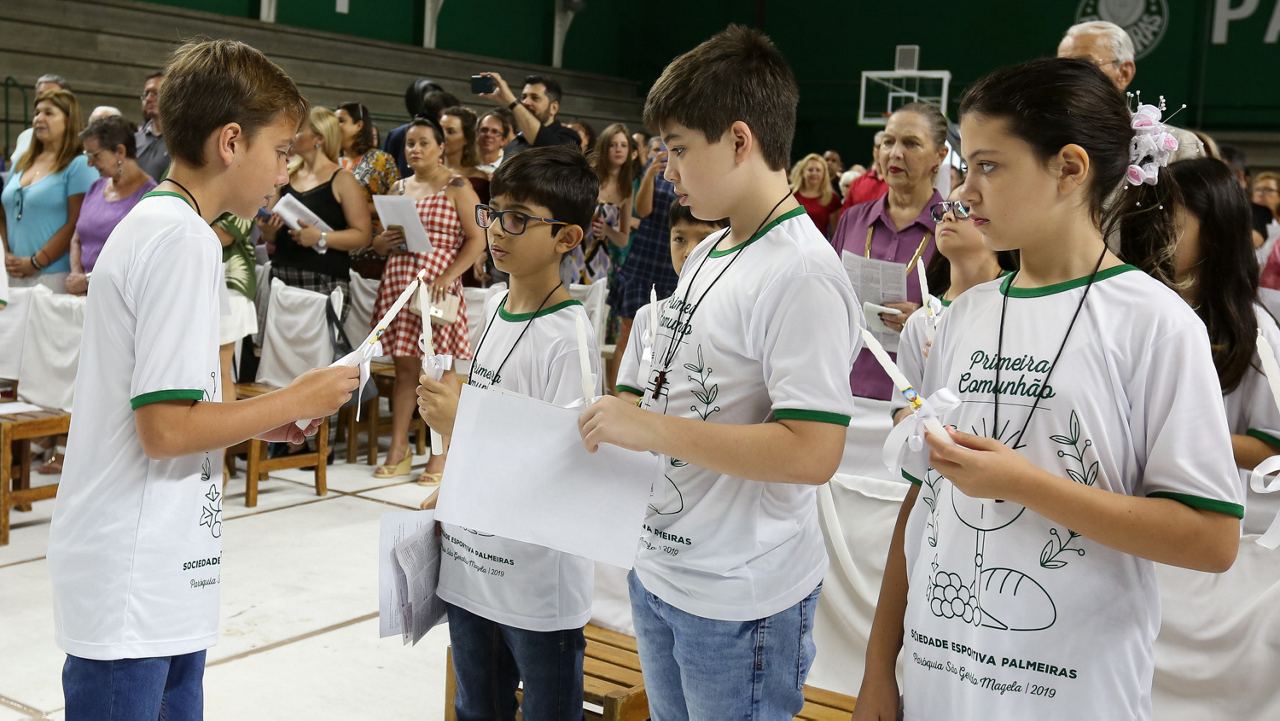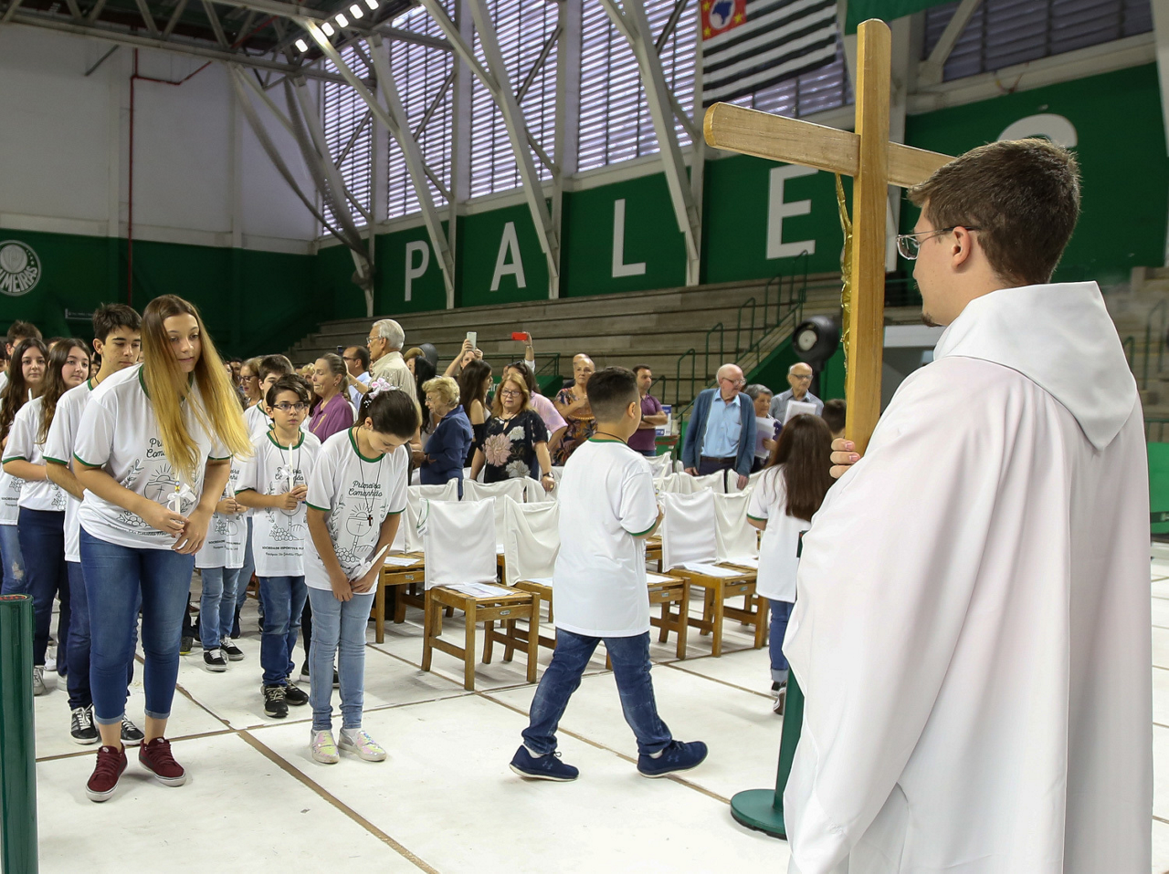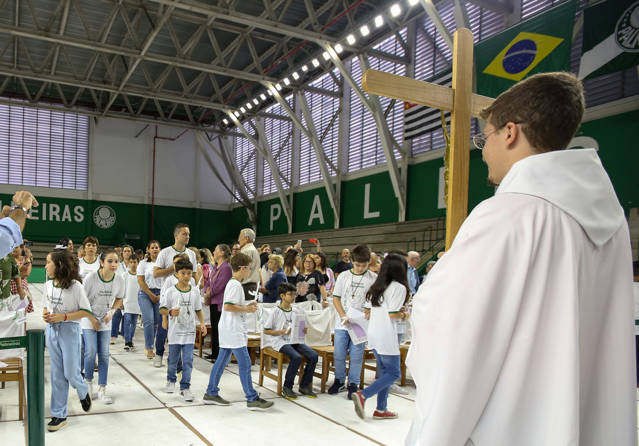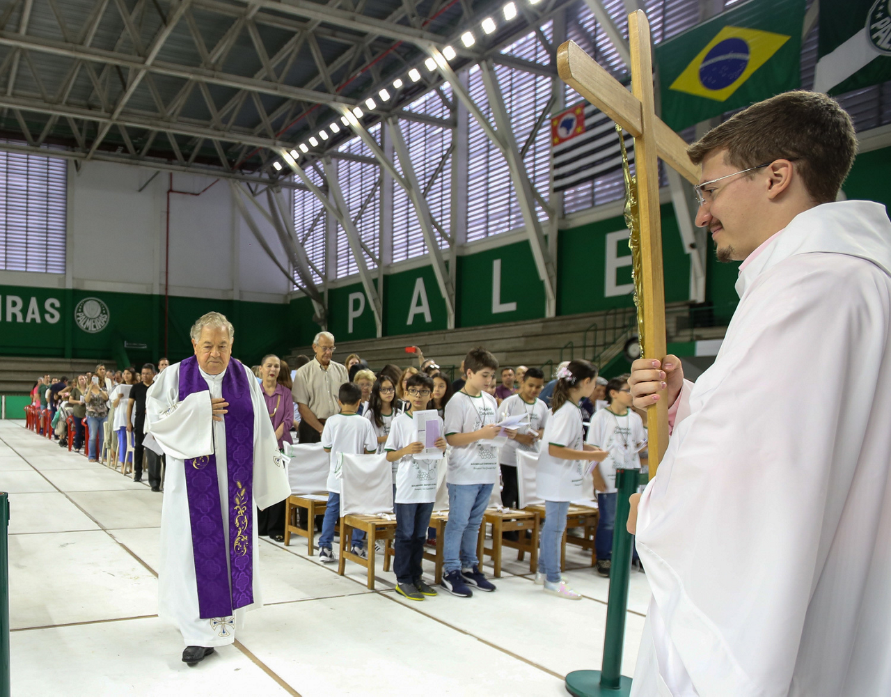 Missa de primeira comunhão, realizado no ginásio poliesportivo, no Clube Social da SE Palmeiras, em São Paulo-SP. (Foto: Fabio Menotti)