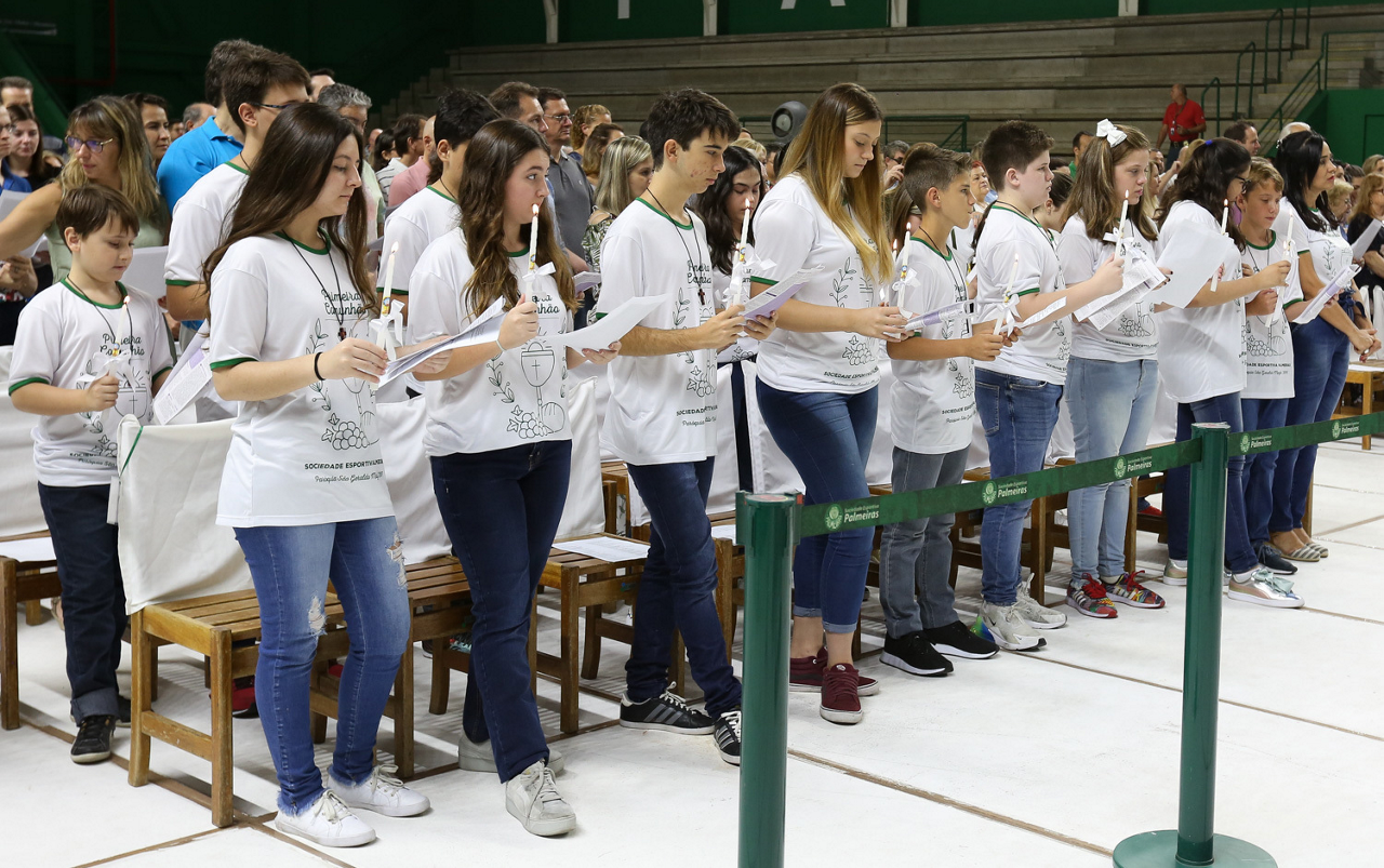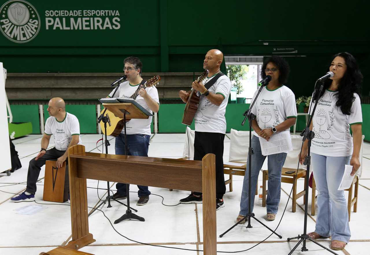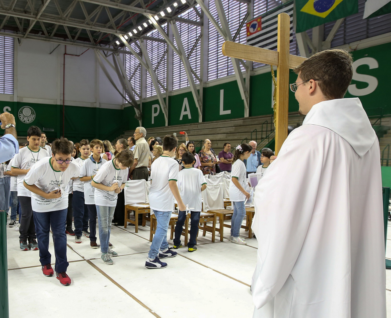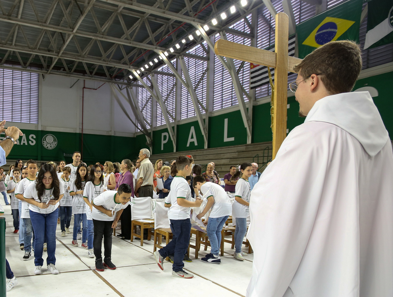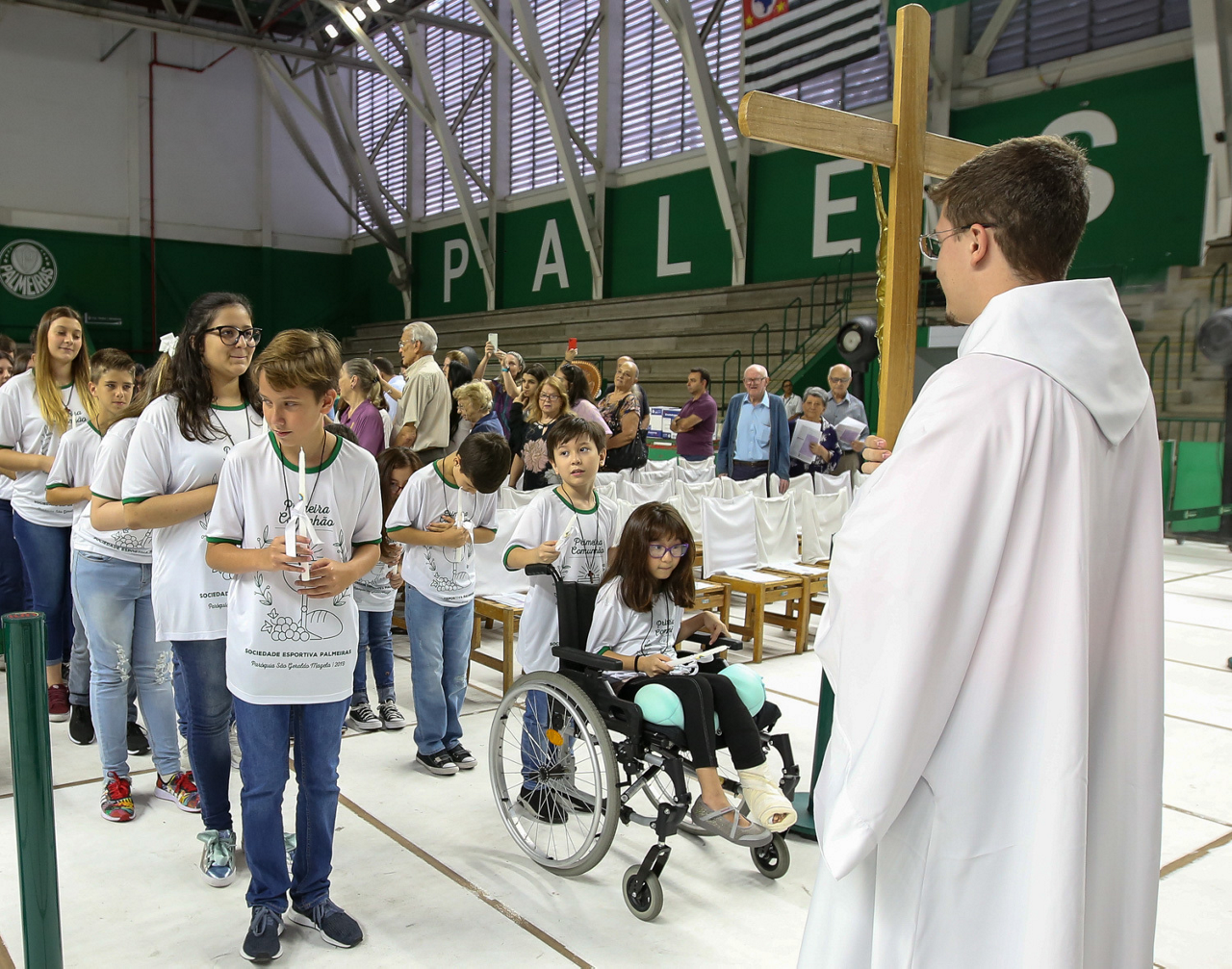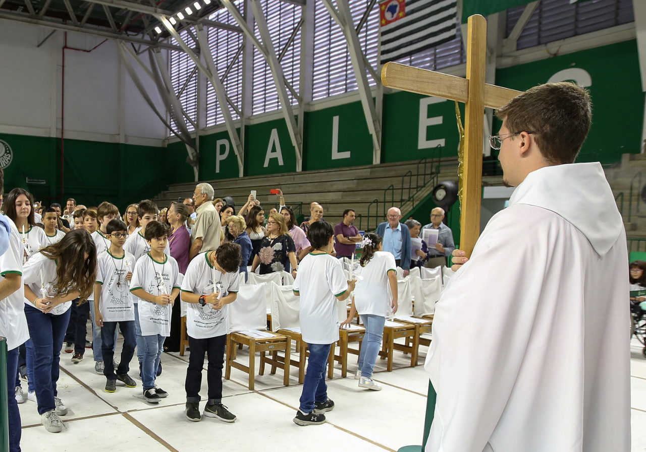 Missa de primeira comunhão, realizado no ginásio poliesportivo, no Clube Social da SE Palmeiras, em São Paulo-SP. (Foto: Fabio Menotti)
