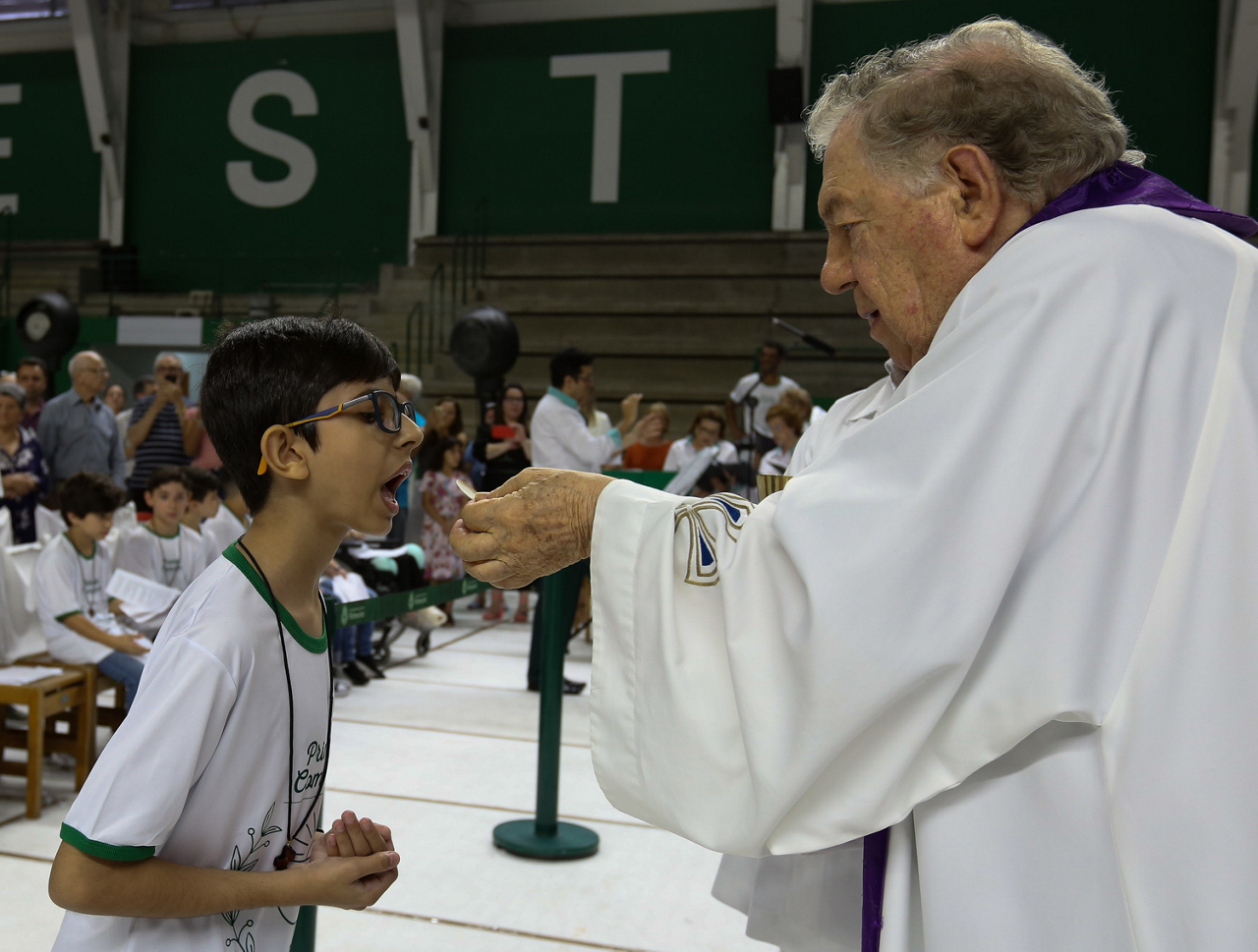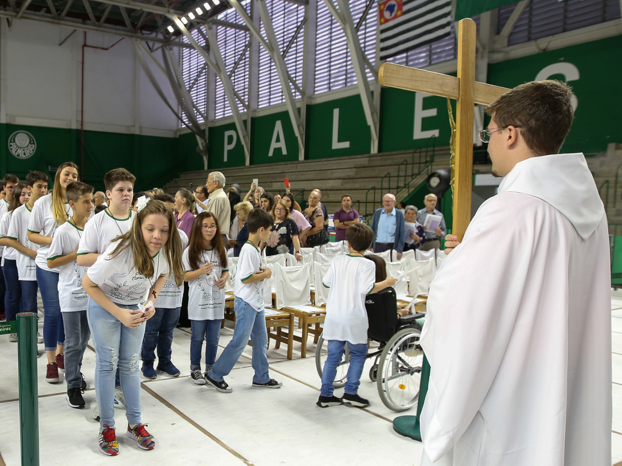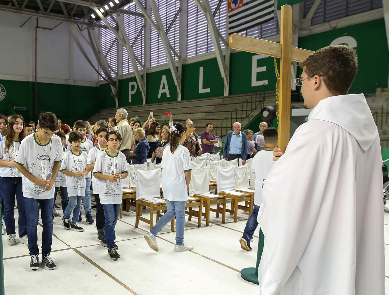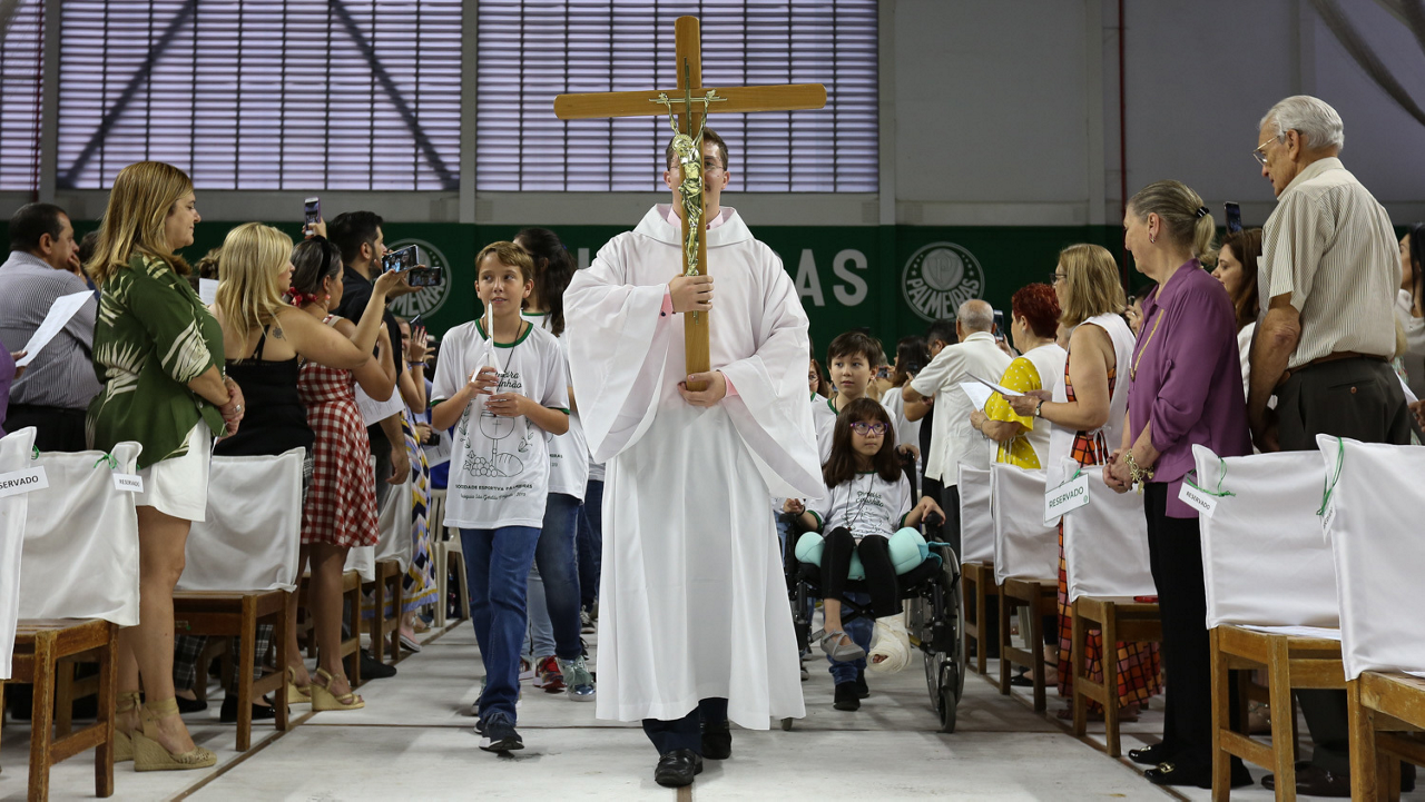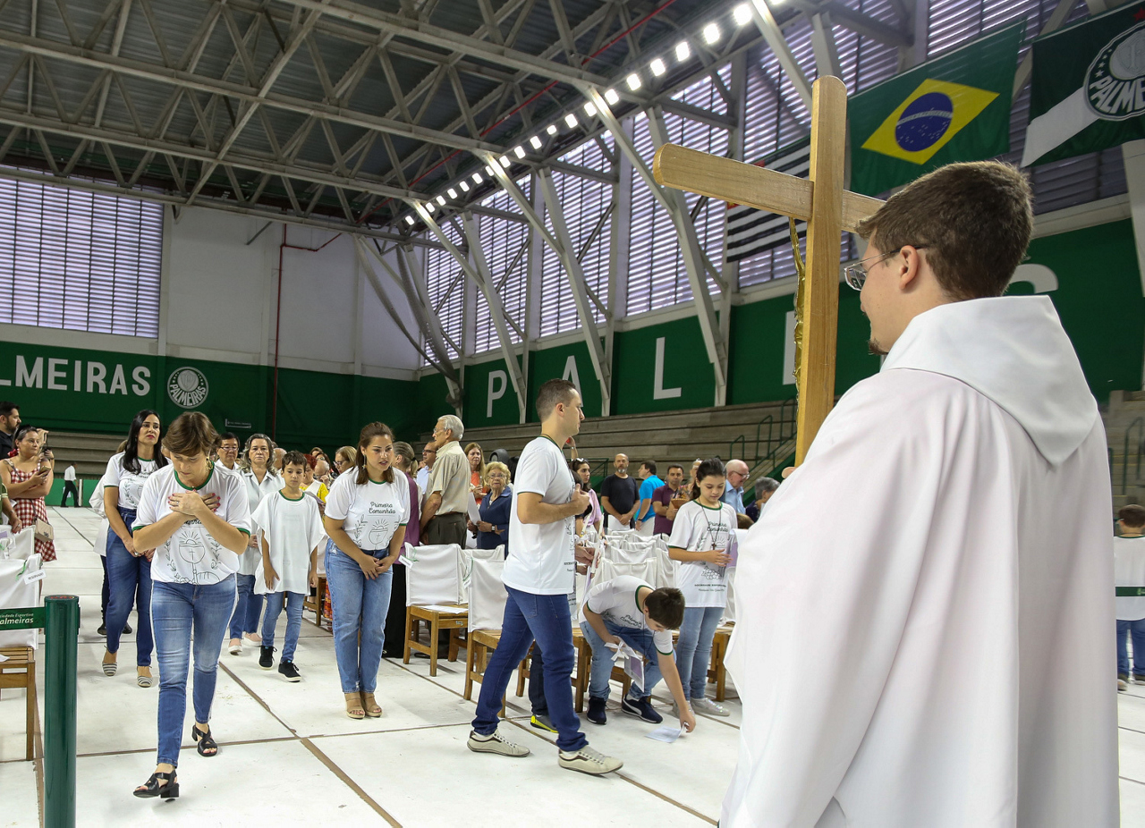 Missa de primeira comunhão, realizado no ginásio poliesportivo, no Clube Social da SE Palmeiras, em São Paulo-SP. (Foto: Fabio Menotti)