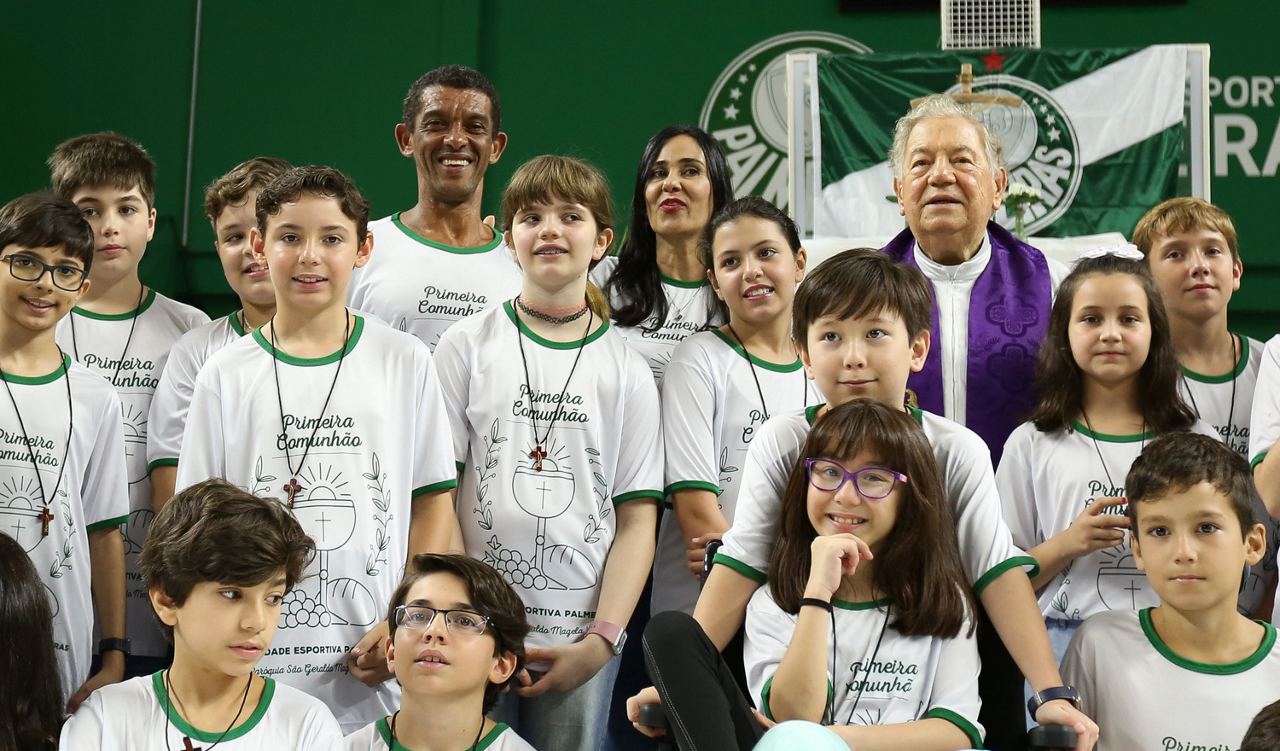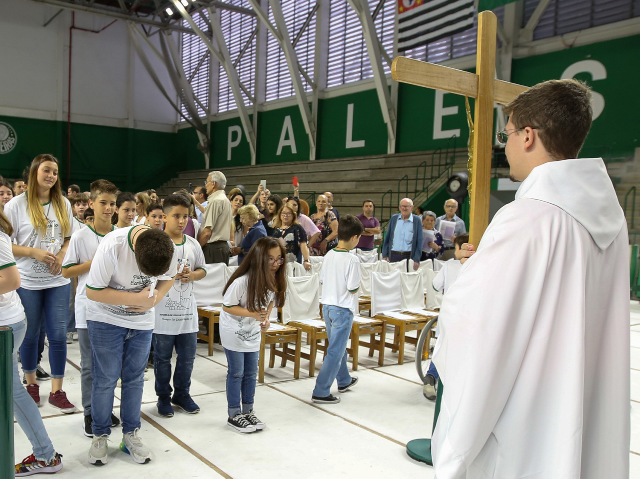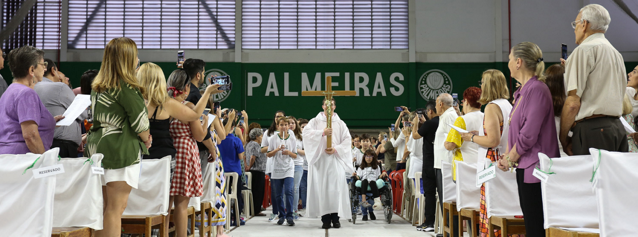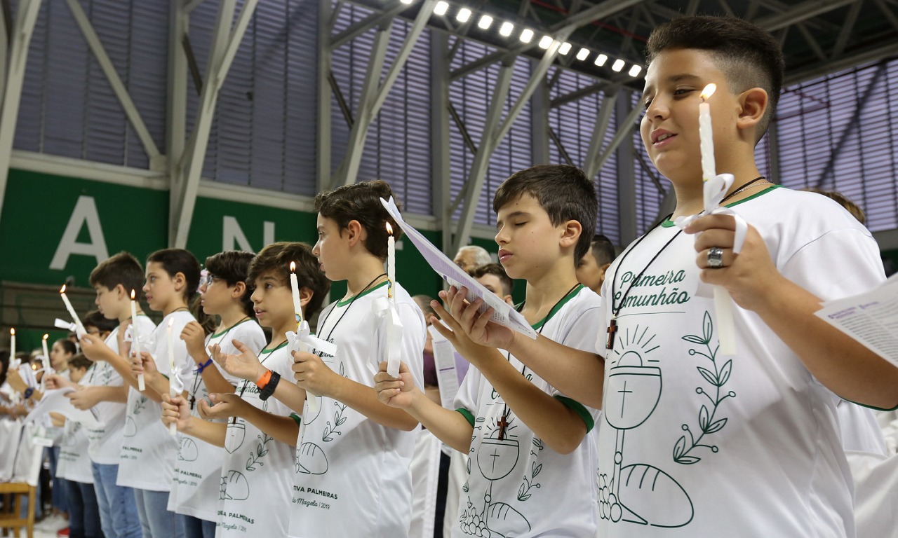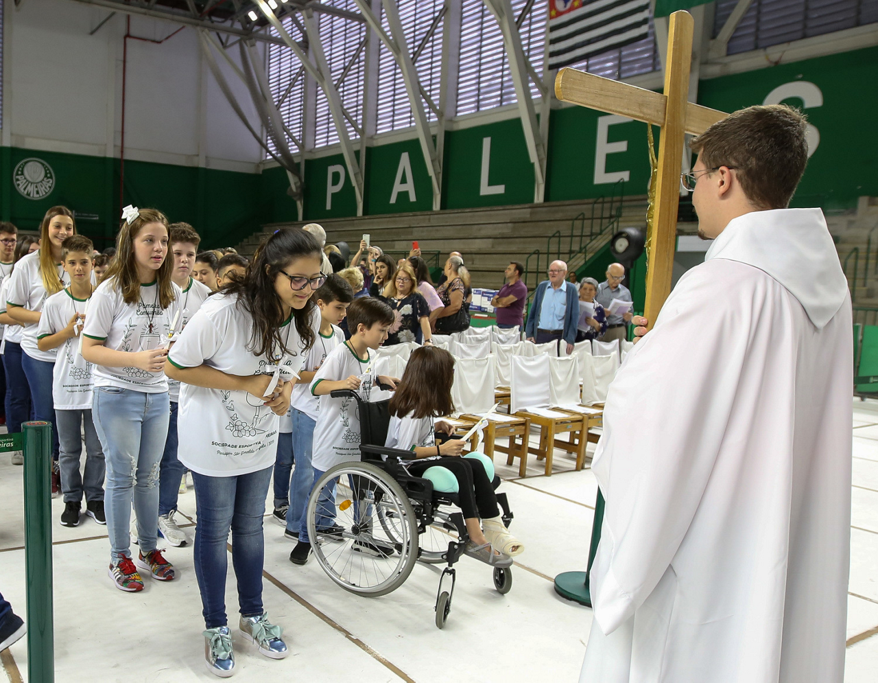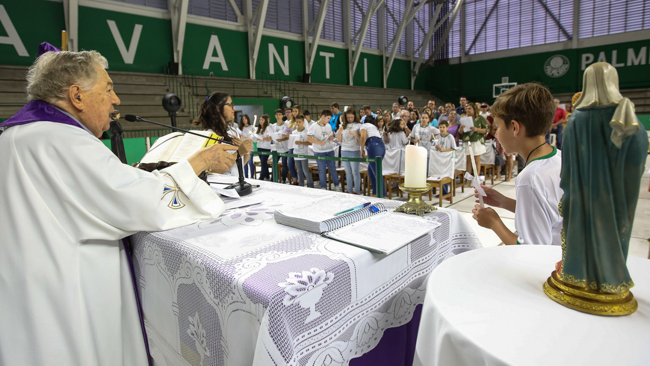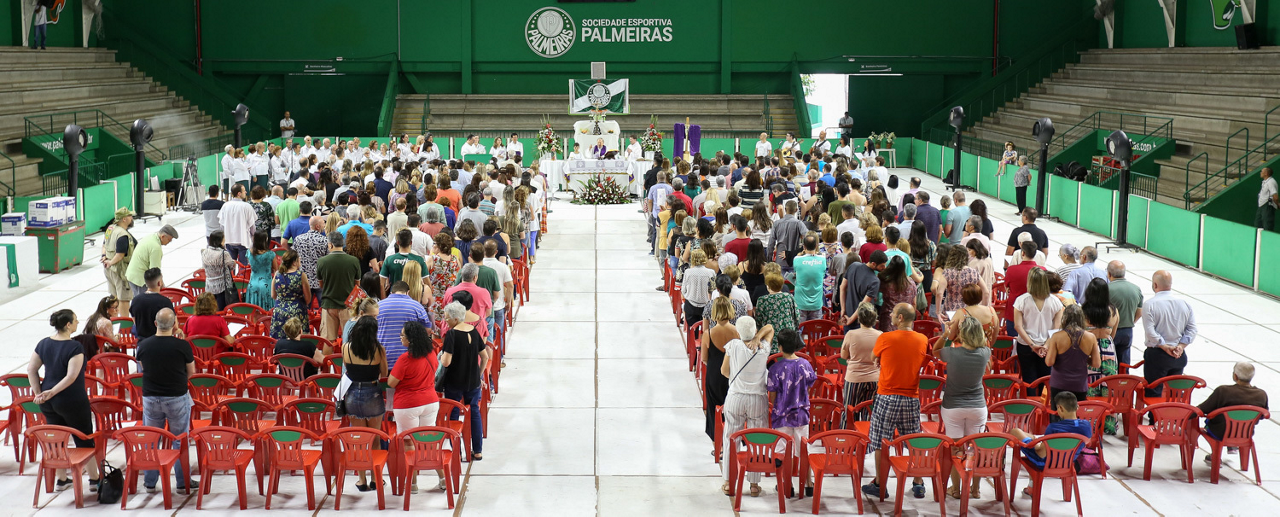 Missa de primeira comunhão, realizado no ginásio poliesportivo, no Clube Social da SE Palmeiras, em São Paulo-SP. (Foto: Fabio Menotti)