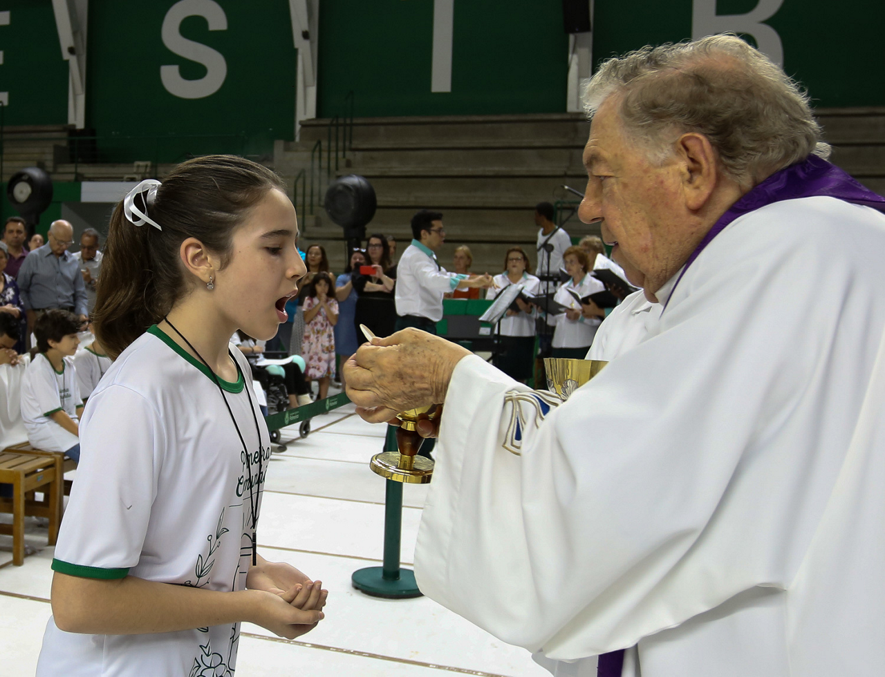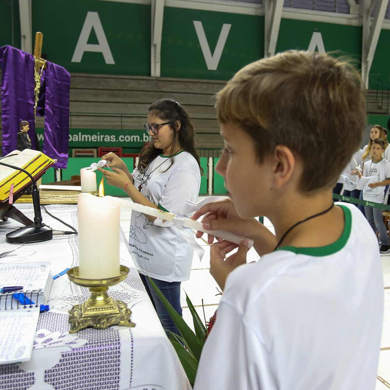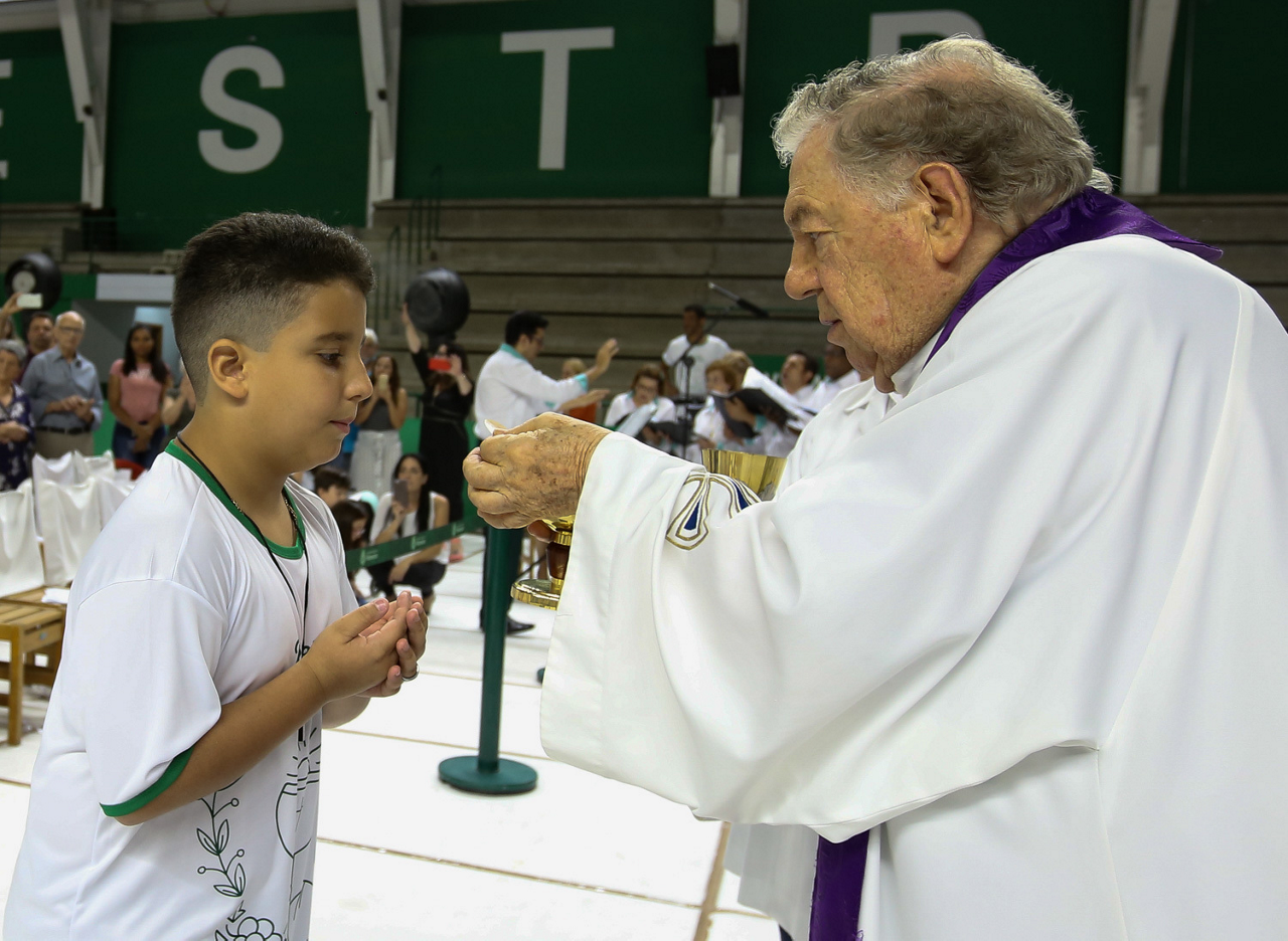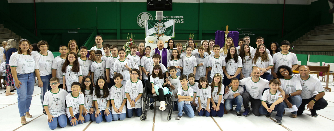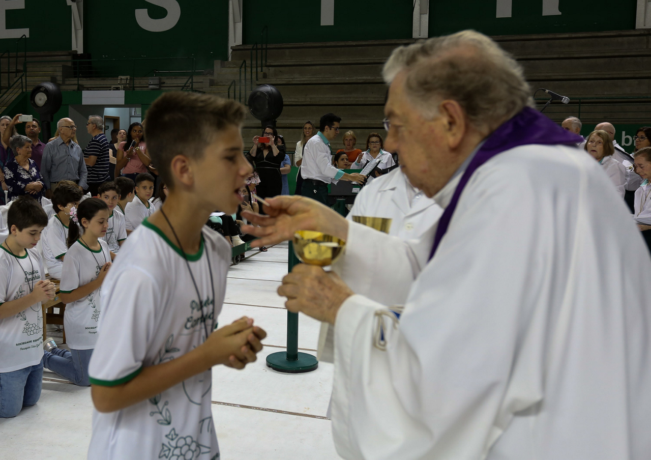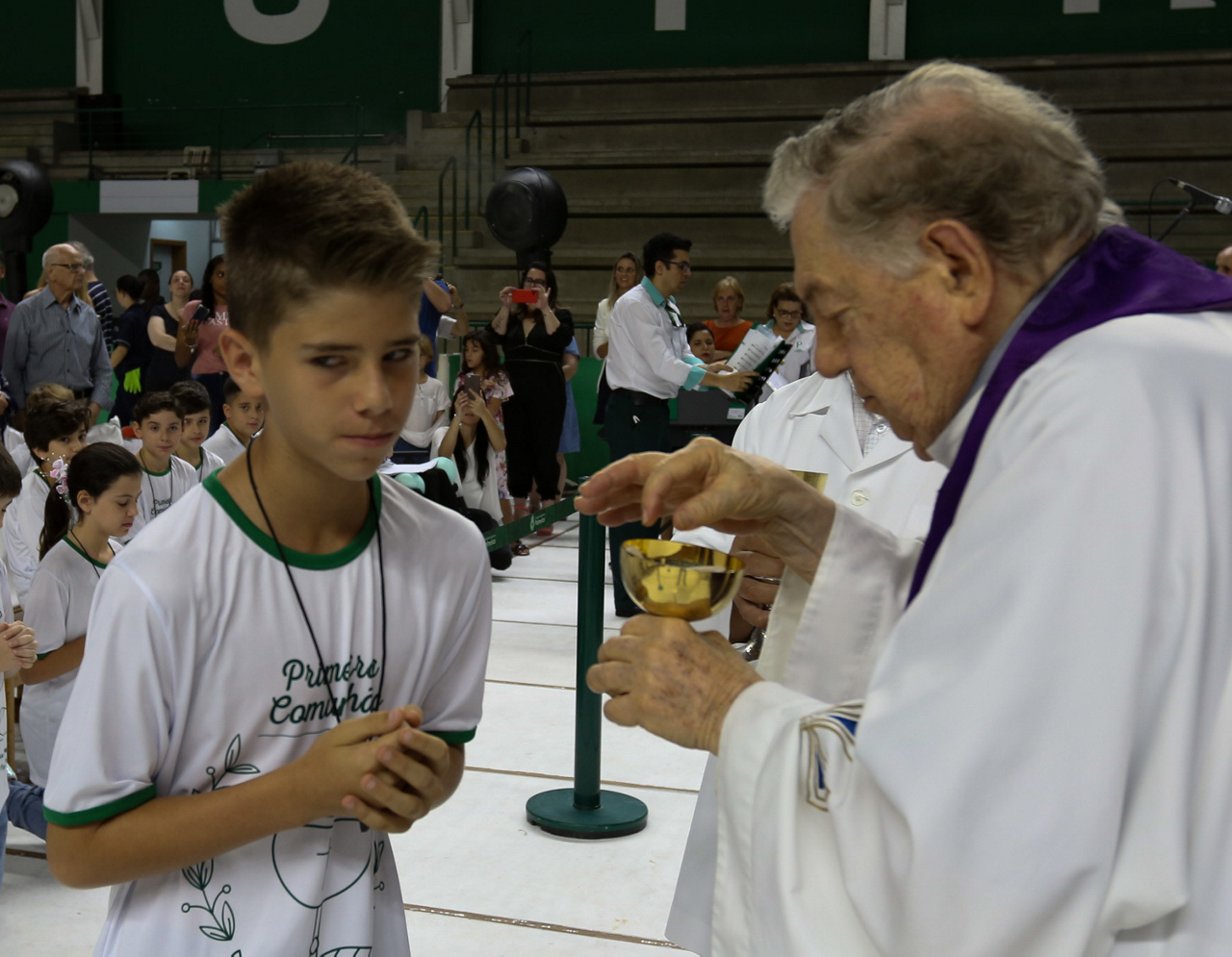 Missa de primeira comunhão, realizado no ginásio poliesportivo, no Clube Social da SE Palmeiras, em São Paulo-SP. (Foto: Fabio Menotti)