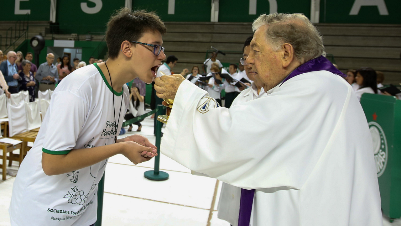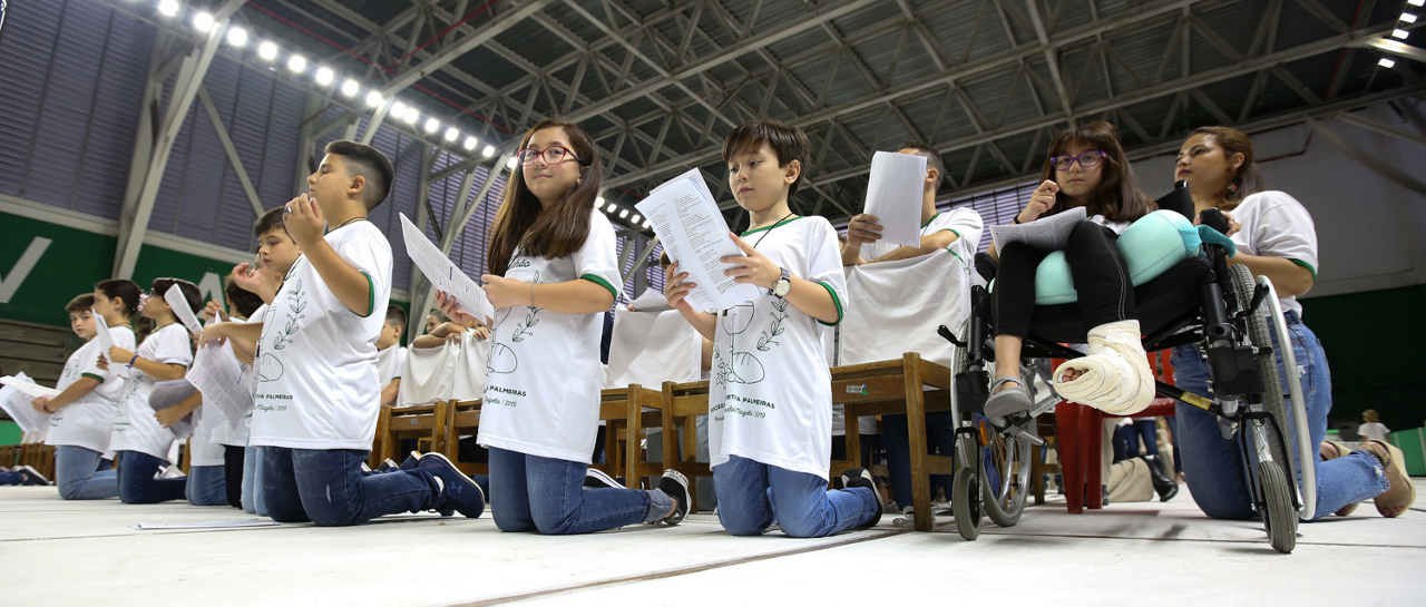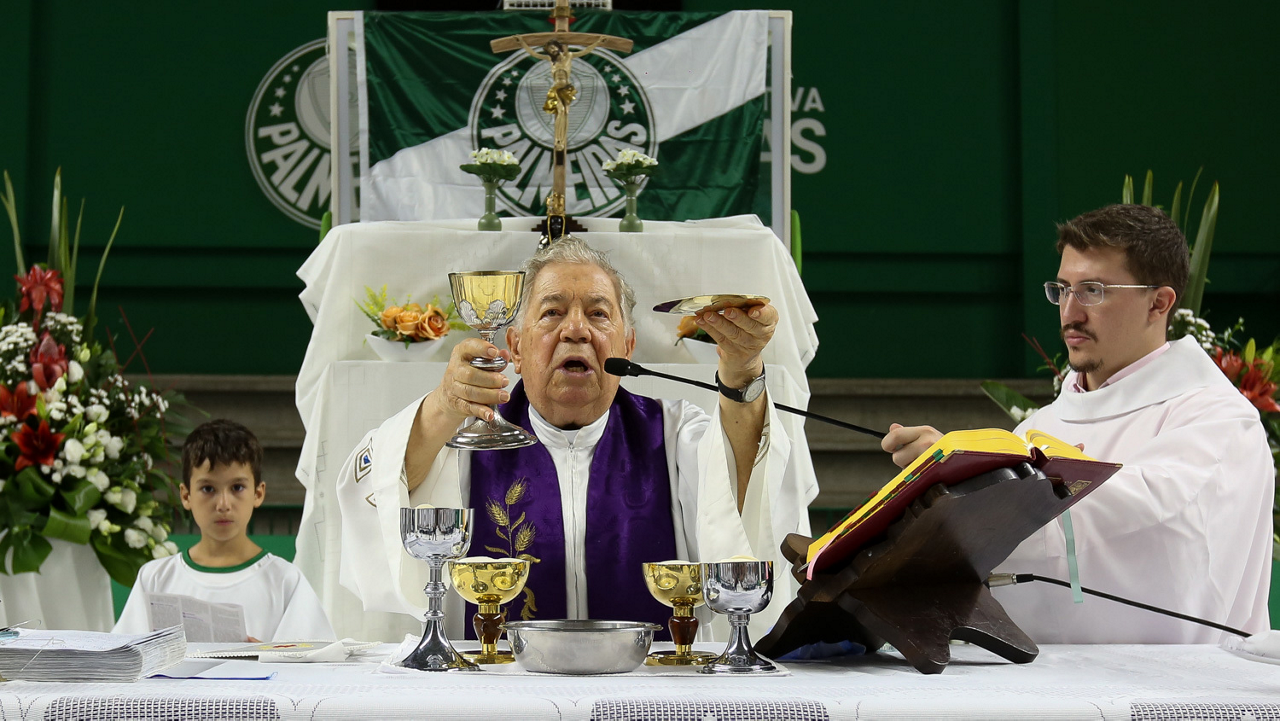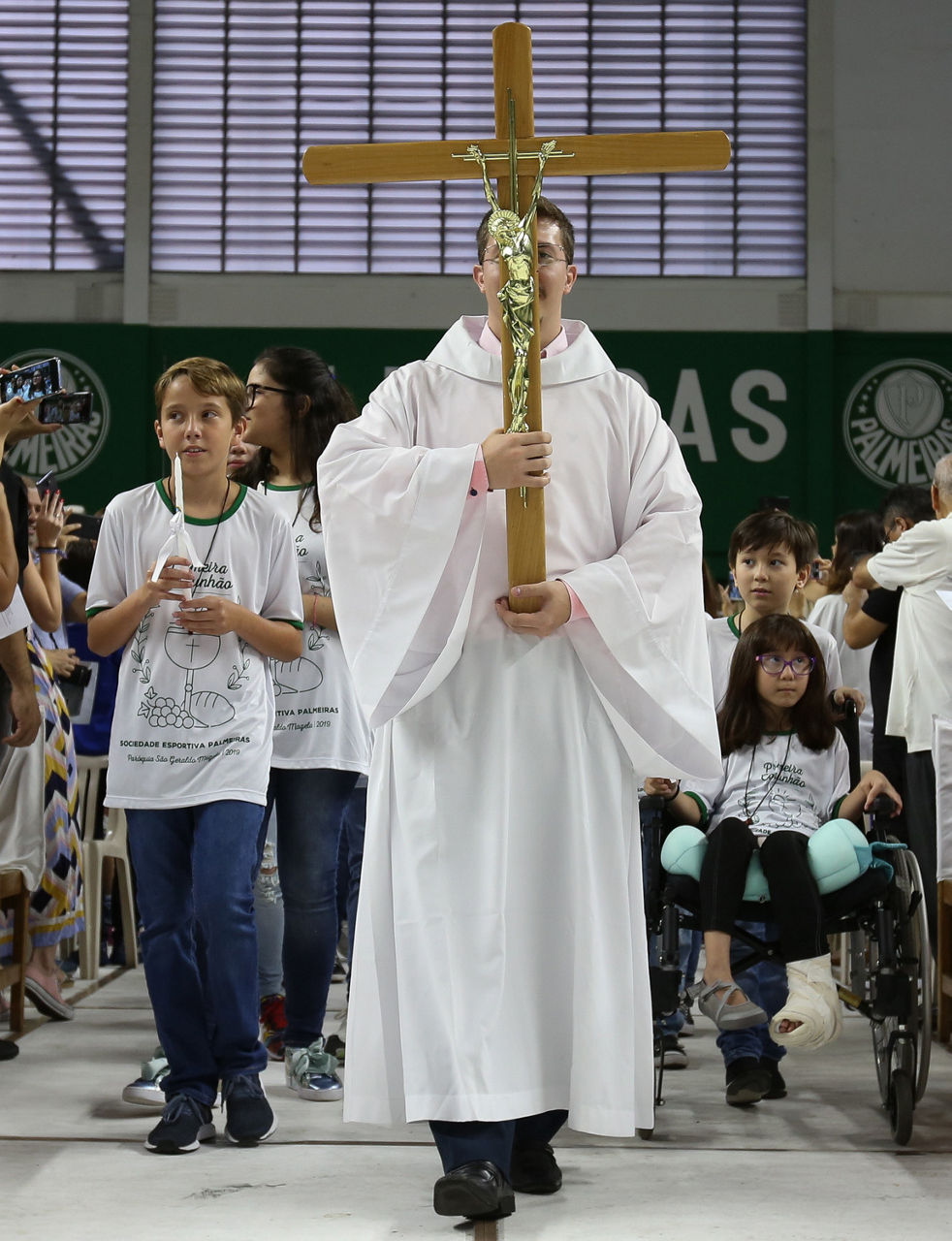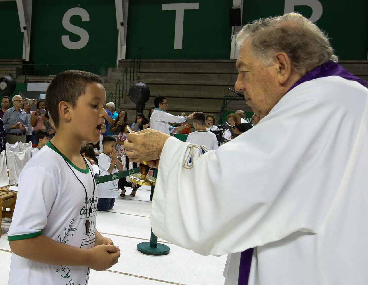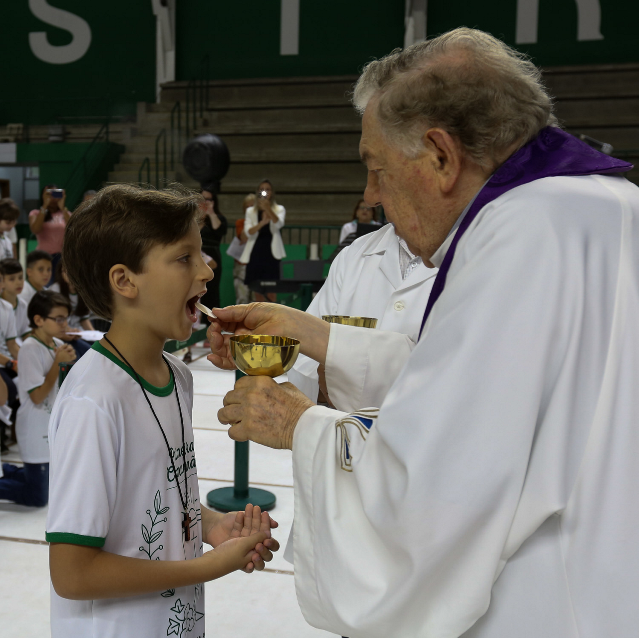 Missa de primeira comunhão, realizado no ginásio poliesportivo, no Clube Social da SE Palmeiras, em São Paulo-SP. (Foto: Fabio Menotti)