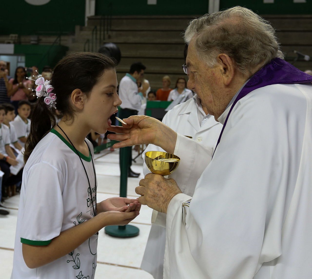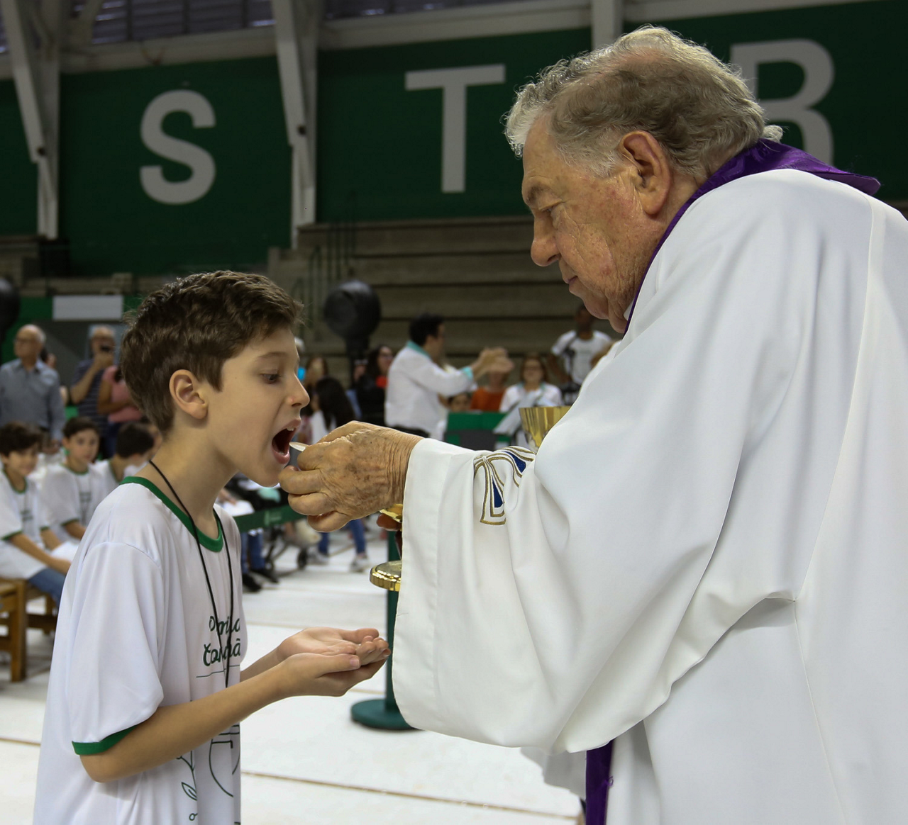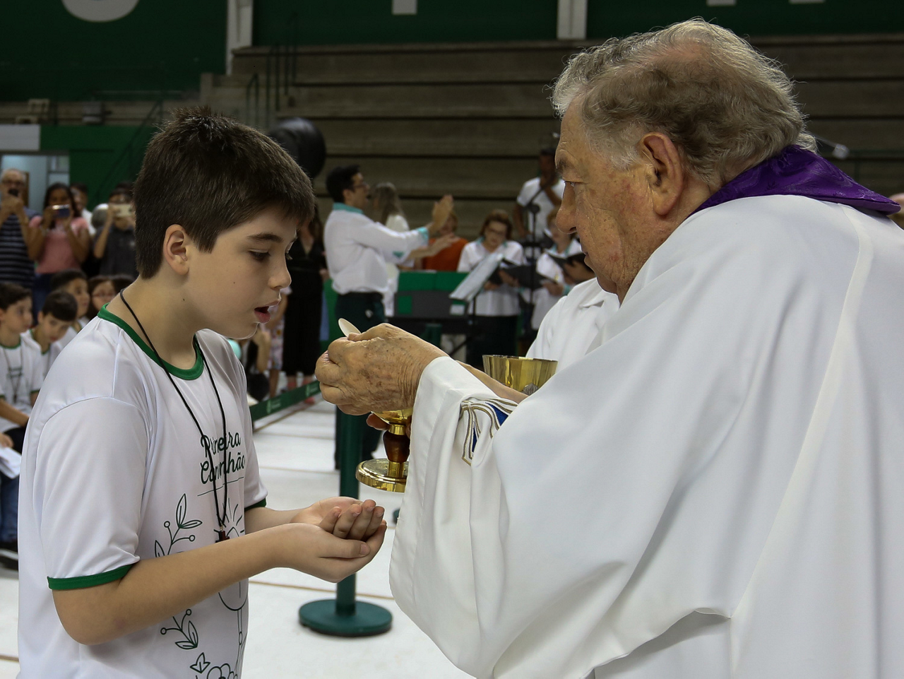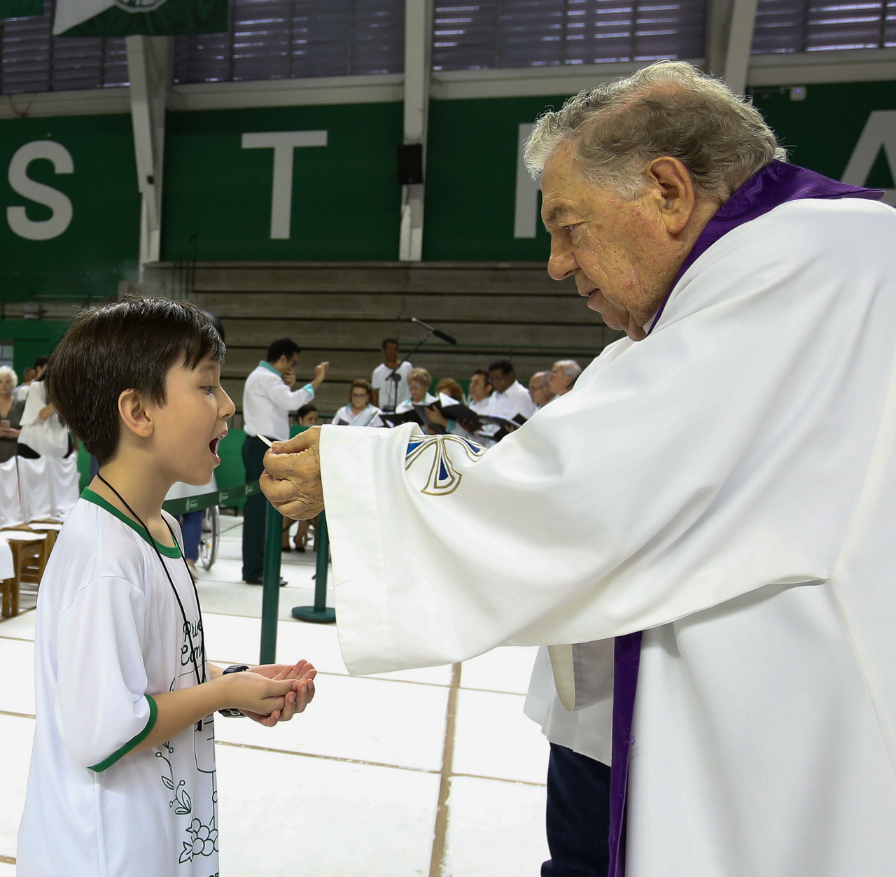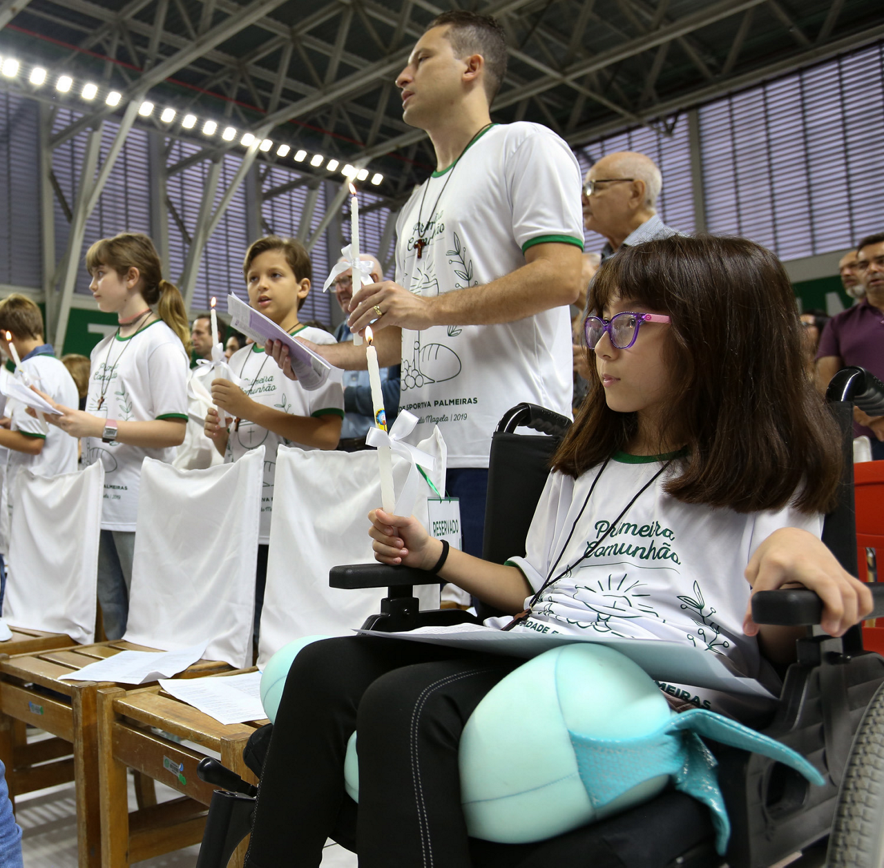 Missa de primeira comunhão, realizado no ginásio poliesportivo, no Clube Social da SE Palmeiras, em São Paulo-SP. (Foto: Fabio Menotti)