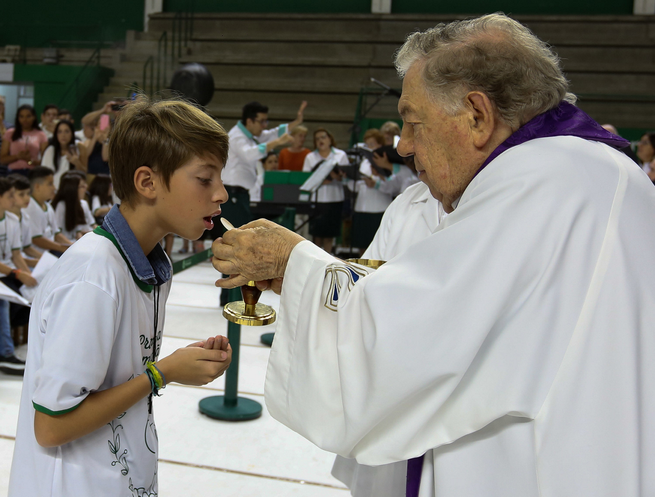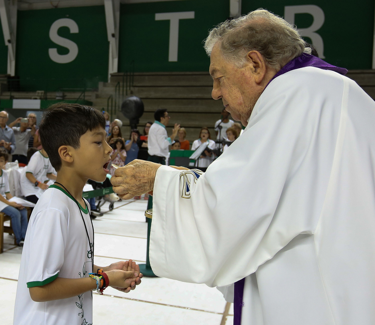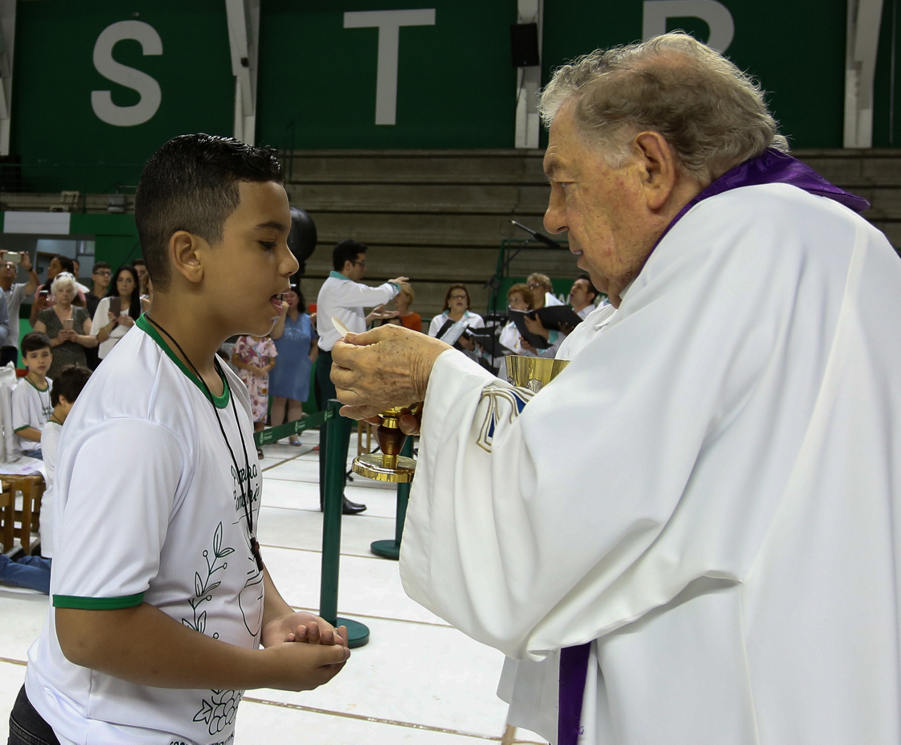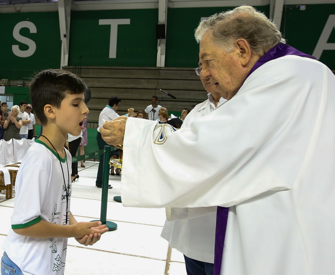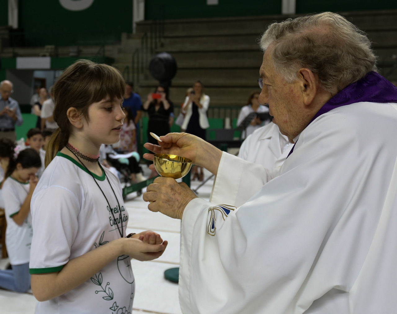 Missa de primeira comunhão, realizado no ginásio poliesportivo, no Clube Social da SE Palmeiras, em São Paulo-SP. (Foto: Fabio Menotti)