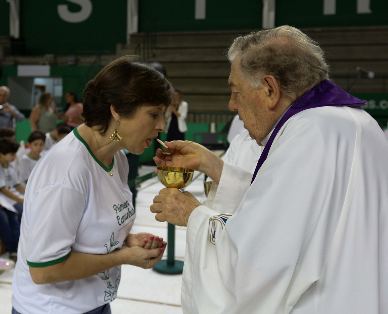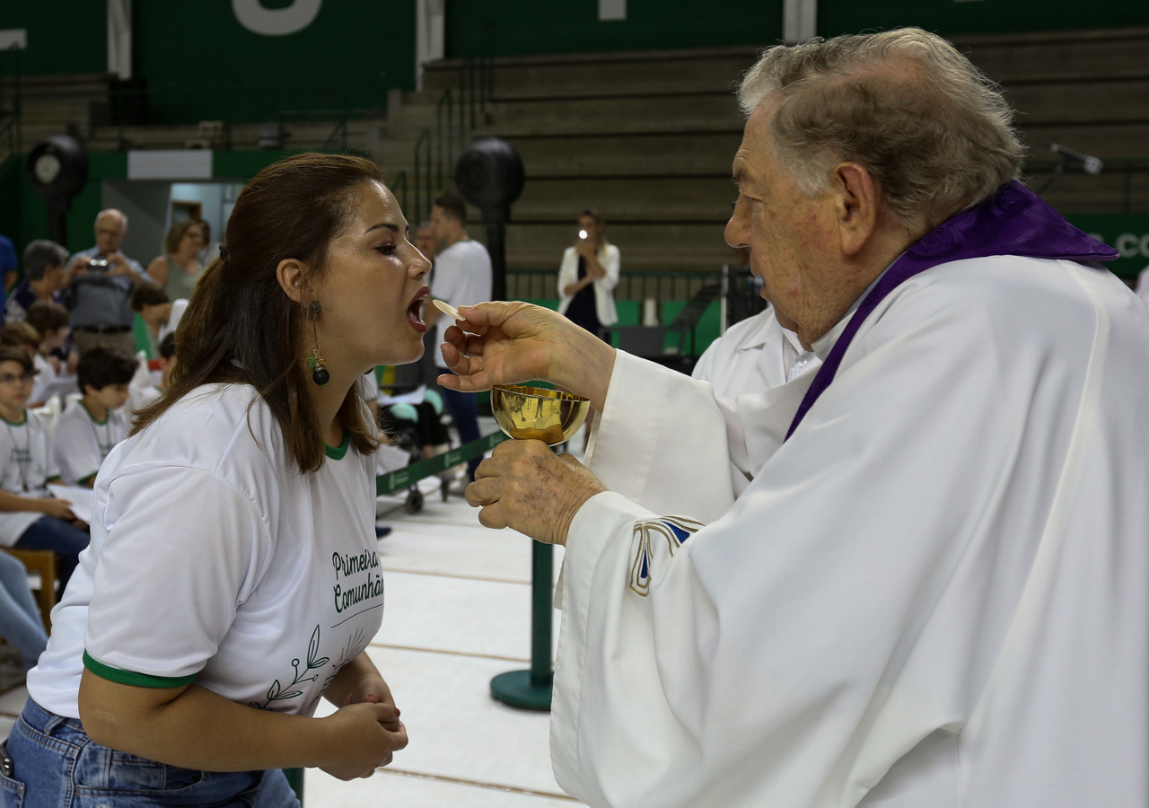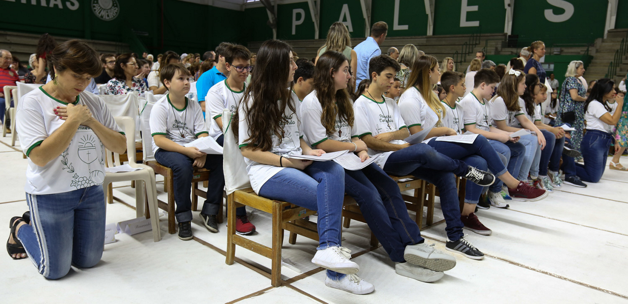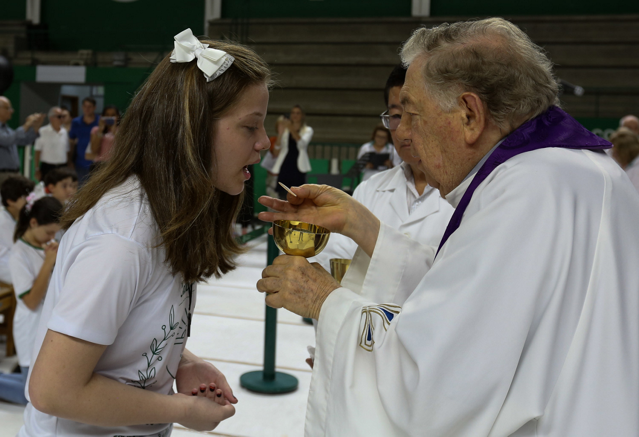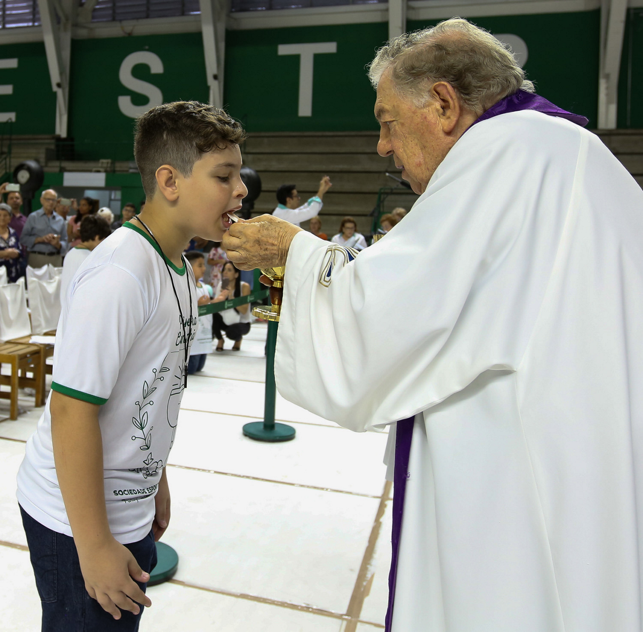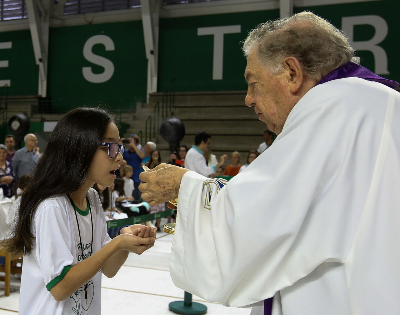 Missa de primeira comunhão, realizado no ginásio poliesportivo, no Clube Social da SE Palmeiras, em São Paulo-SP. (Foto: Fabio Menotti)