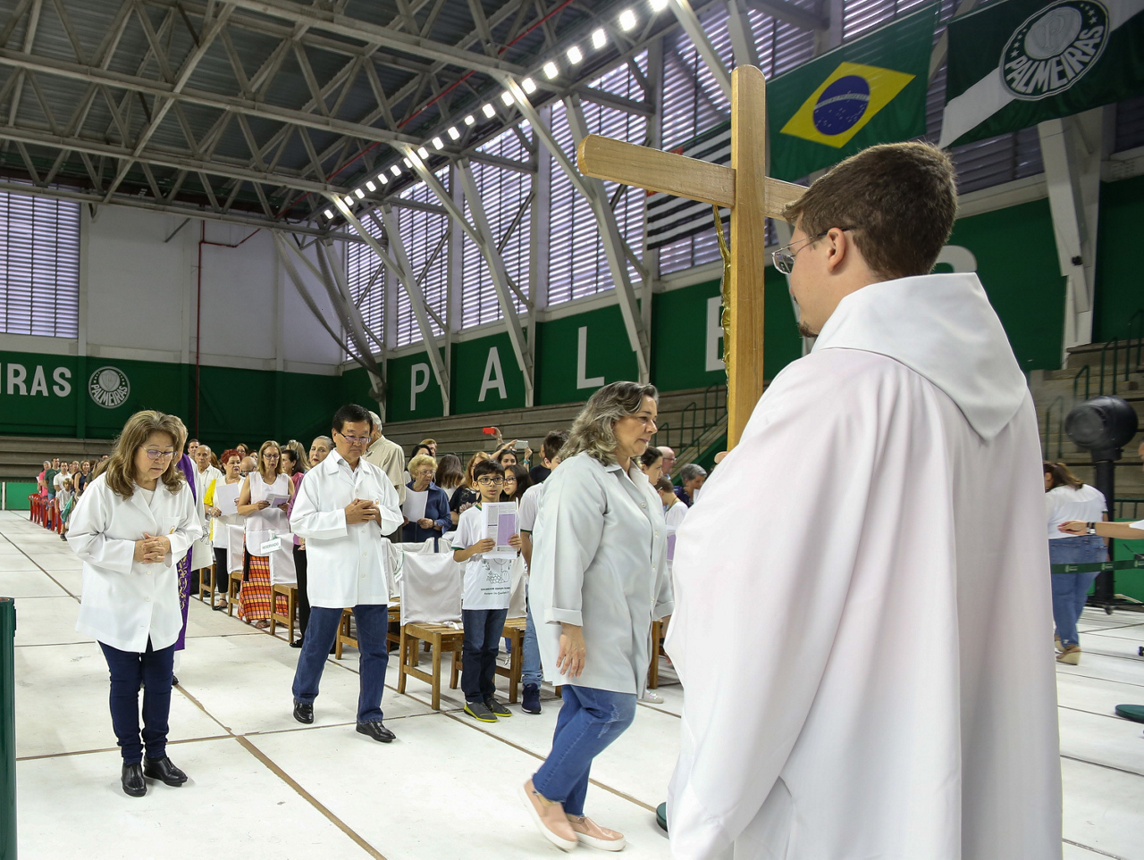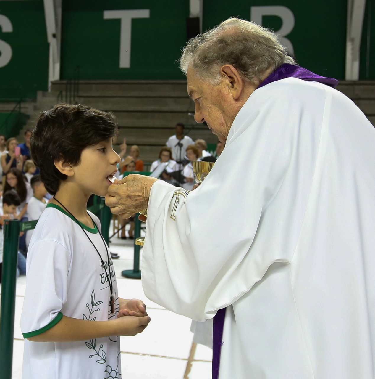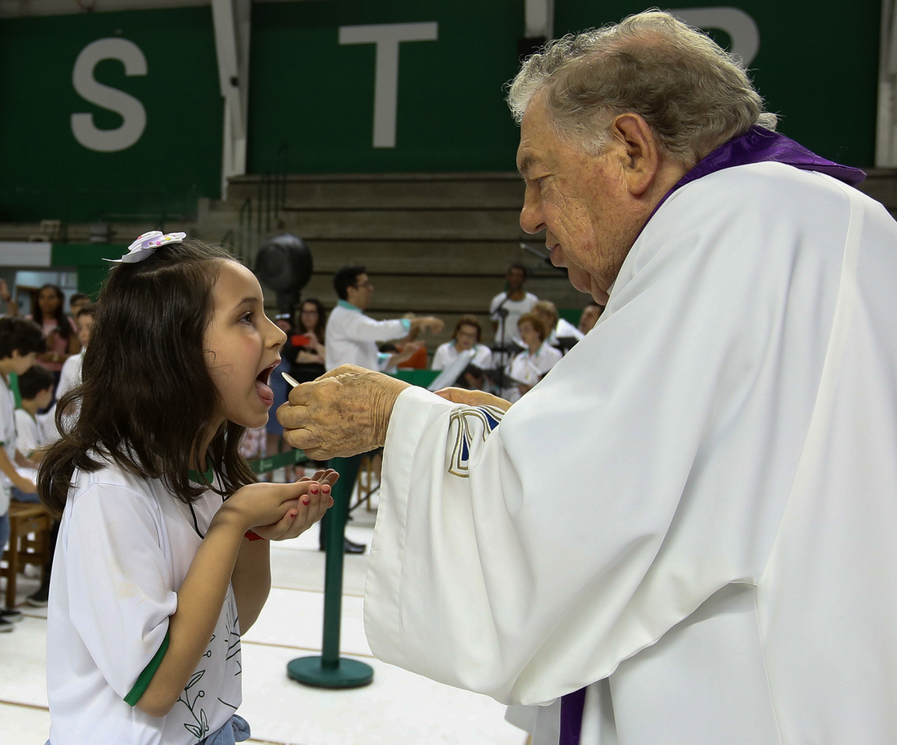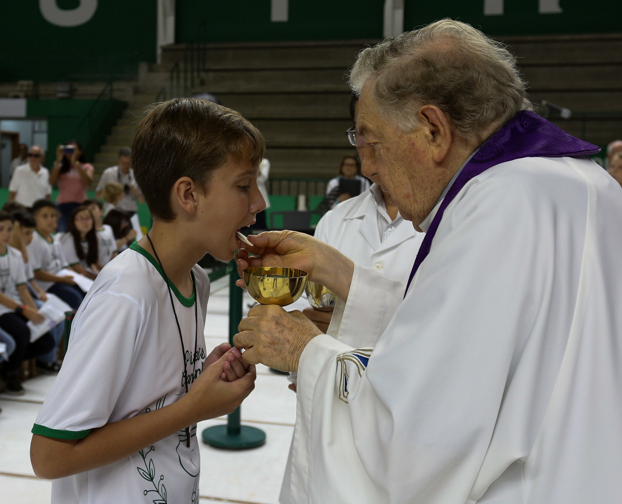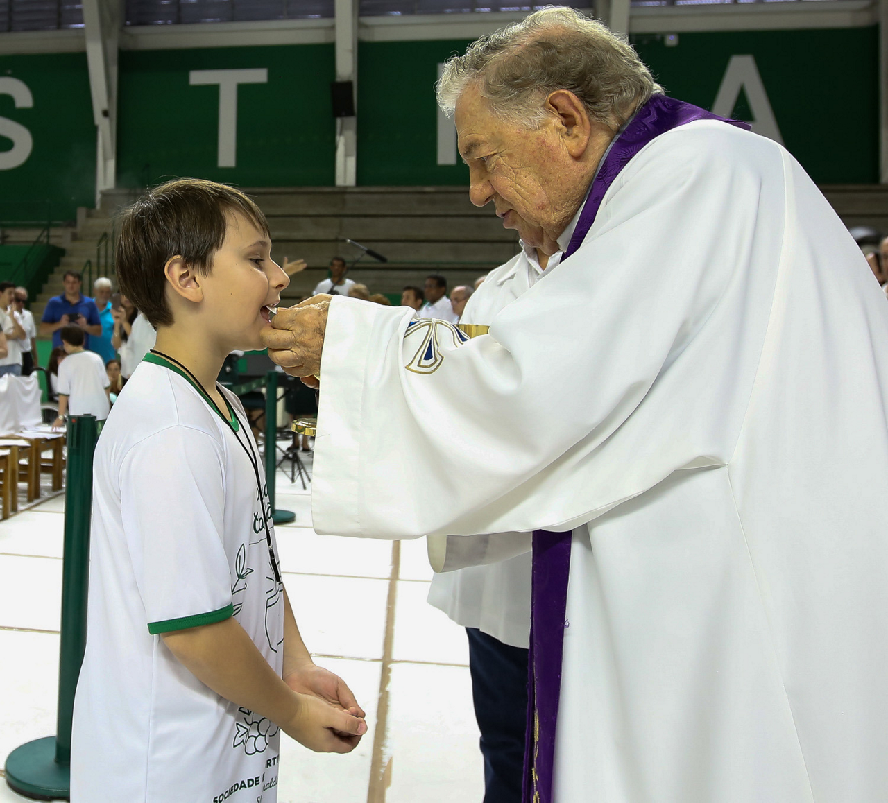 Missa de primeira comunhão, realizado no ginásio poliesportivo, no Clube Social da SE Palmeiras, em São Paulo-SP. (Foto: Fabio Menotti)