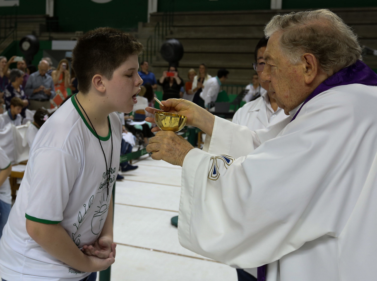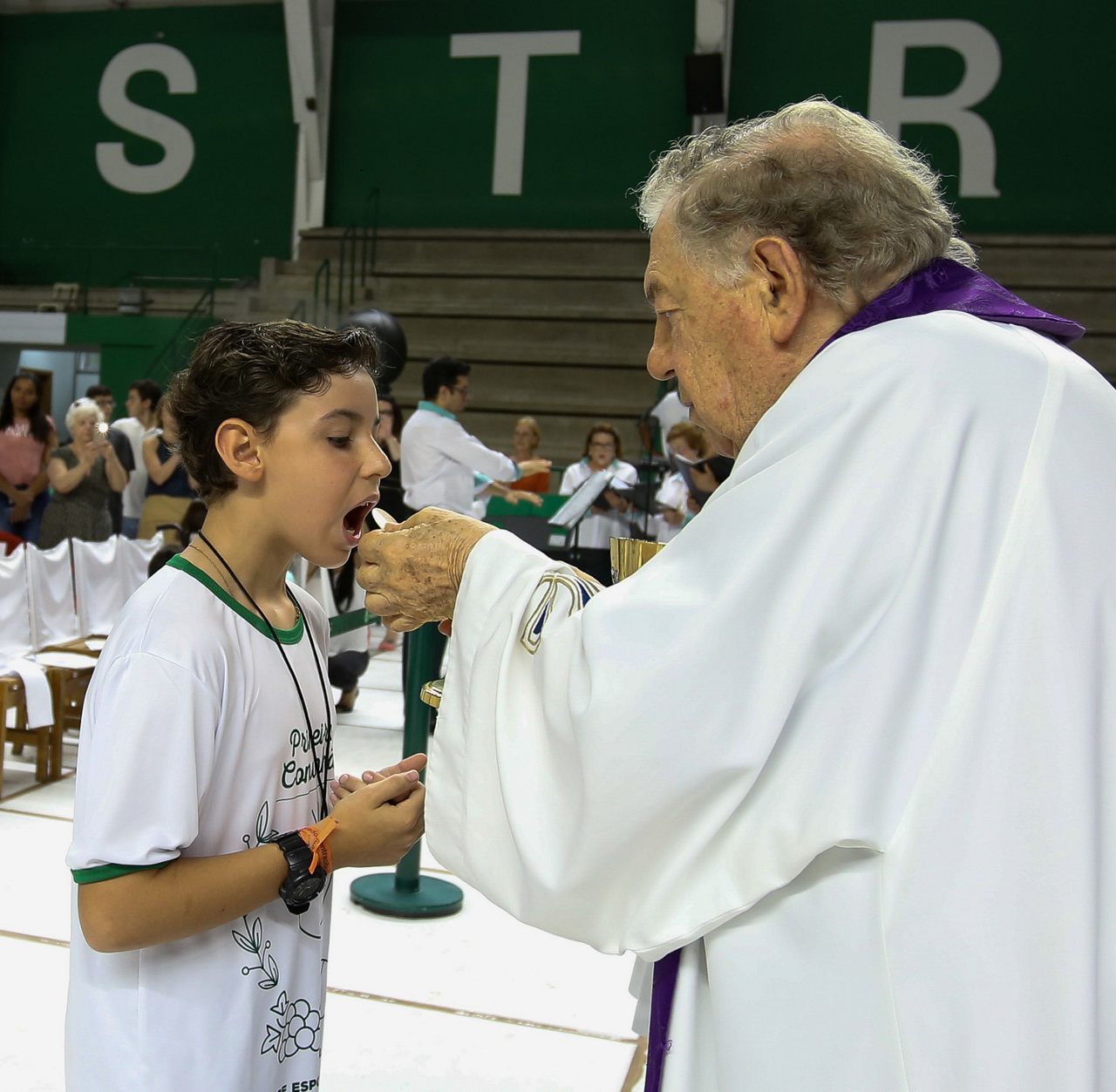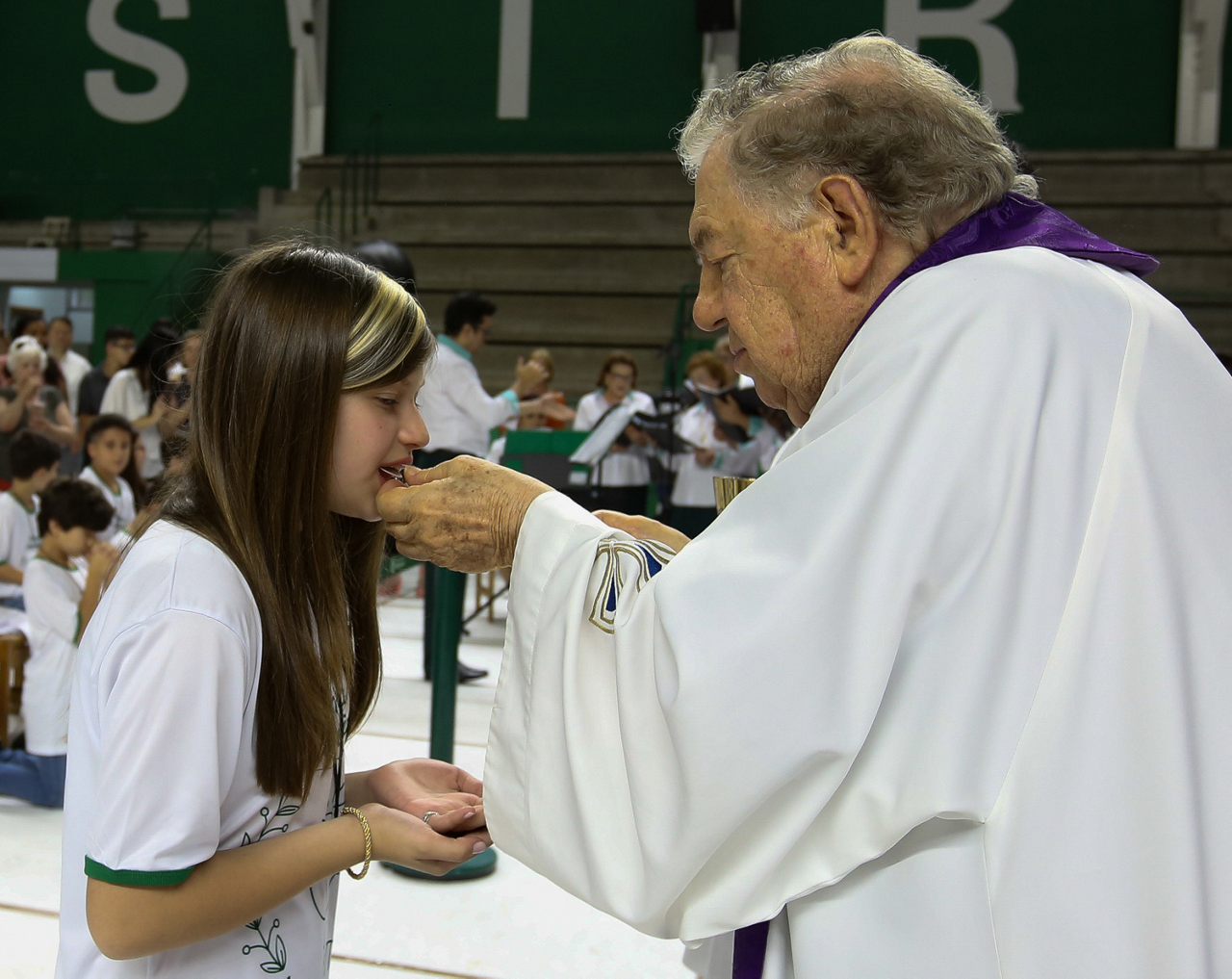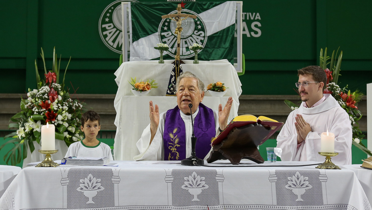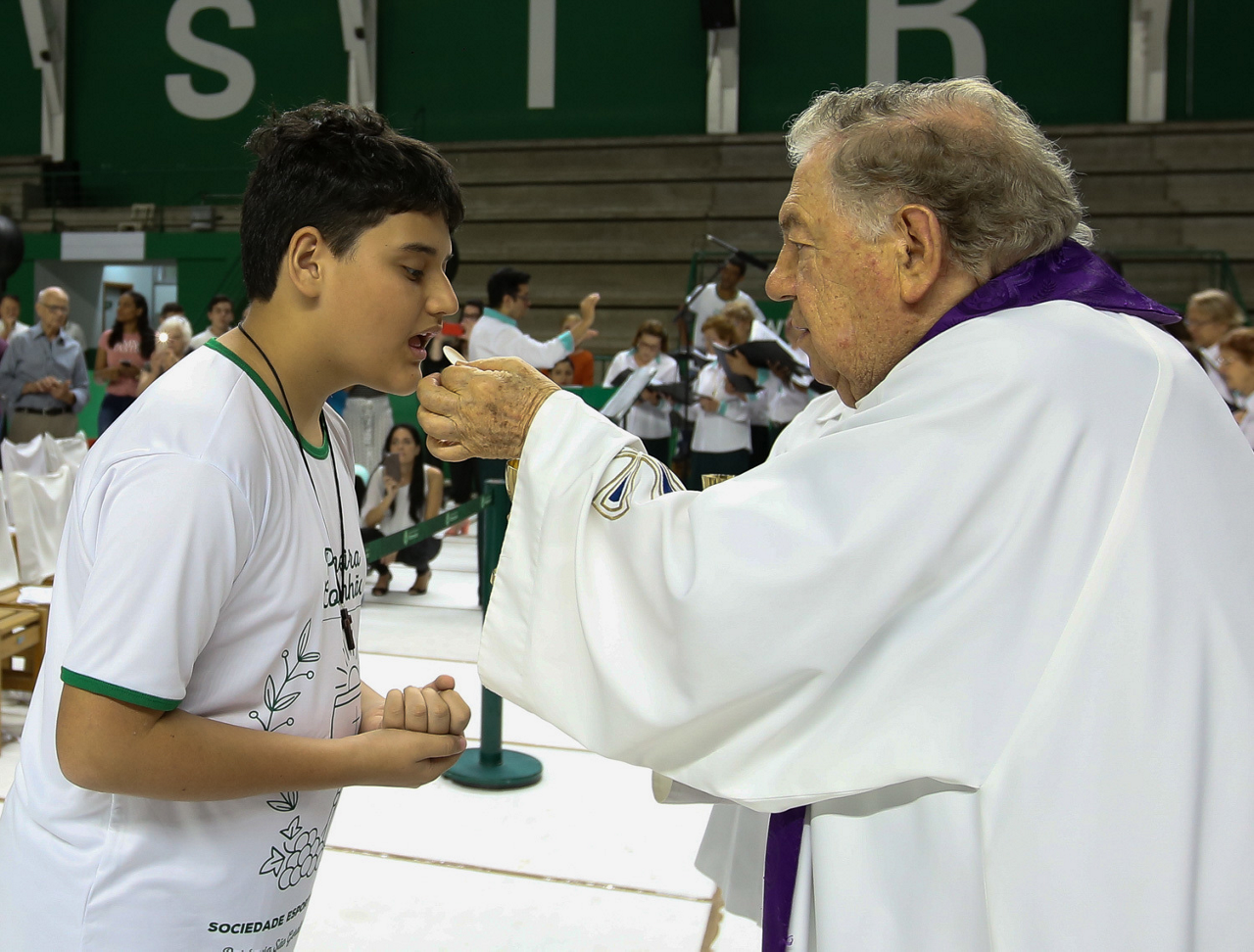Missa de primeira comunhão, realizado no ginásio poliesportivo, no Clube Social da SE Palmeiras, em São Paulo-SP. (Foto: Fabio Menotti)