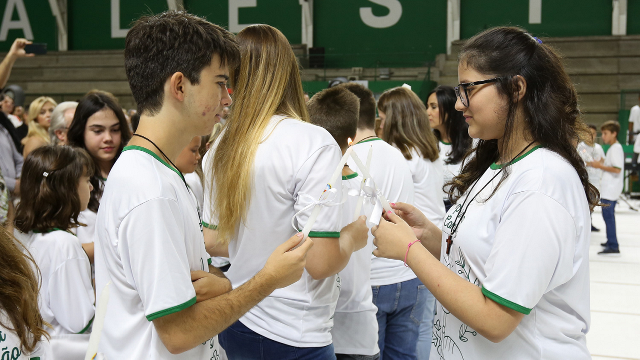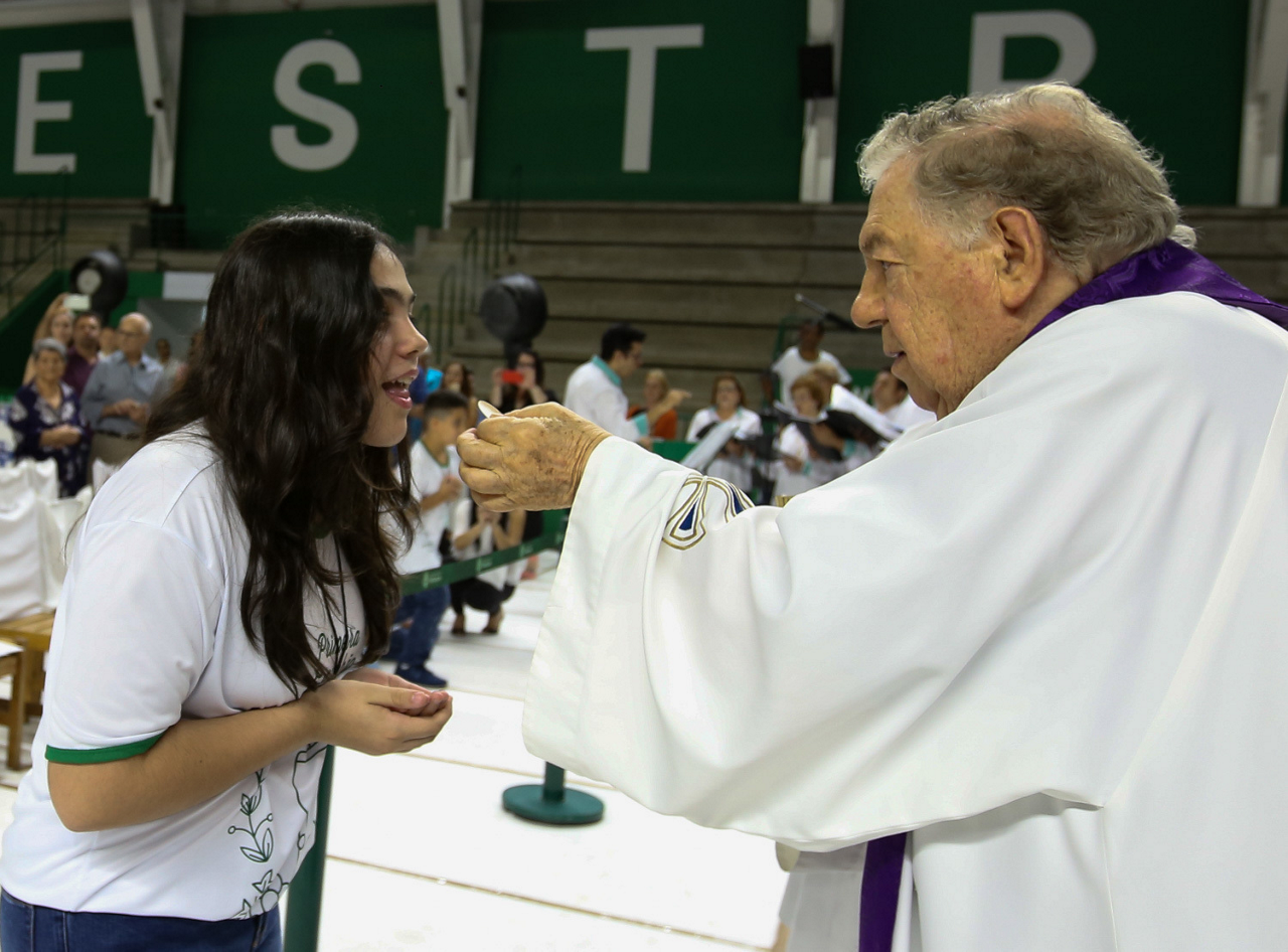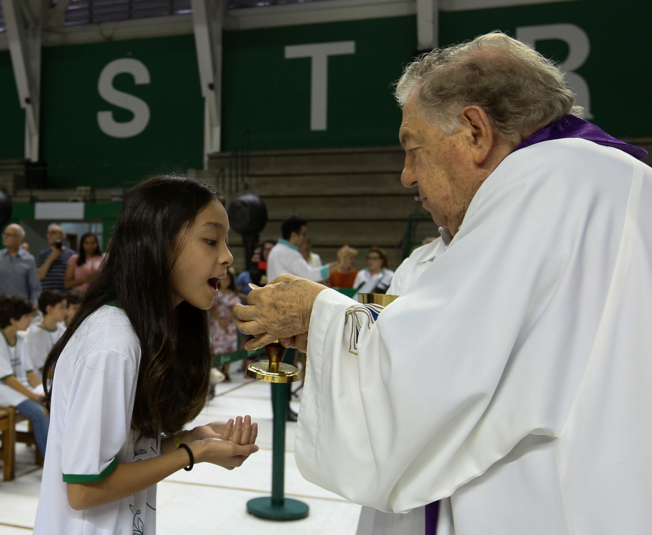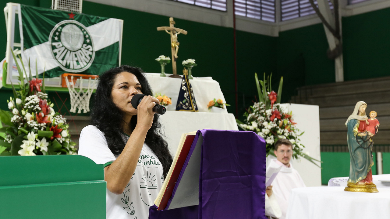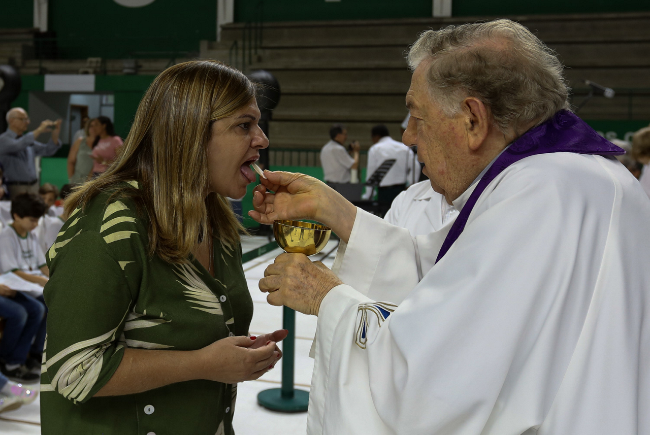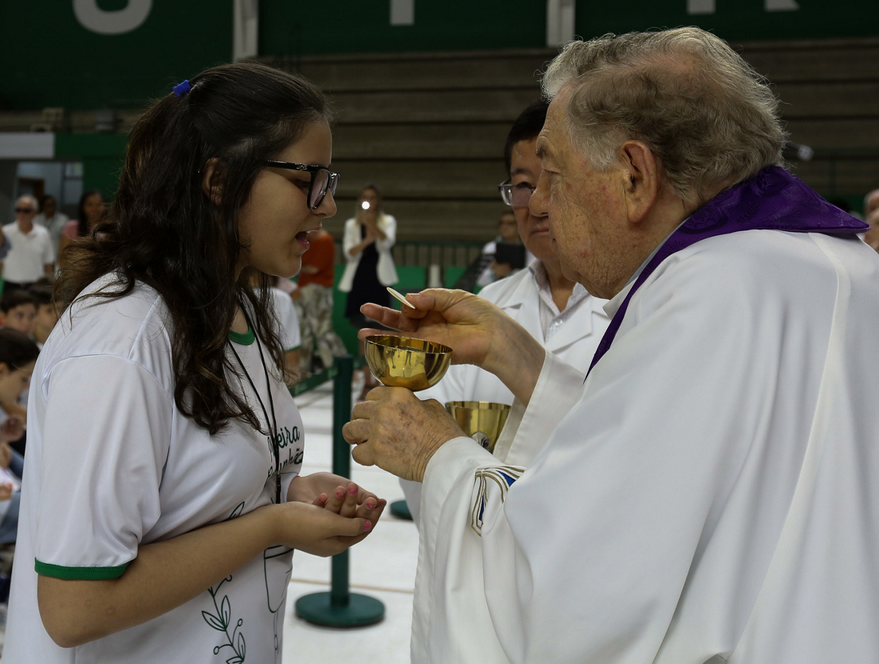 Missa de primeira comunhão, realizado no ginásio poliesportivo, no Clube Social da SE Palmeiras, em São Paulo-SP. (Foto: Fabio Menotti)
